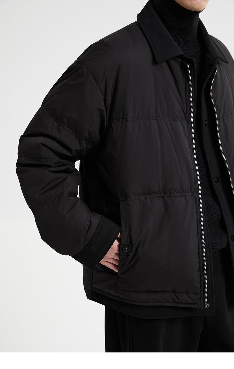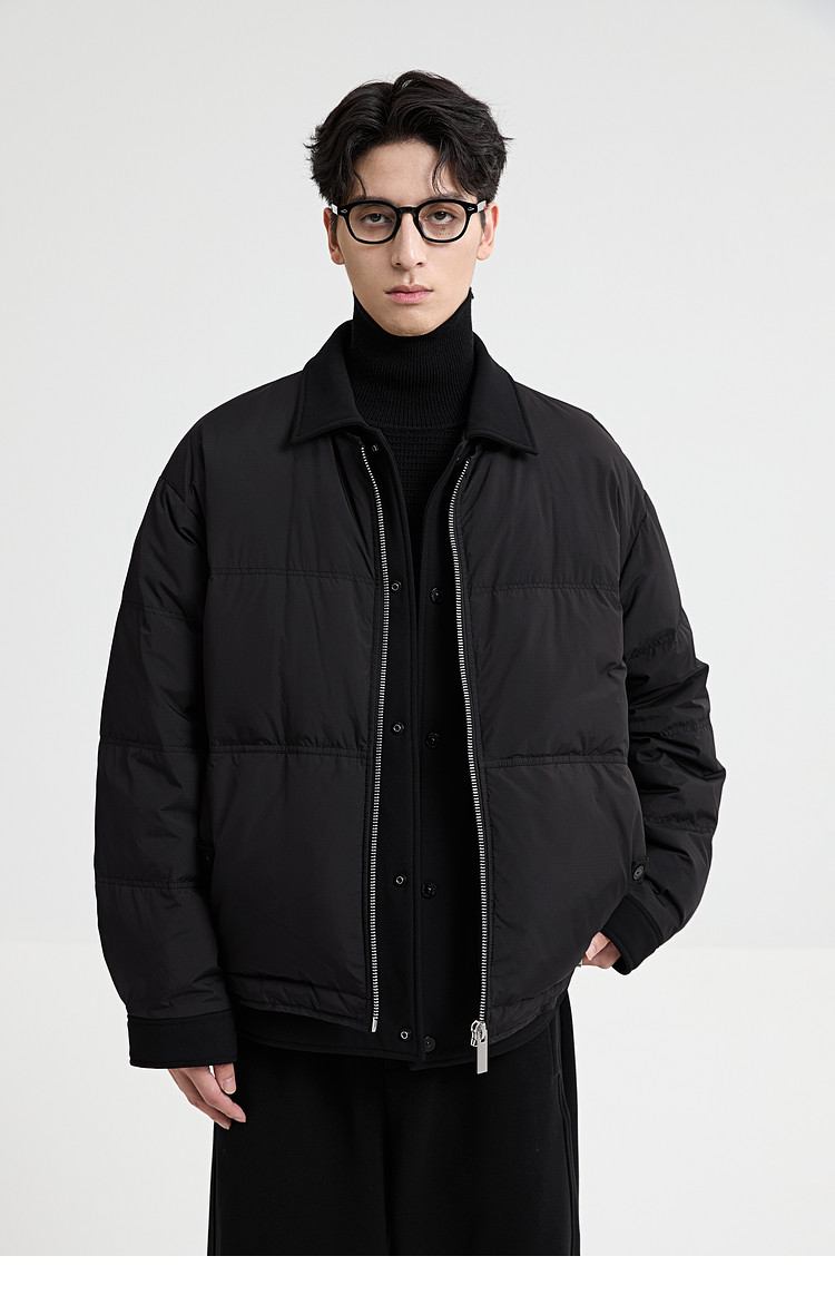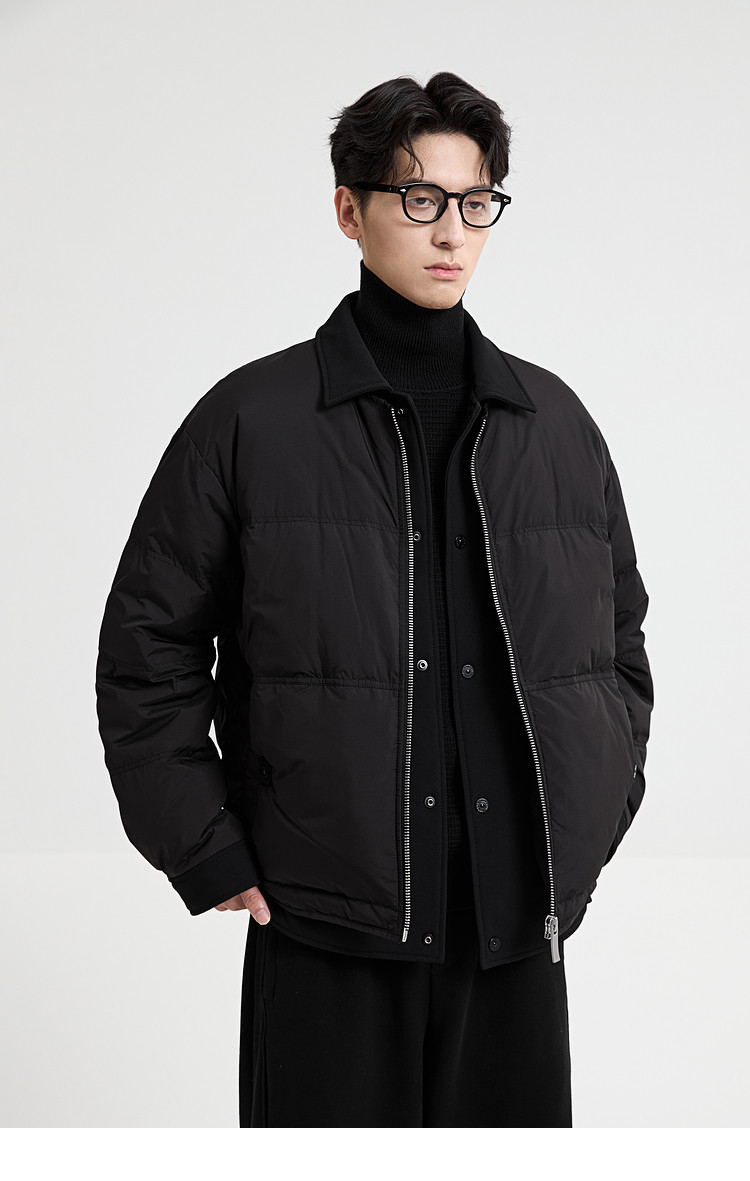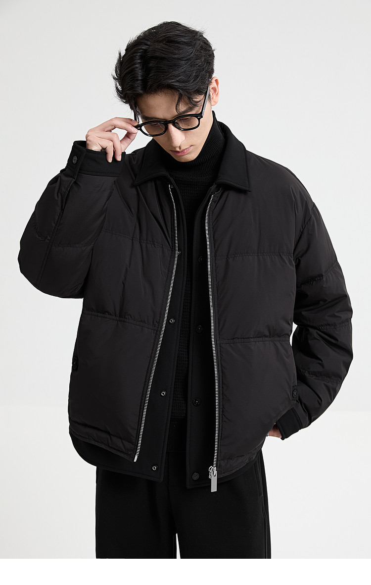 Black Ming Lapel Fake Two-piece Lightweight Down Jacket 2025 Winter New Short Warm Silhouette Bread Jacket