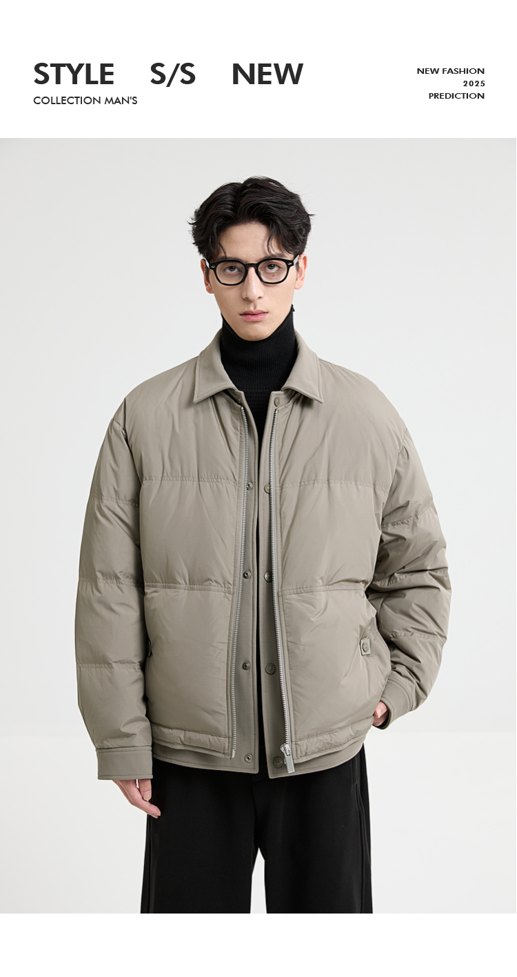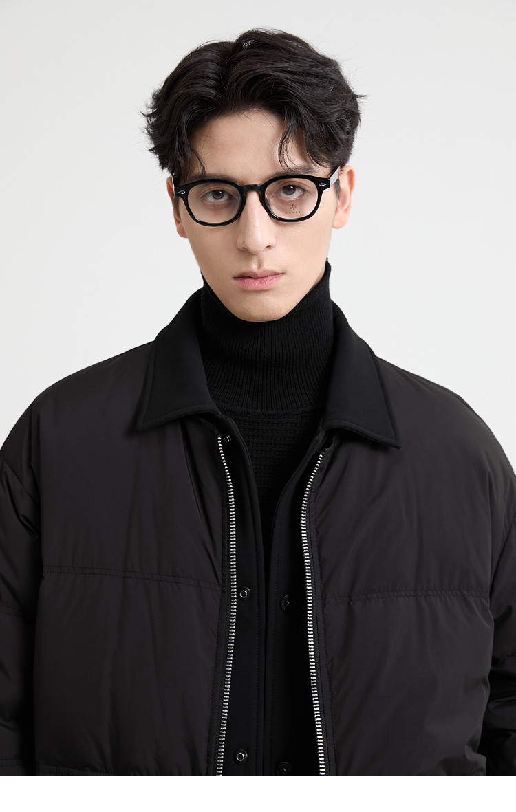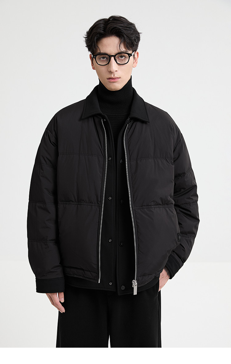 Black Ming Lapel Fake Two-piece Lightweight Down Jacket 2025 Winter New Short Warm Silhouette Bread Jacket