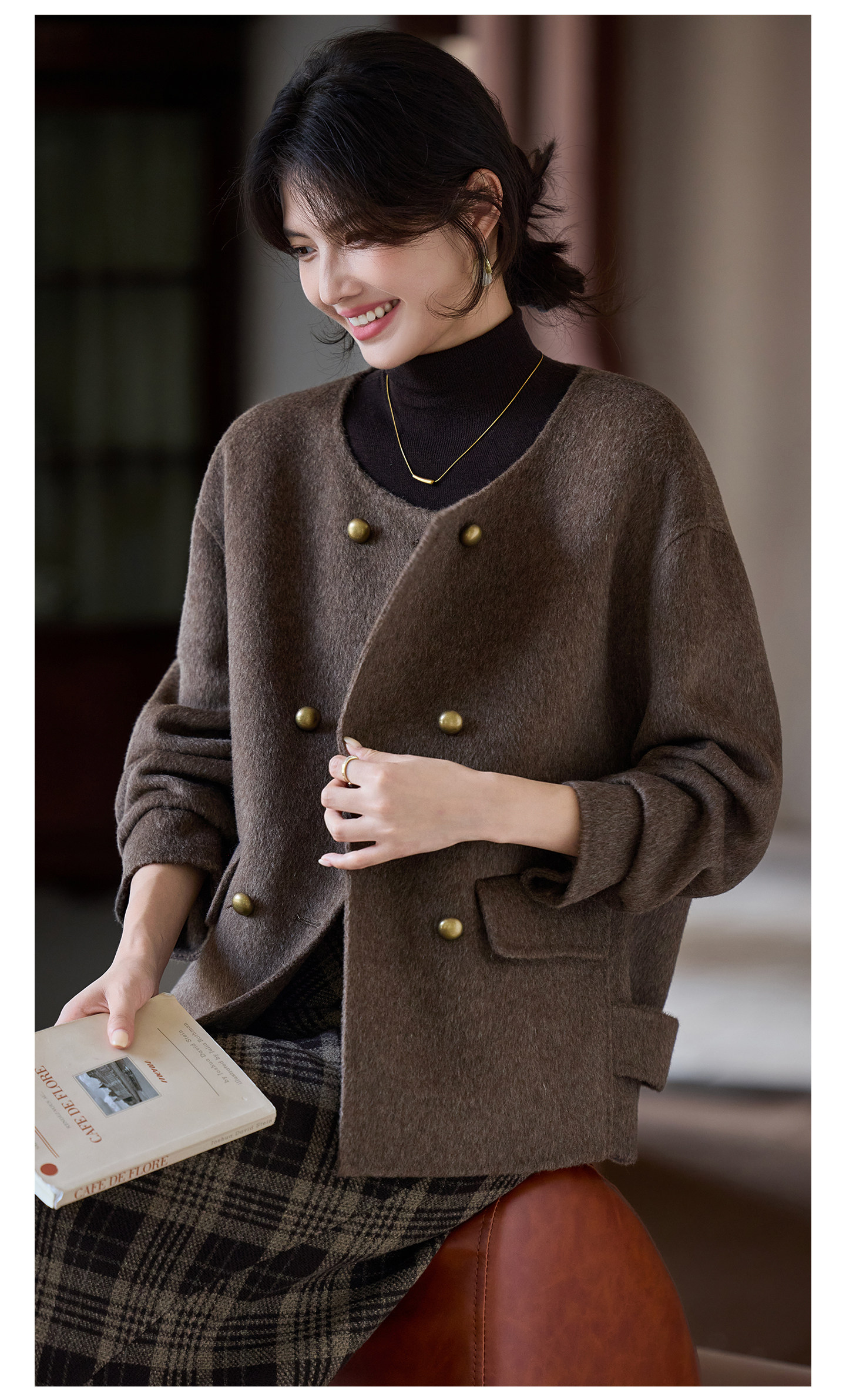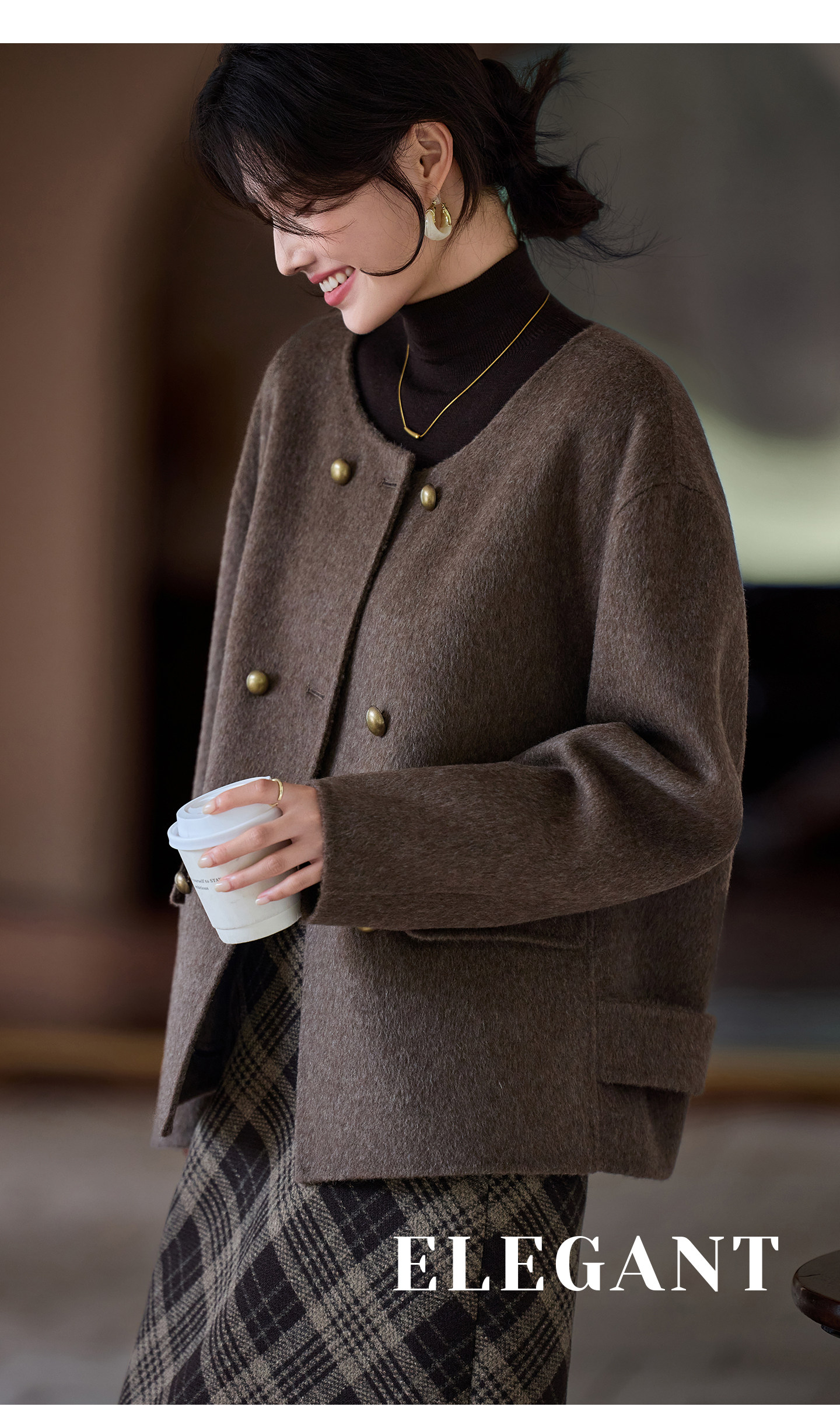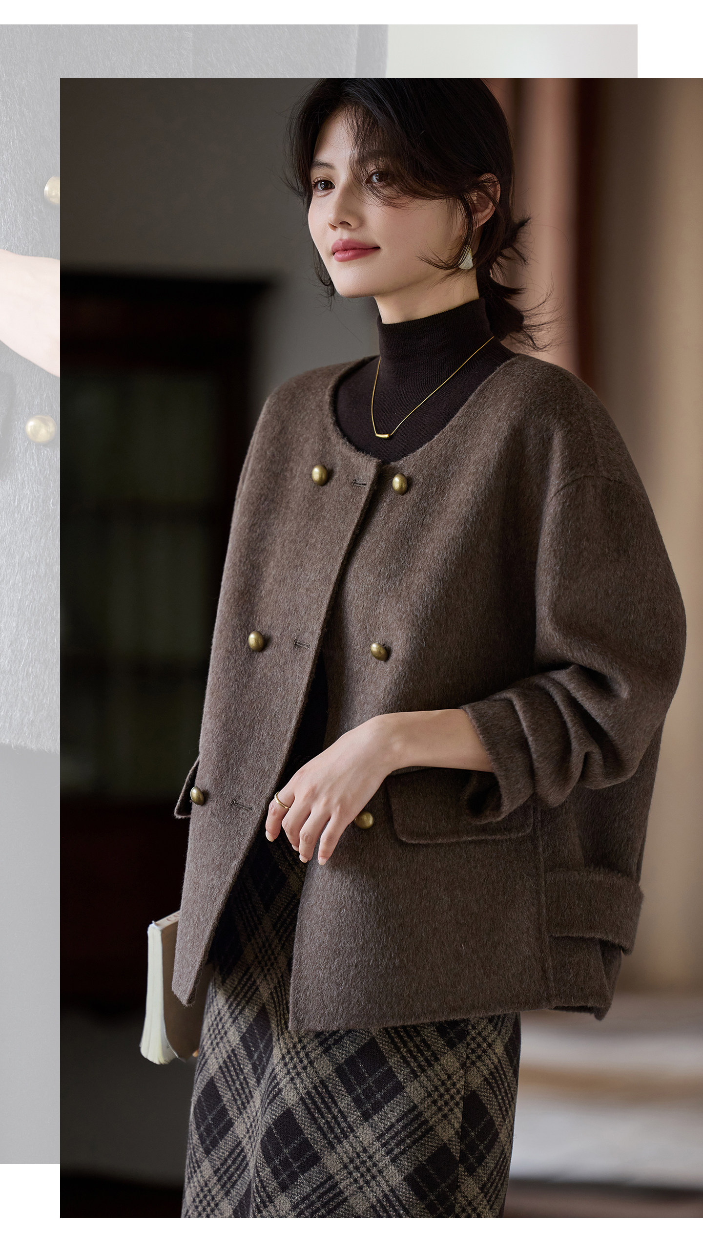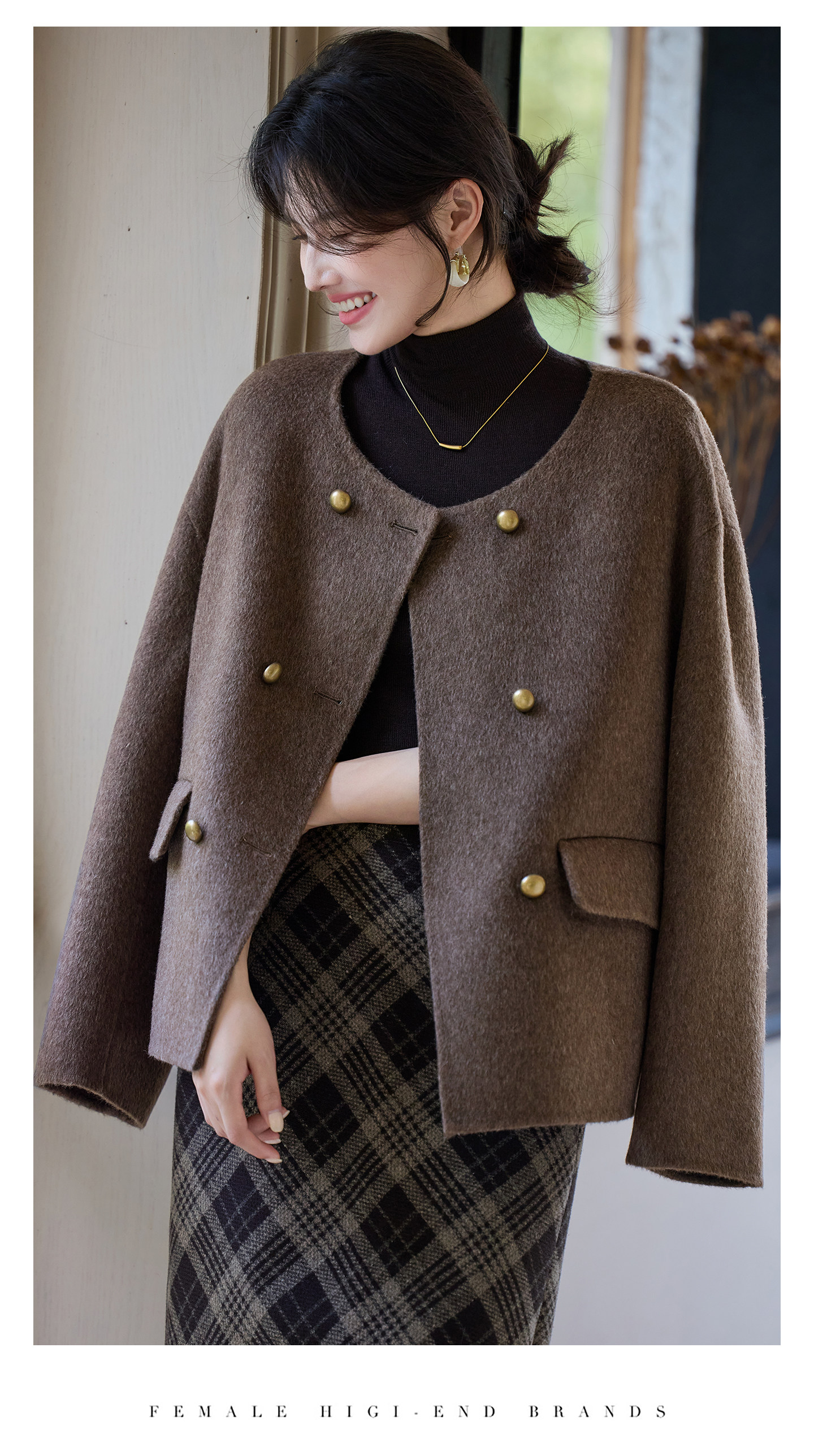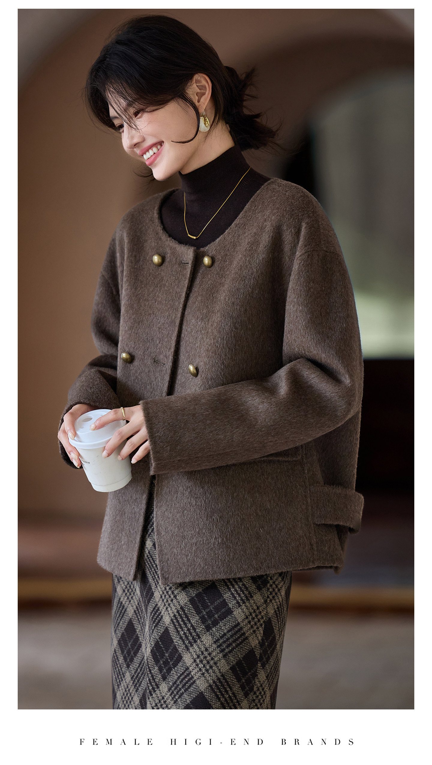 High-End Double-Sided Cashmere Coat for Women, Short Style, 2025 Autumn and Winter New Loose Double-Breasted Elegant Woolen Coat