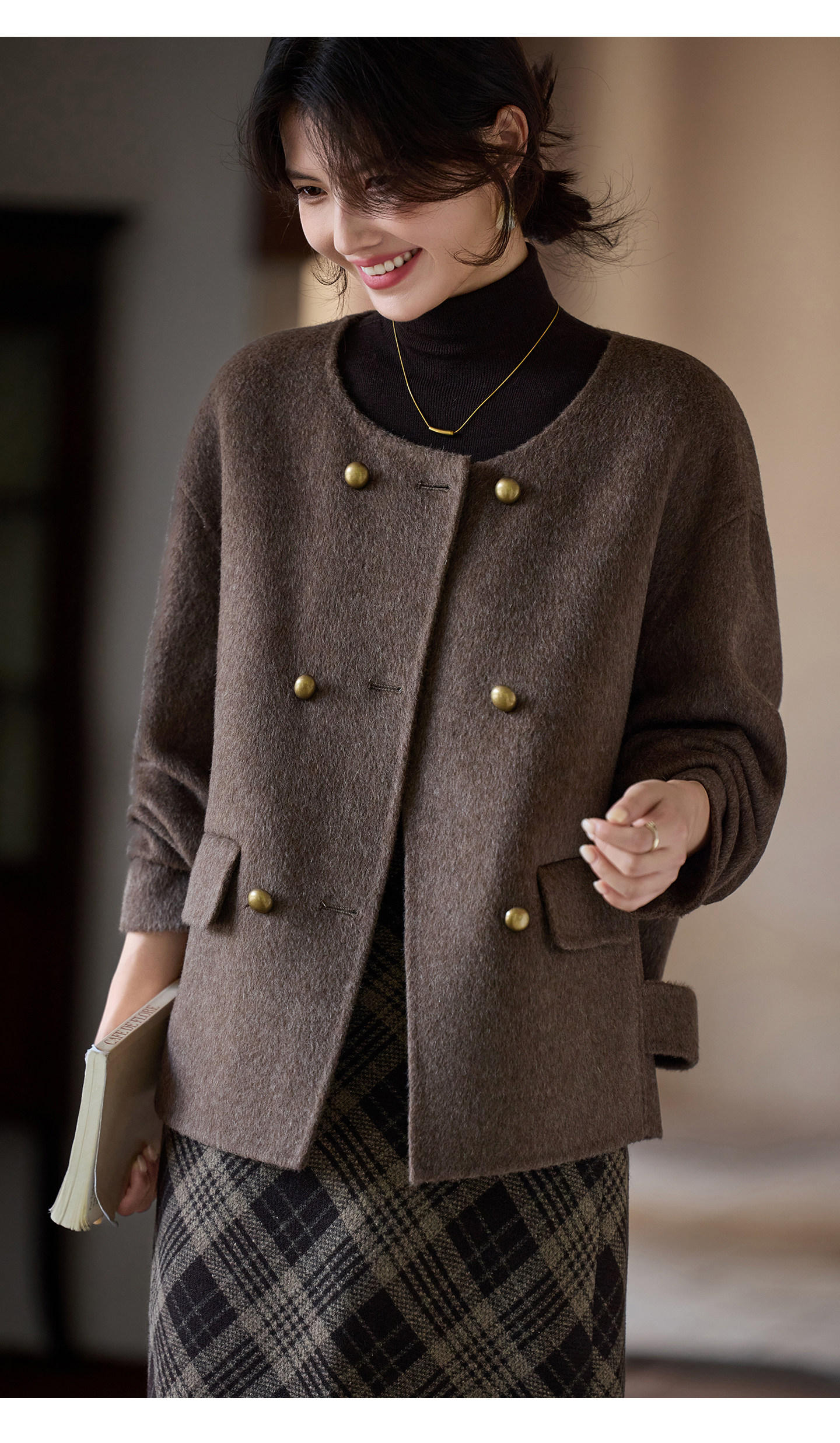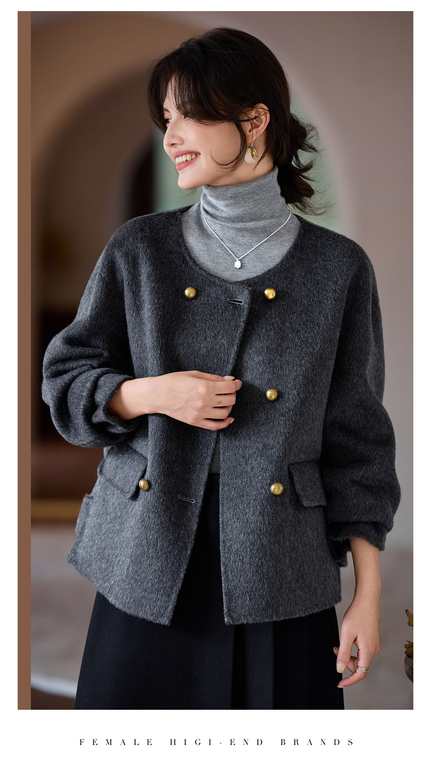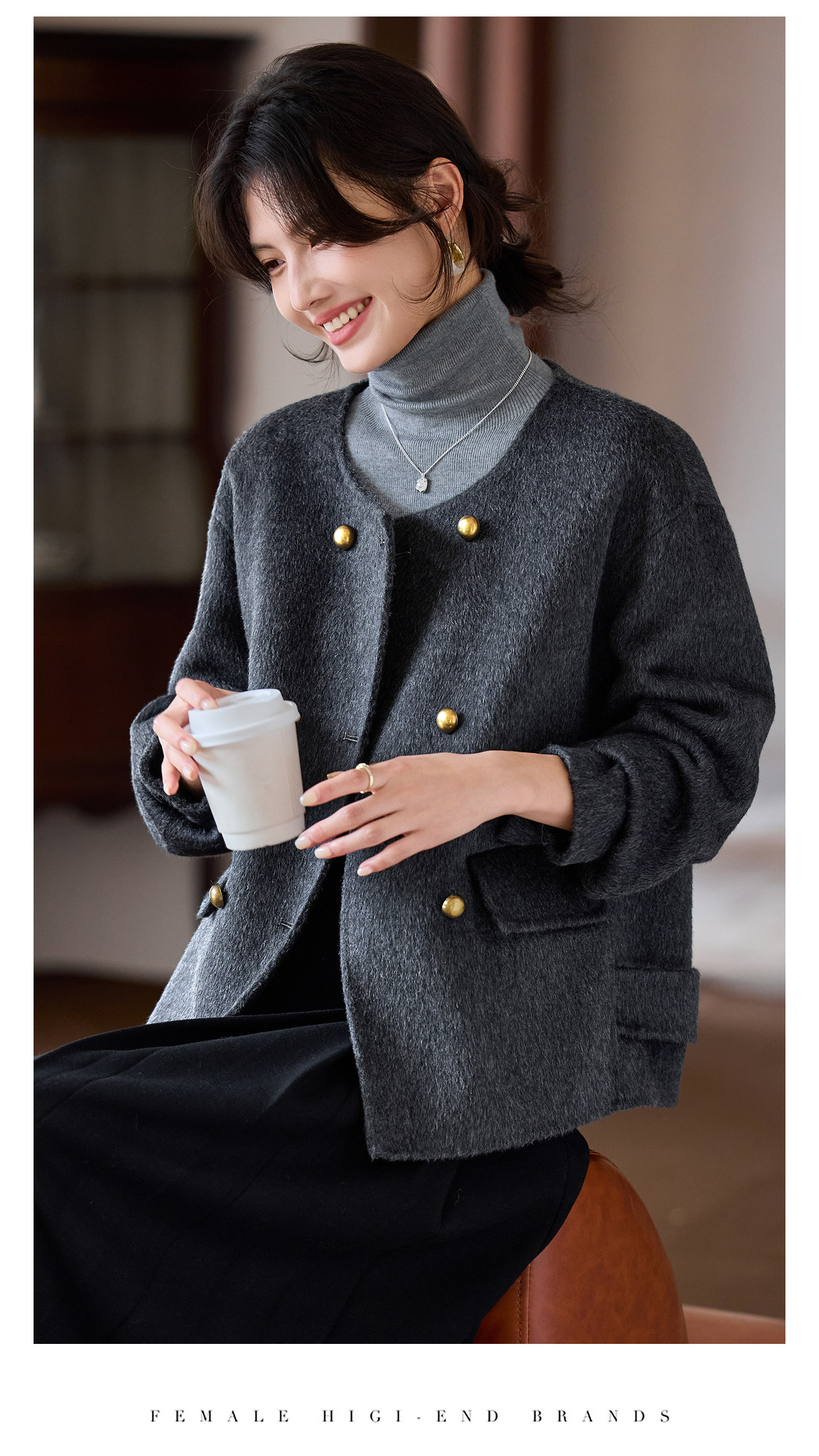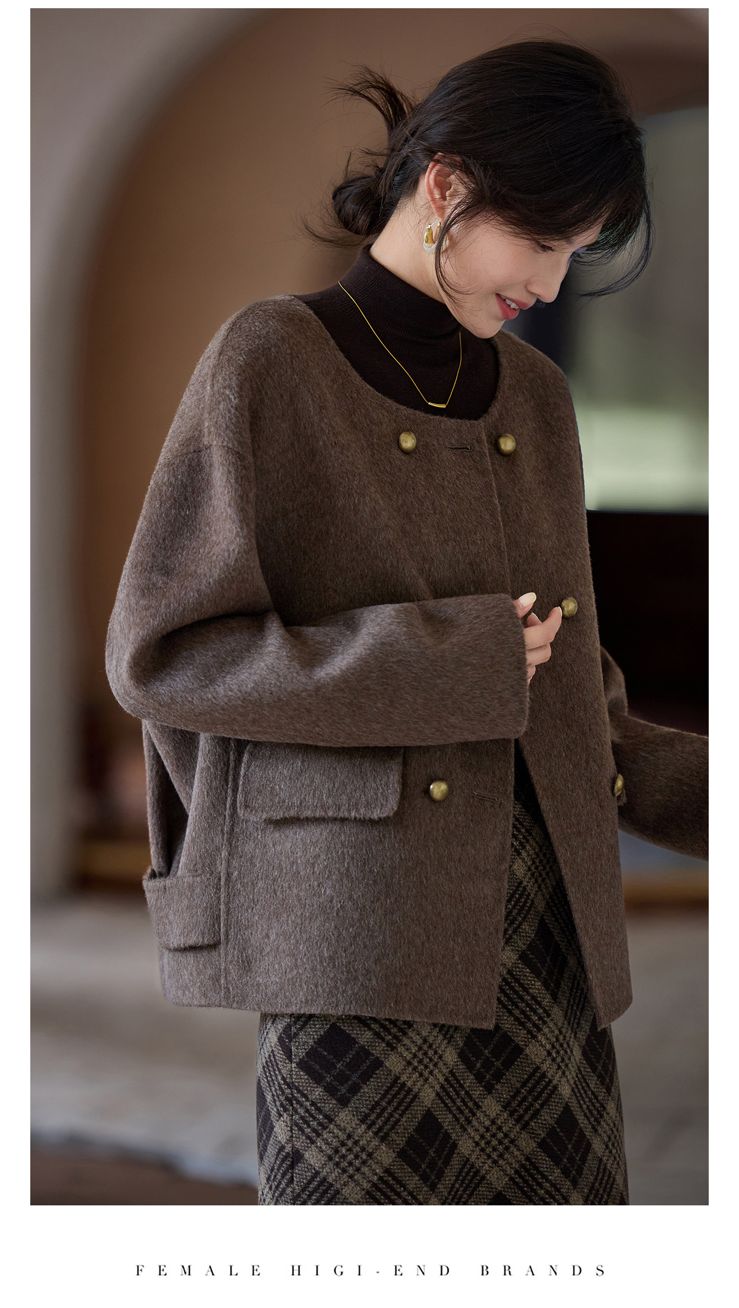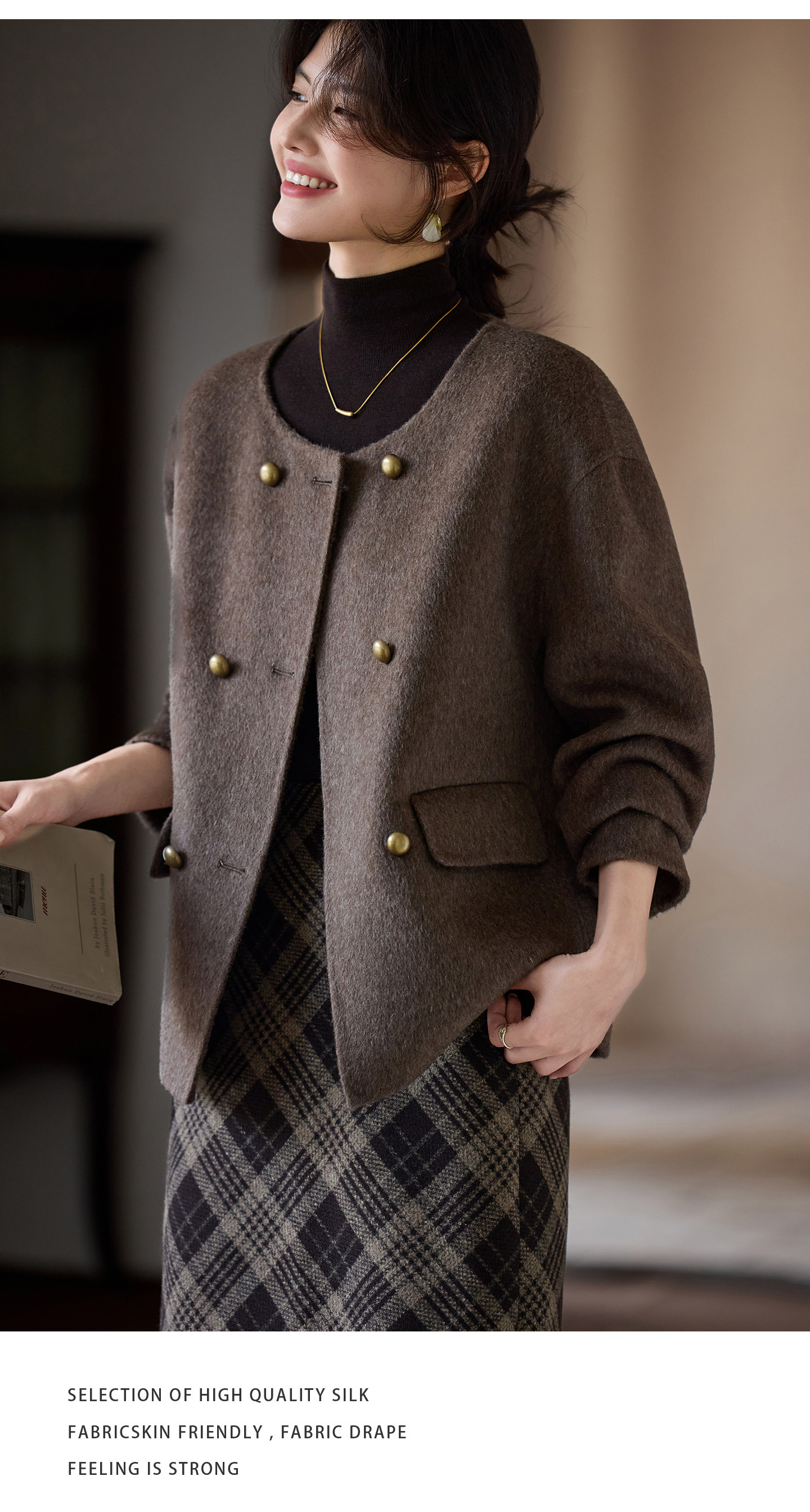 High-End Double-Sided Cashmere Coat for Women, Short Style, 2025 Autumn and Winter New Loose Double-Breasted Elegant Woolen Coat