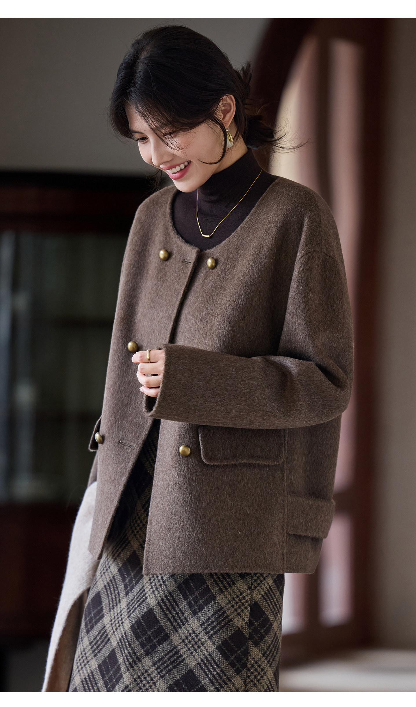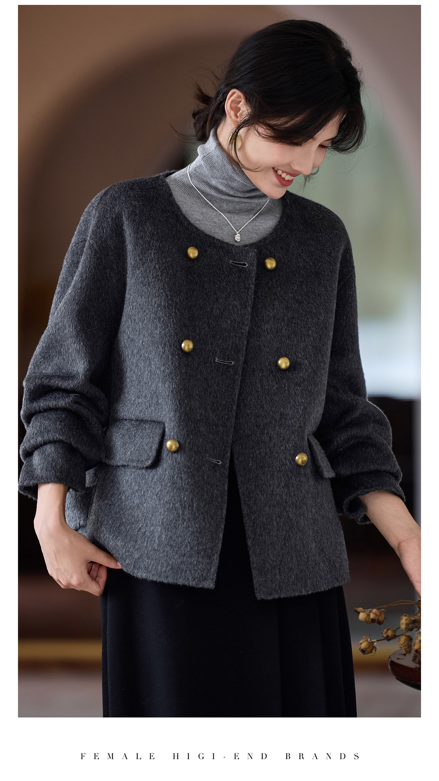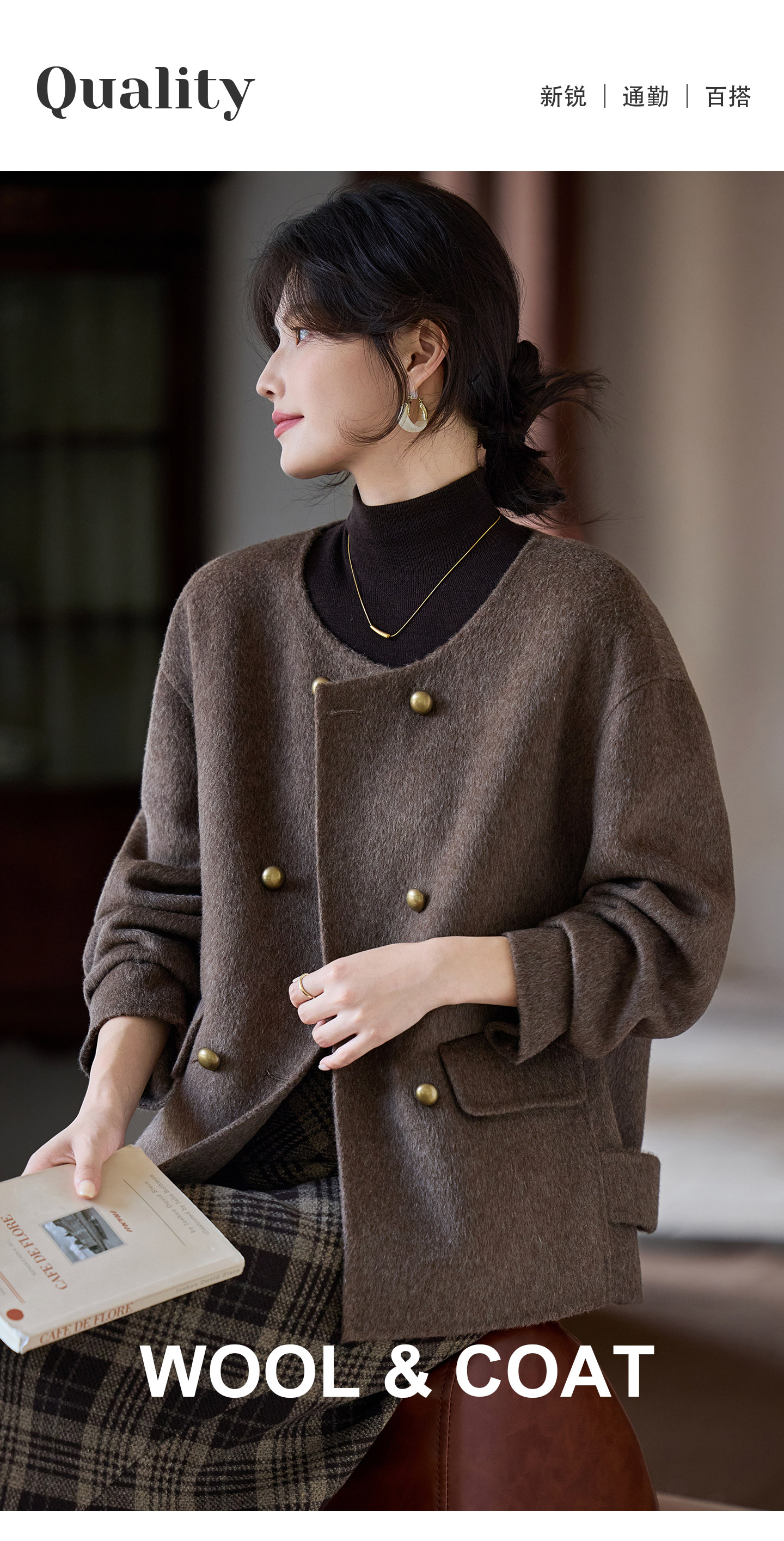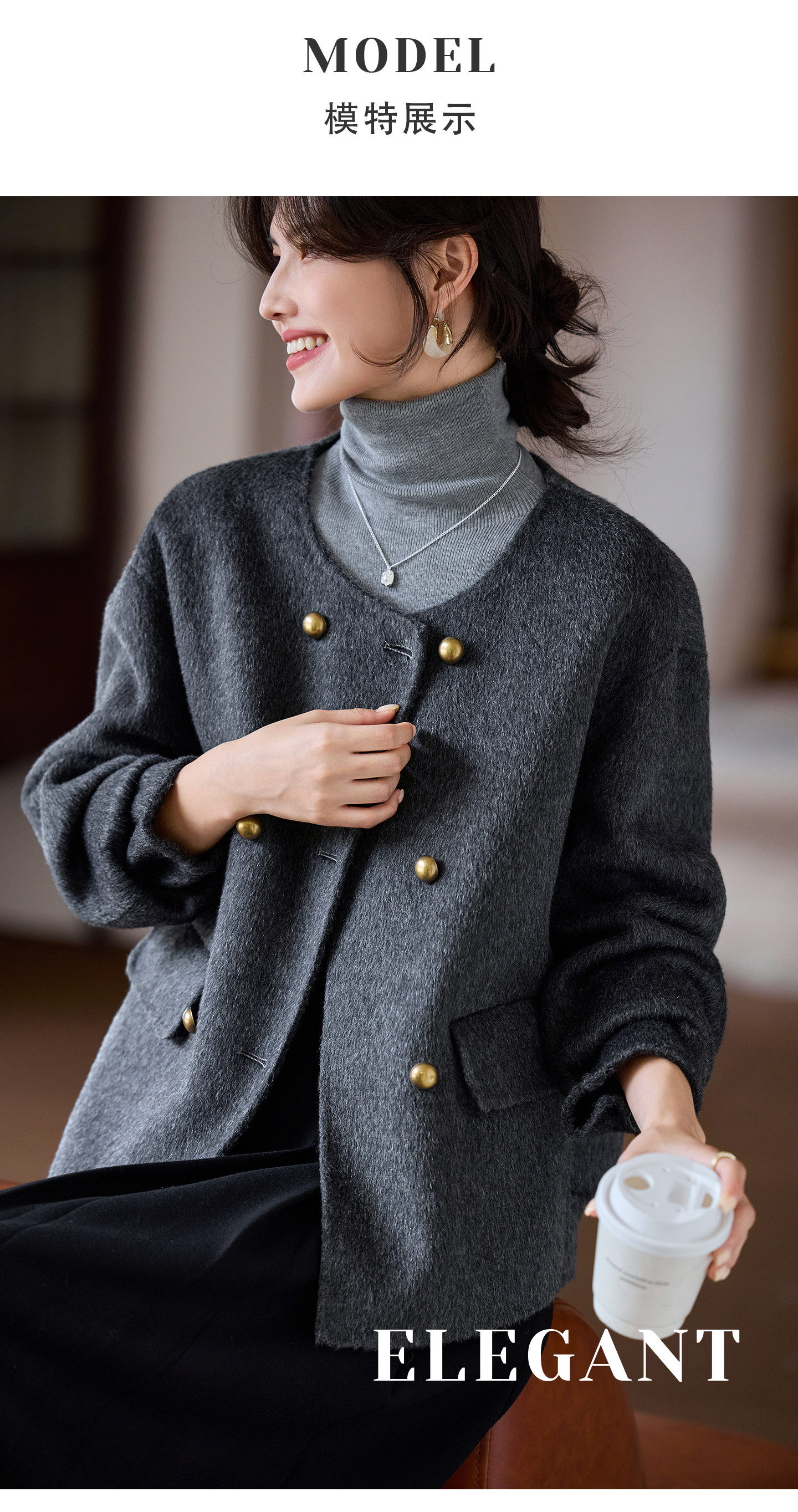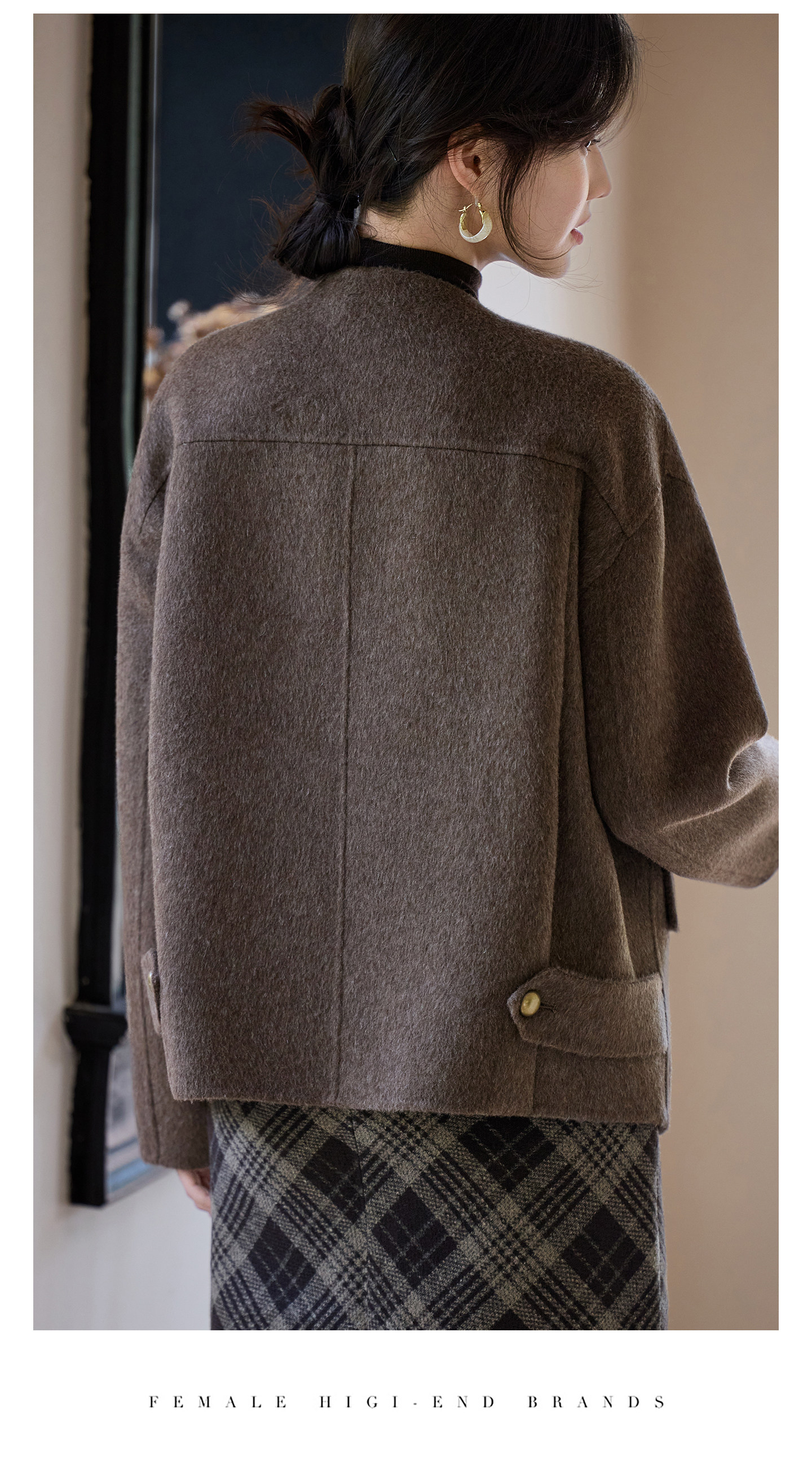 High-End Double-Sided Cashmere Coat for Women, Short Style, 2025 Autumn and Winter New Loose Double-Breasted Elegant Woolen Coat