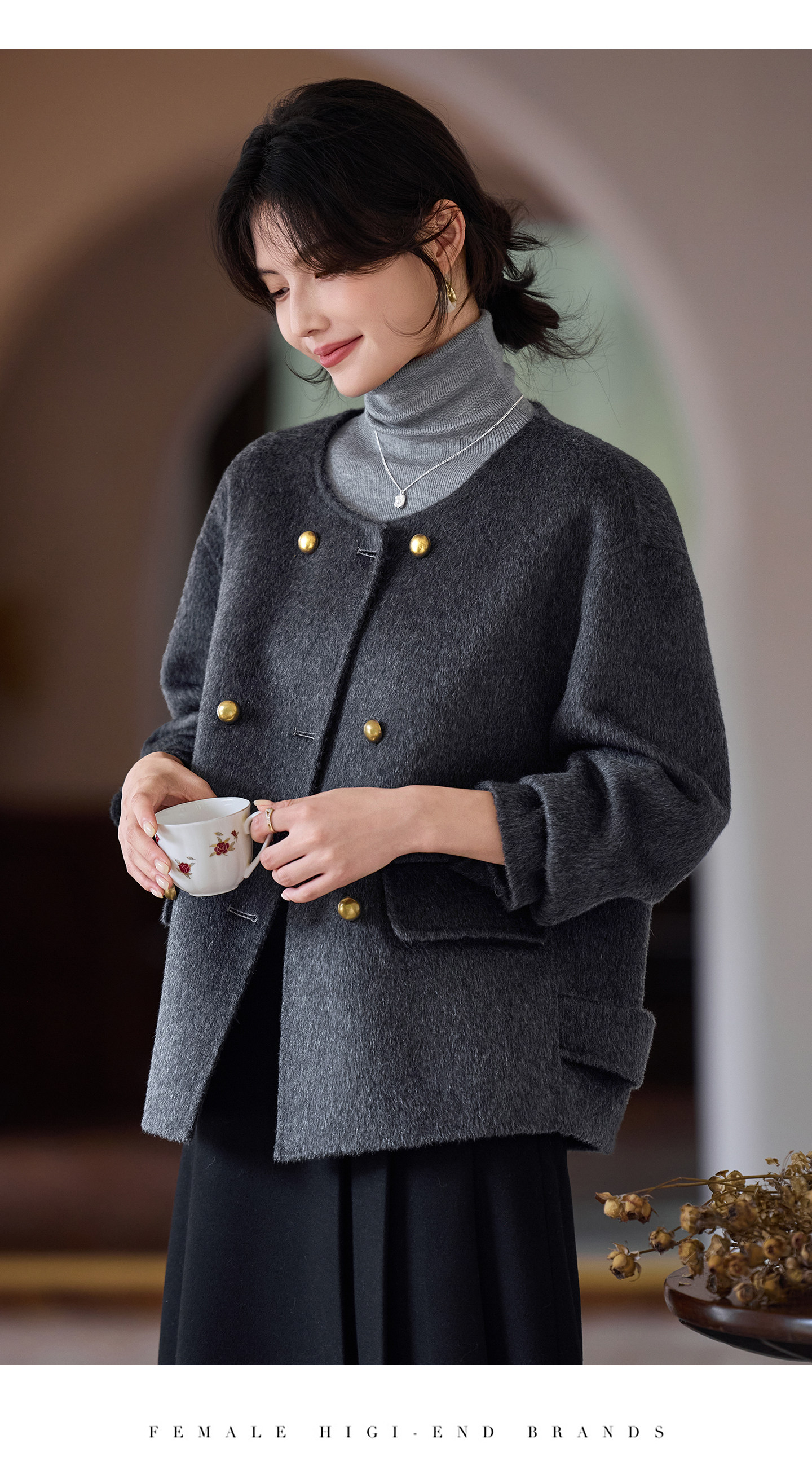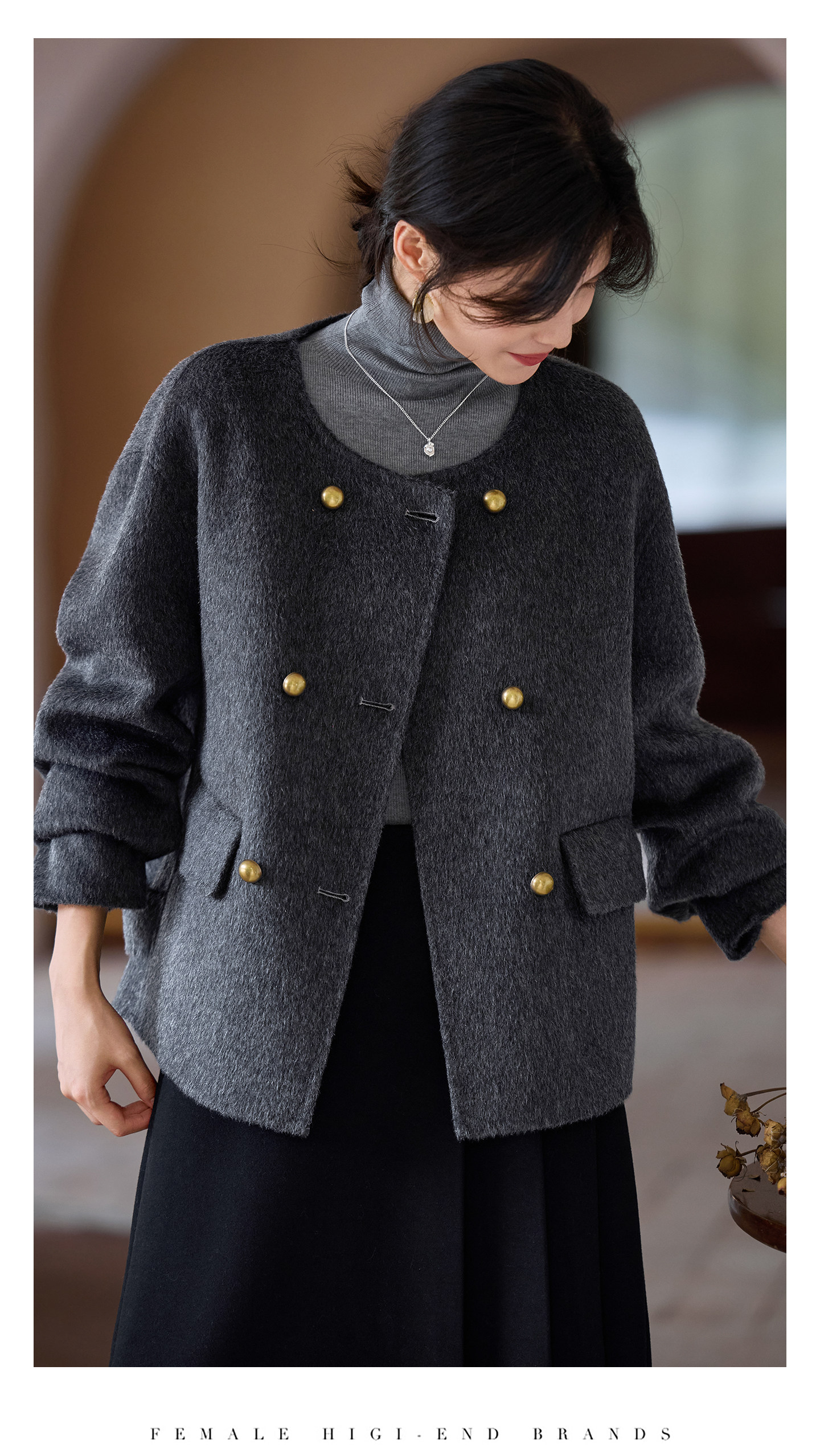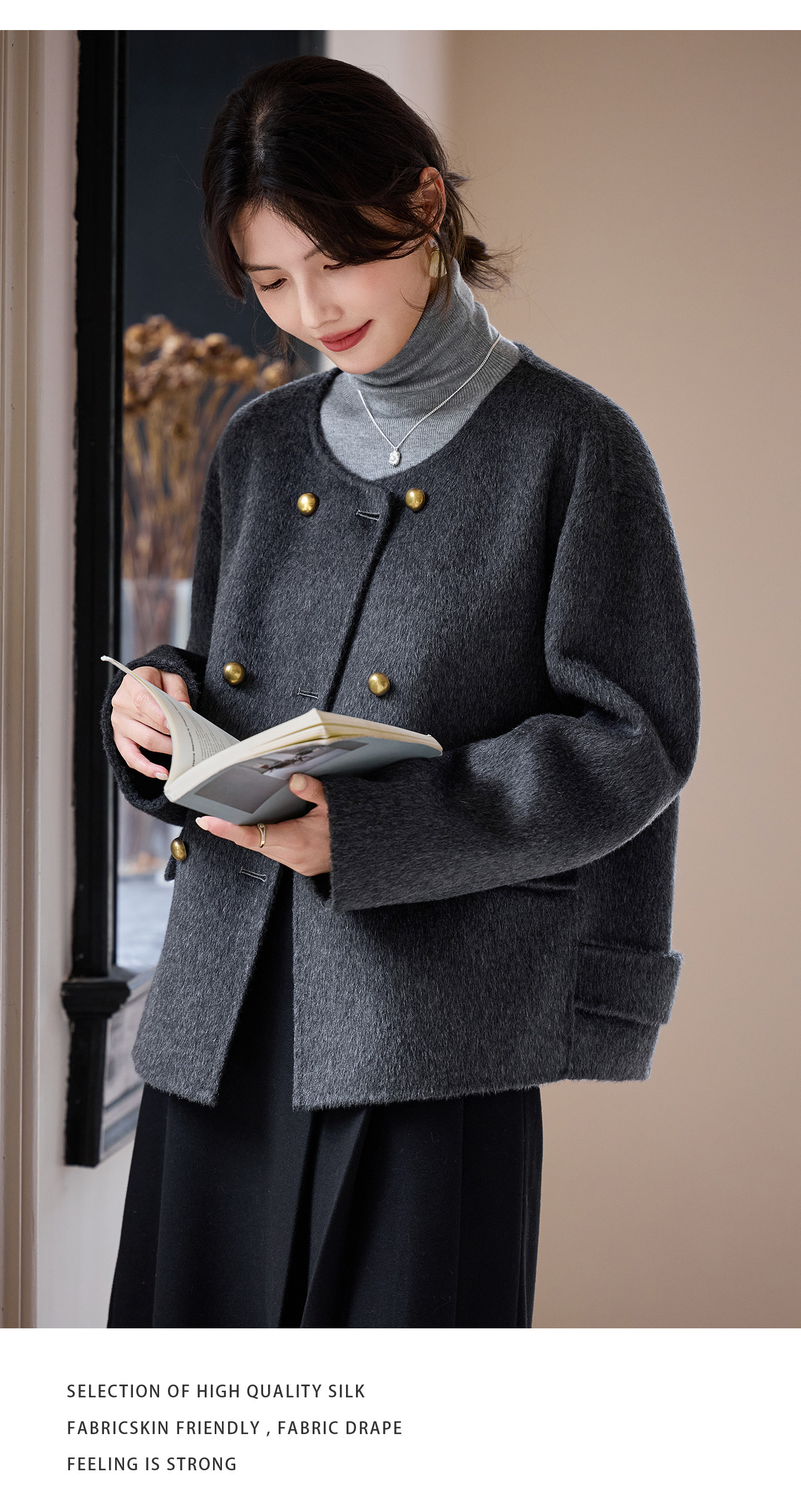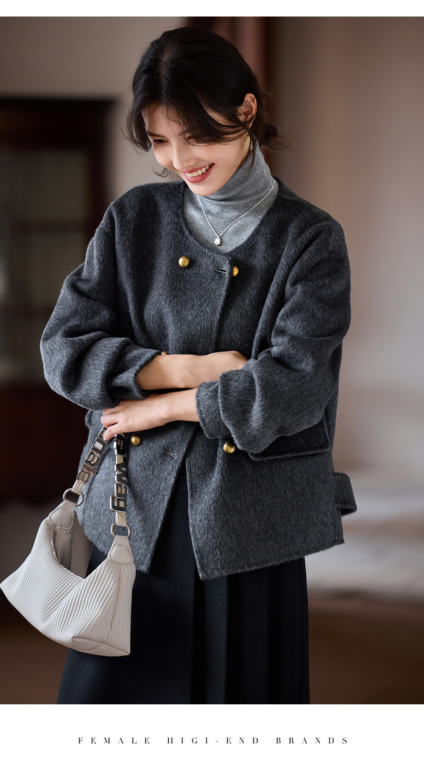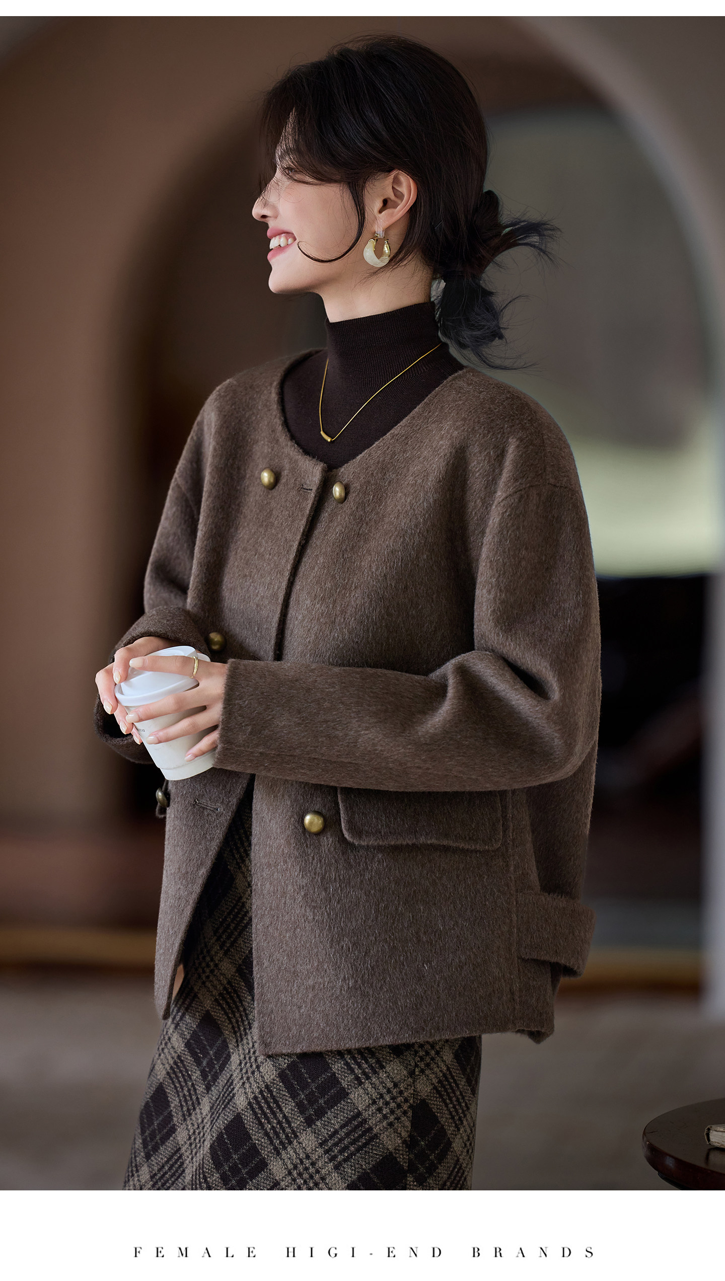 High-End Double-Sided Cashmere Coat for Women, Short Style, 2025 Autumn and Winter New Loose Double-Breasted Elegant Woolen Coat