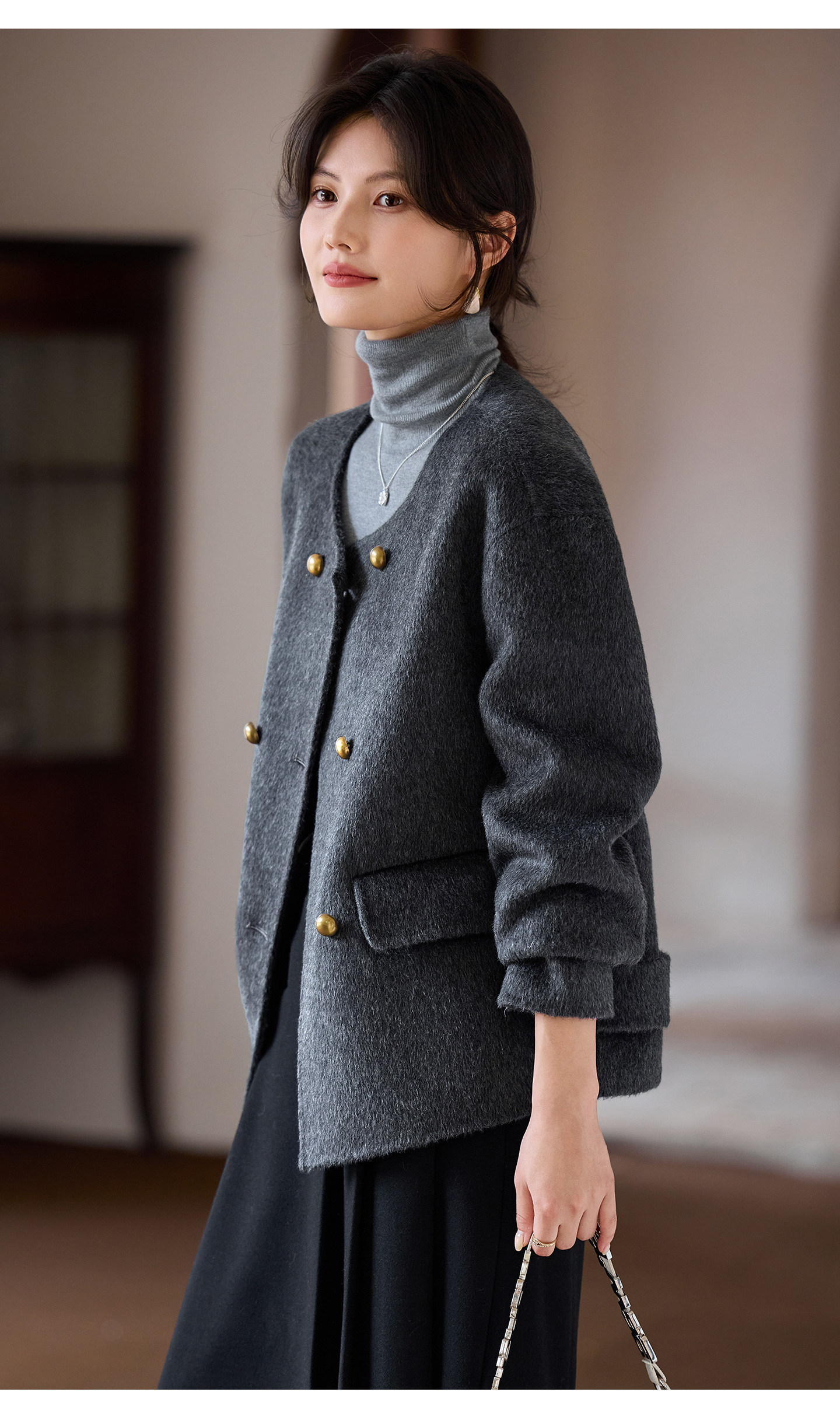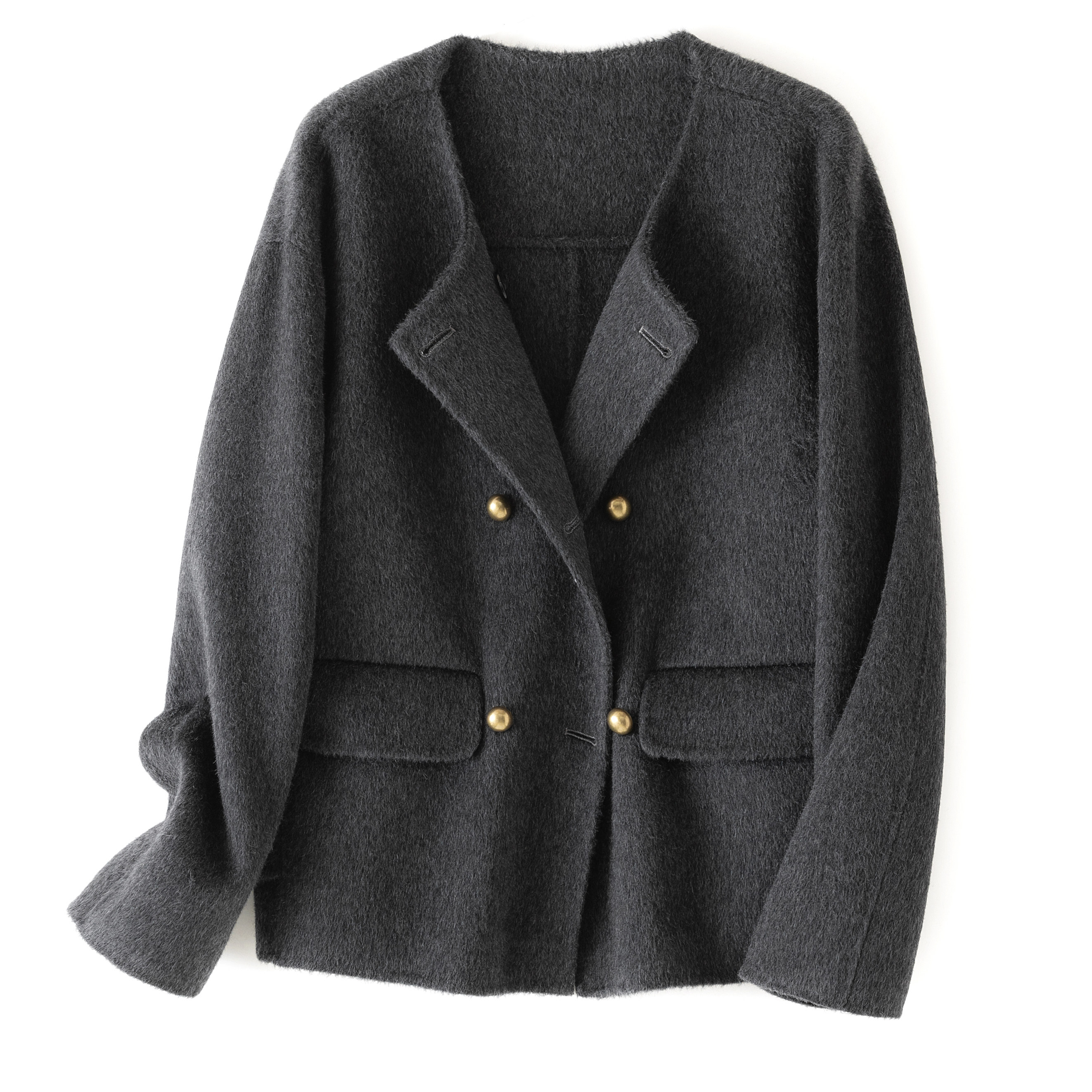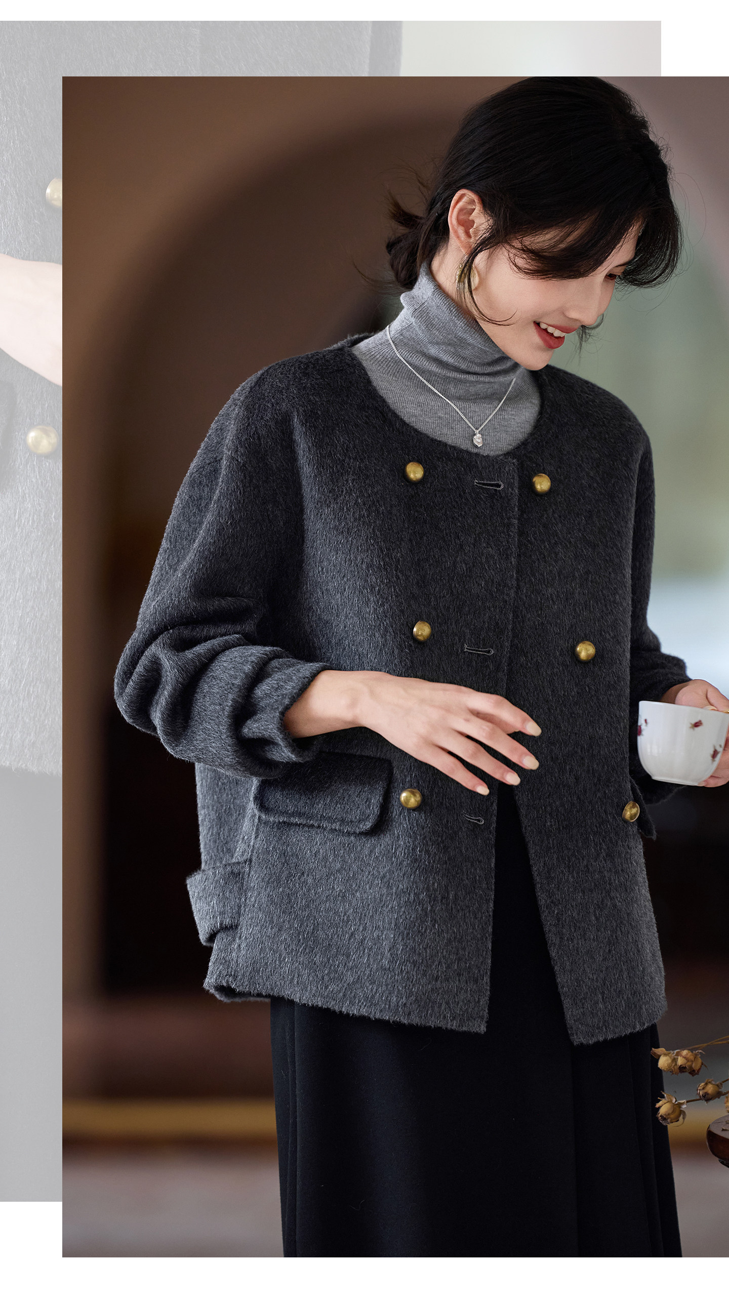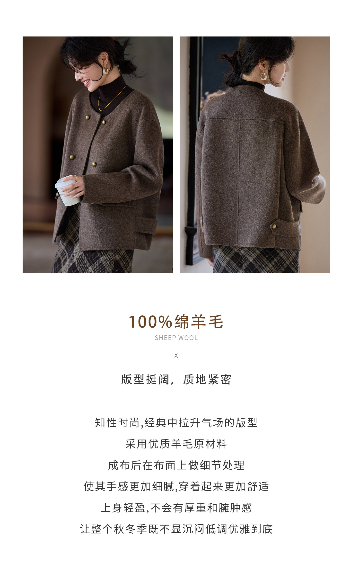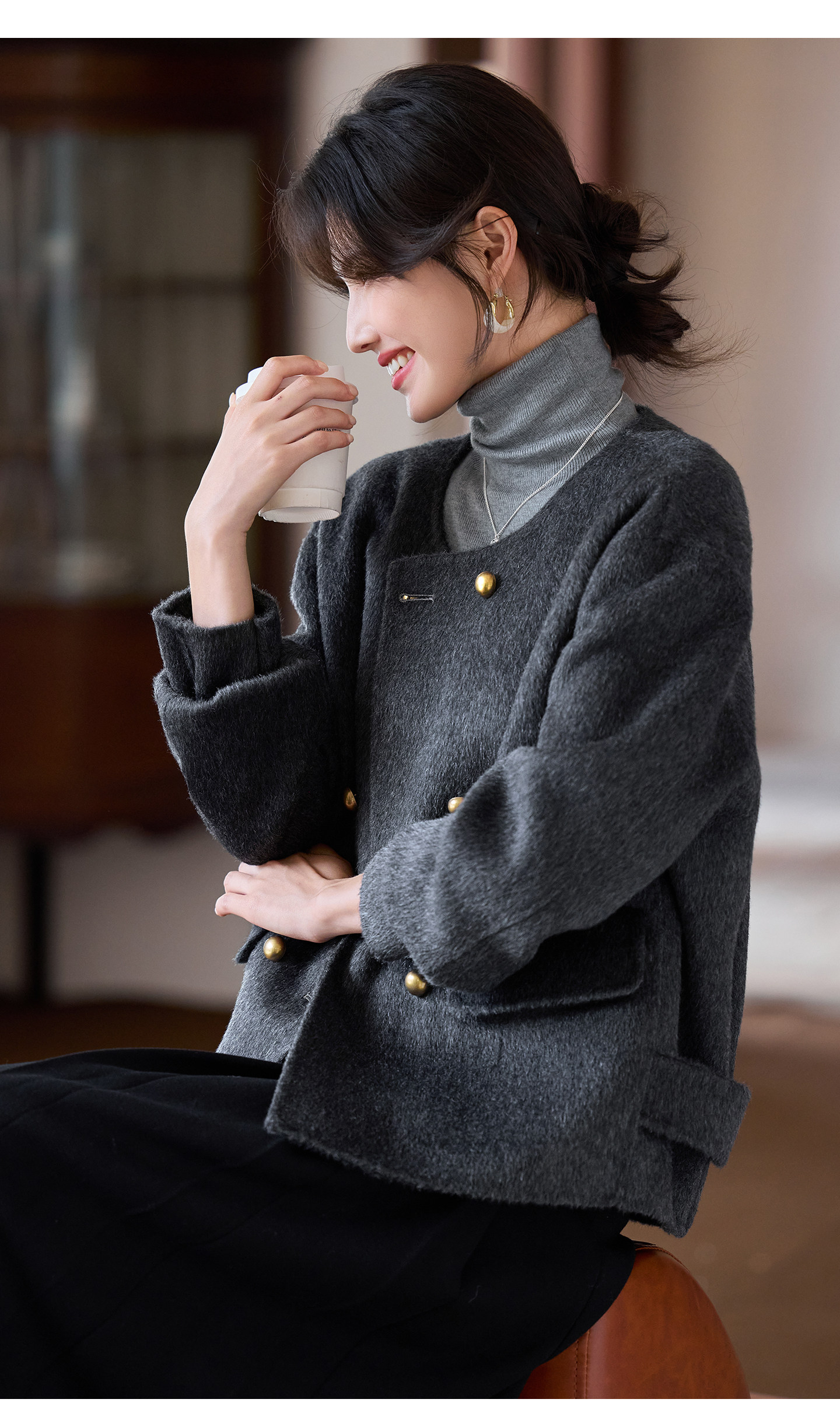 High-End Double-Sided Cashmere Coat for Women, Short Style, 2025 Autumn and Winter New Loose Double-Breasted Elegant Woolen Coat