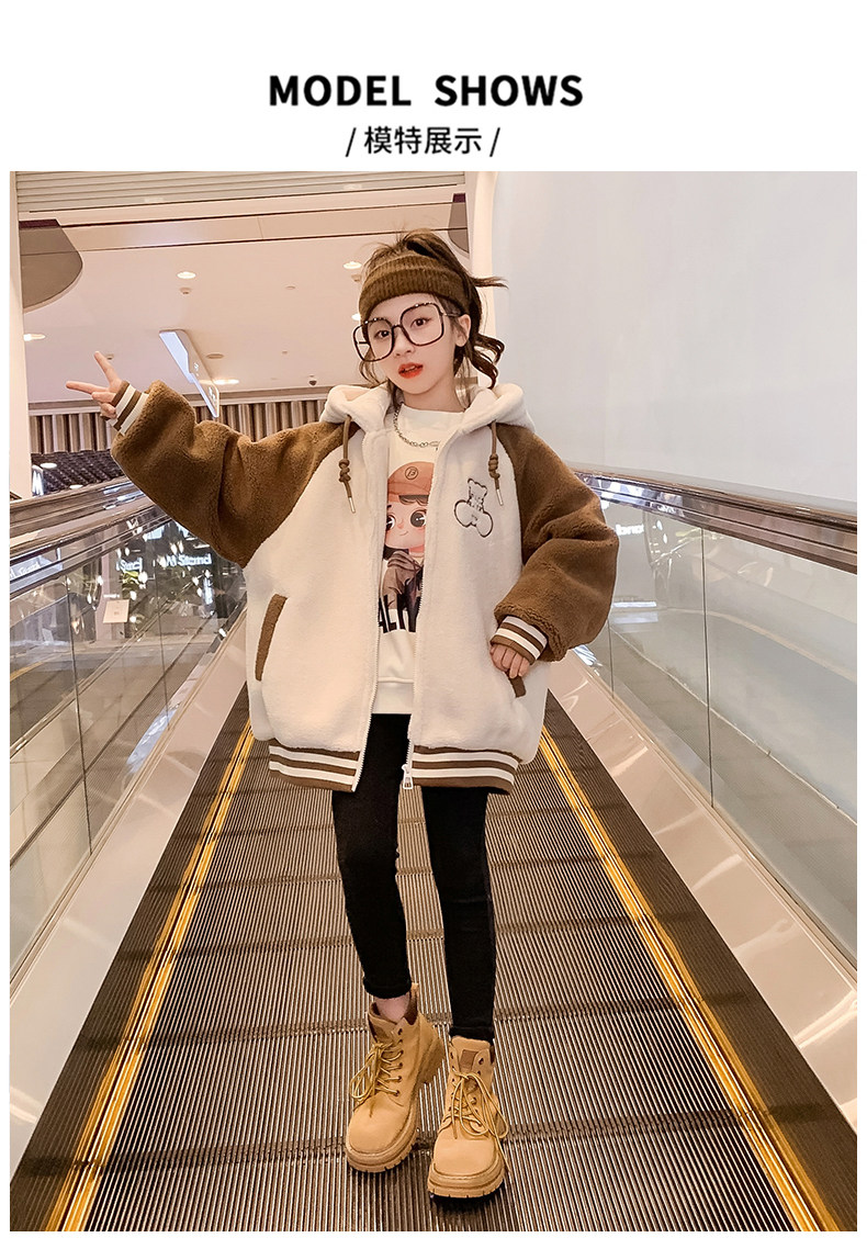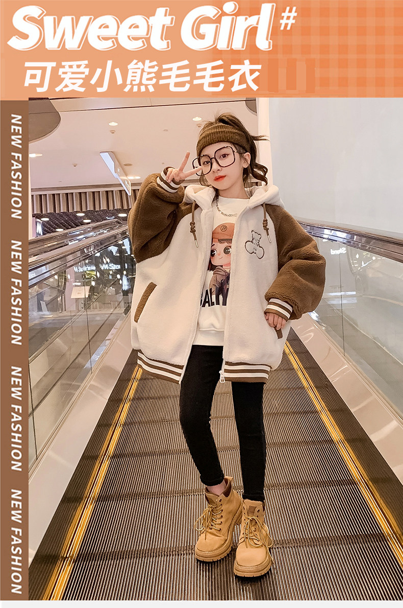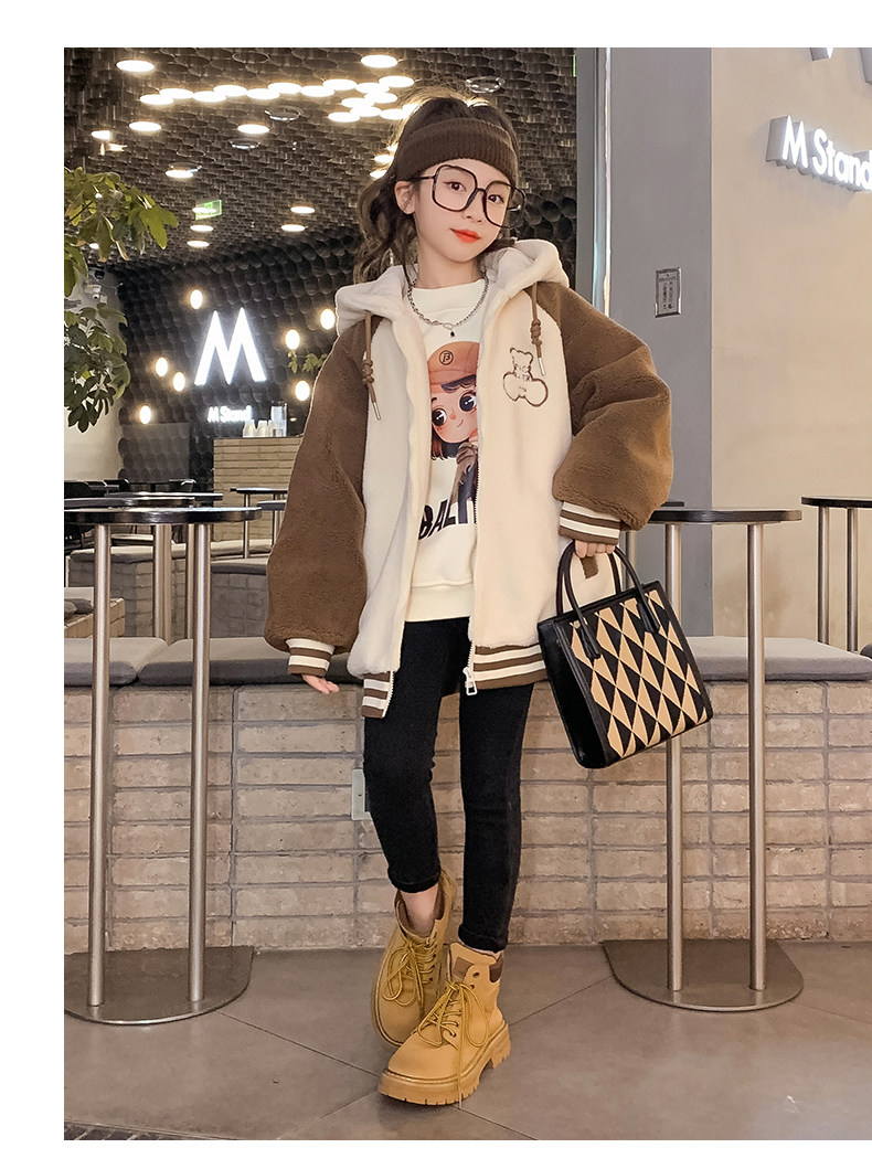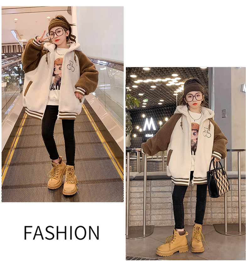Mädchenmantel Herbst und Winter 2025 neue modische Kinderkleidung plus Samt- und verdickter Winter-Lammfleece-Pullover