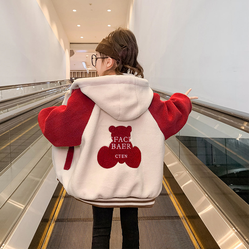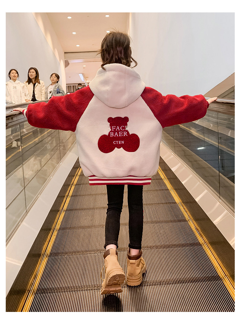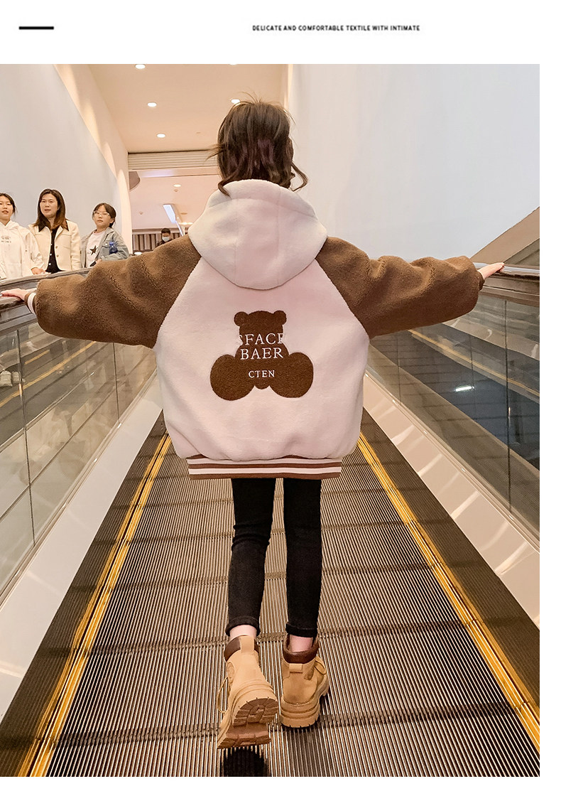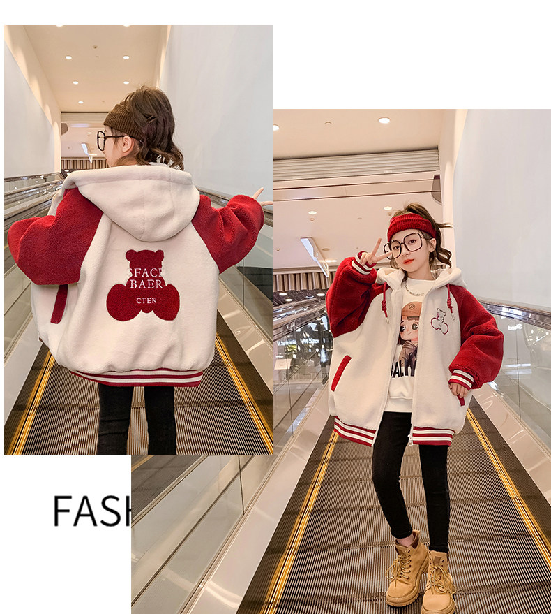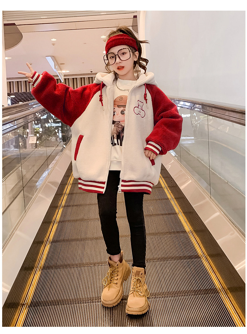 Mädchenmantel Herbst und Winter 2025 neue modische Kinderkleidung plus Samt- und verdickter Winter-Lammfleece-Pullover