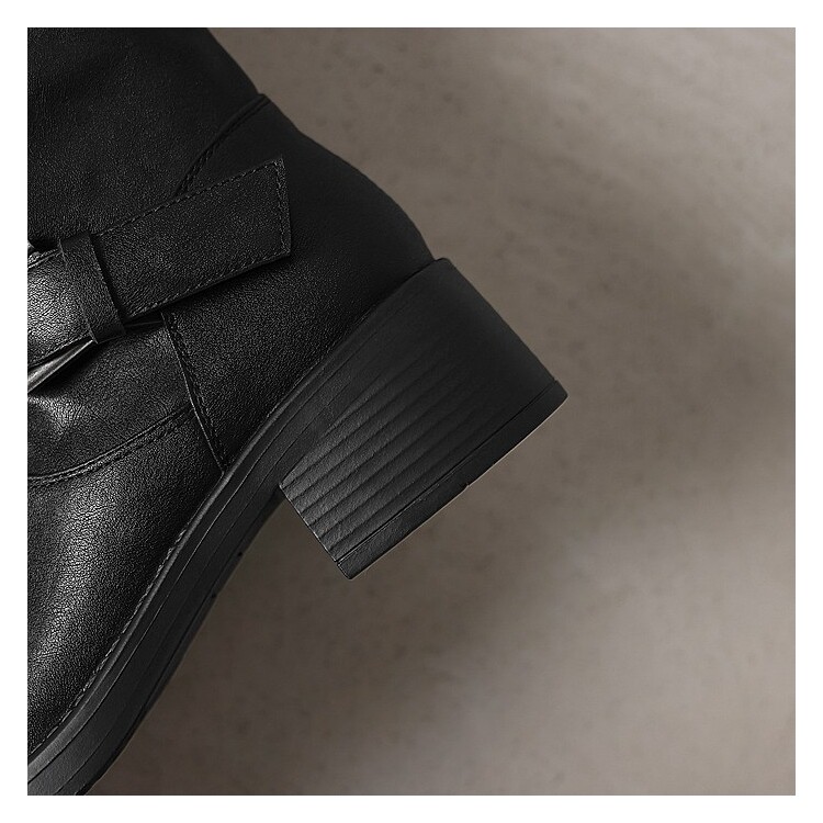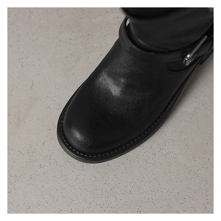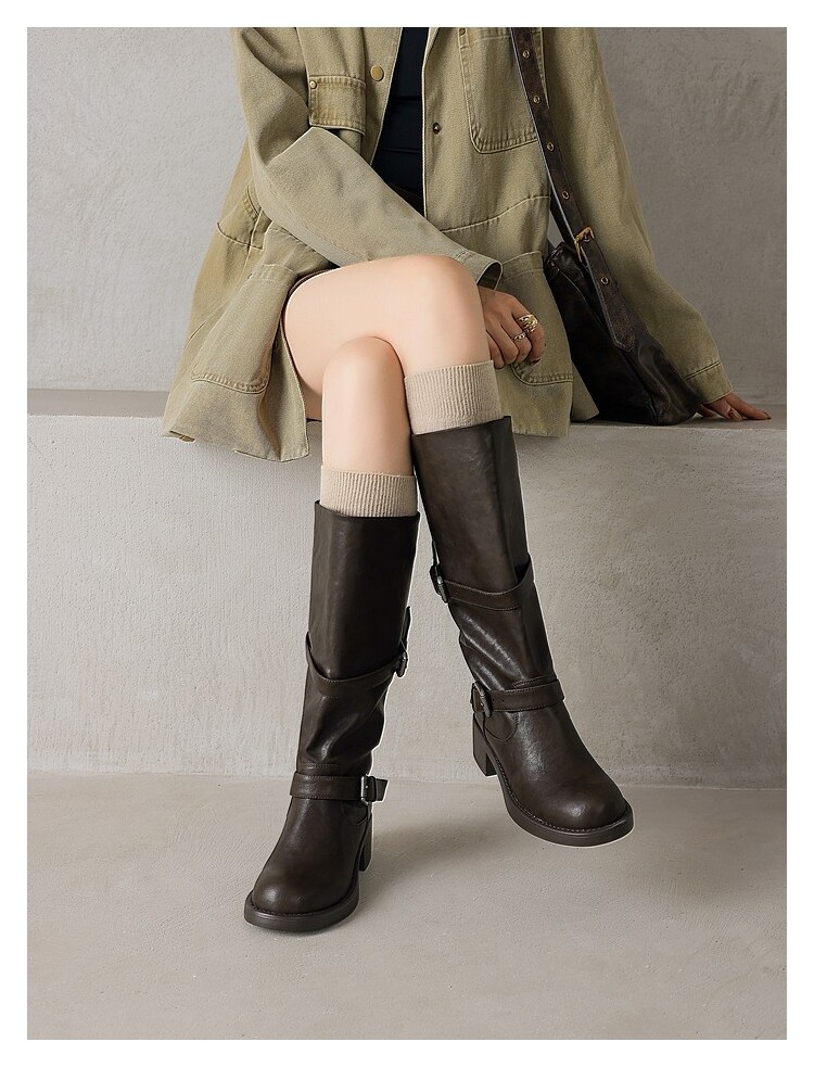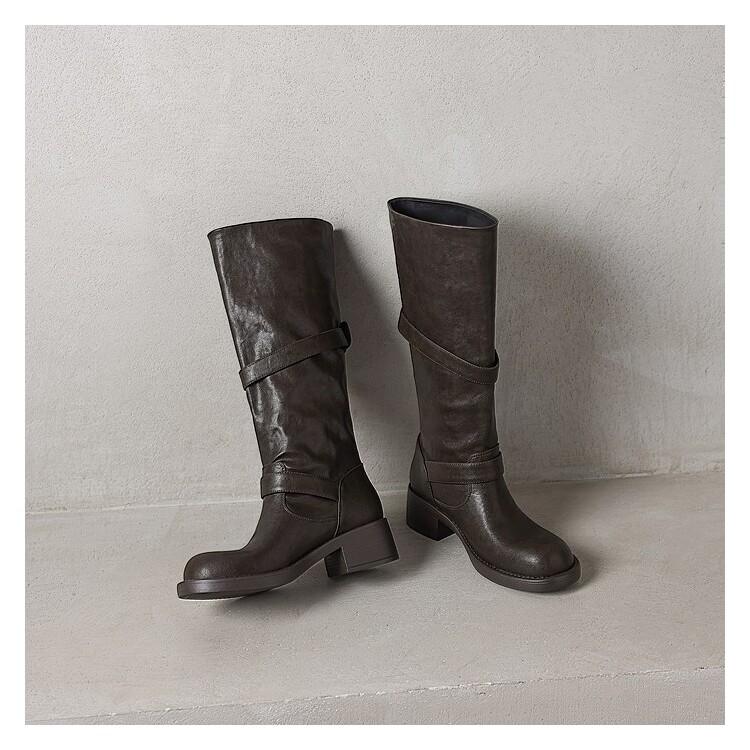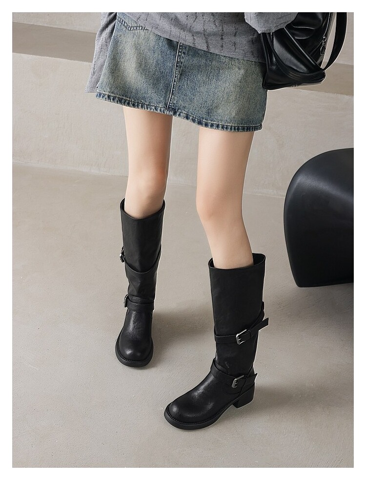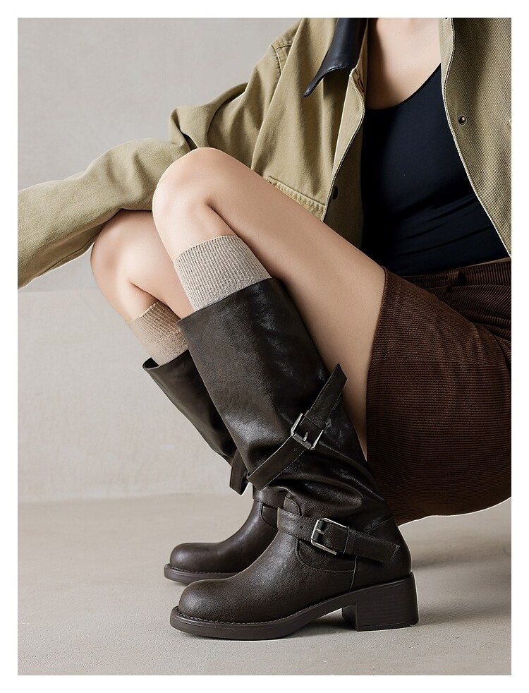 Italy Corso Venezia~ Genuine Leather Buckle Knight Boots for Women, Mid-Heel Knee-High Boots