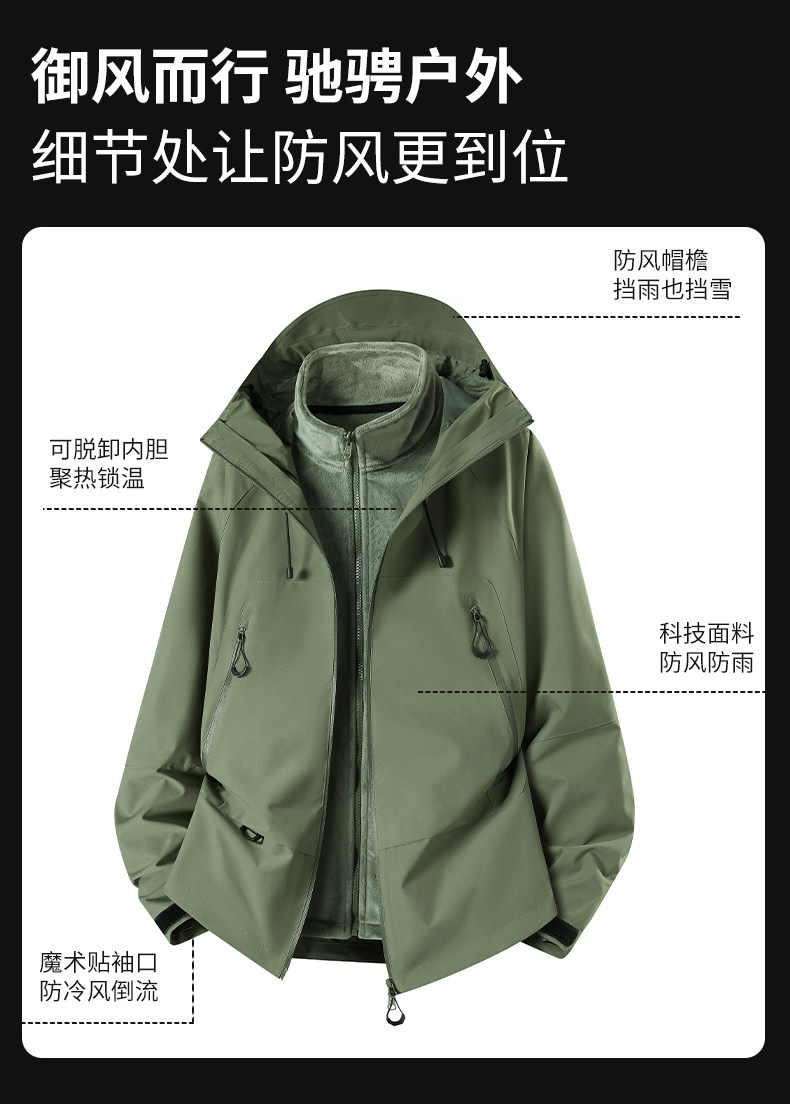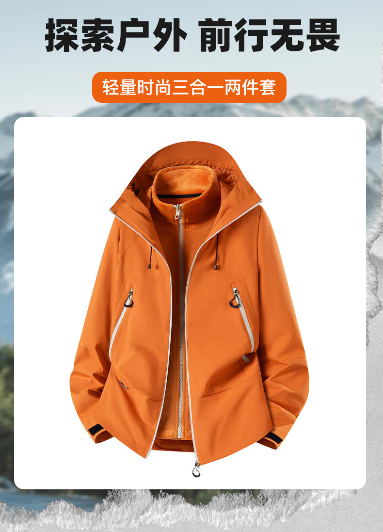 Mulinsen outdoor jacket for men and women 2025 new autumn and winter three-in-one windproof and waterproof plus velvet and thickened mountaineering clothing