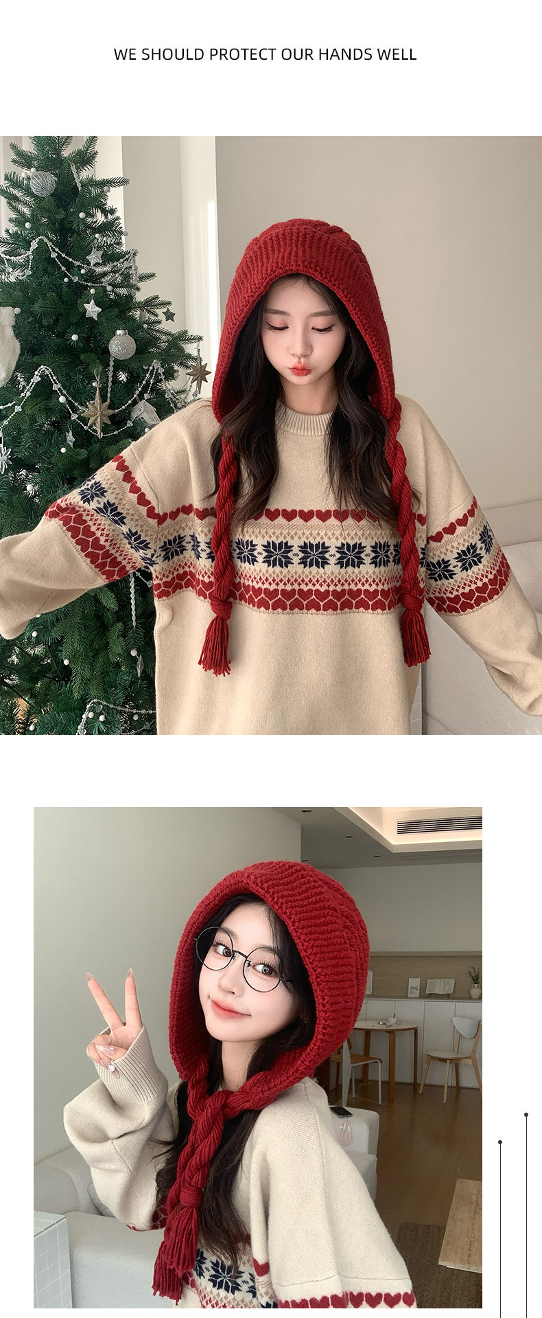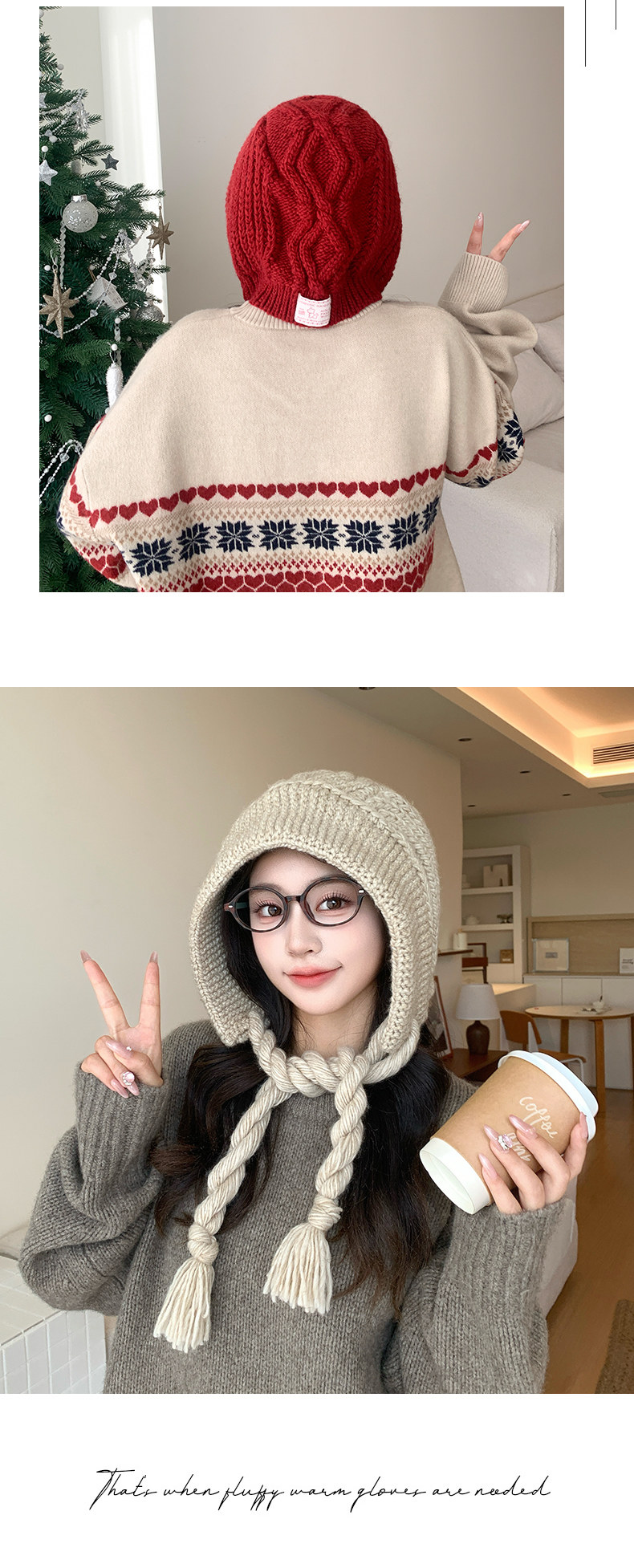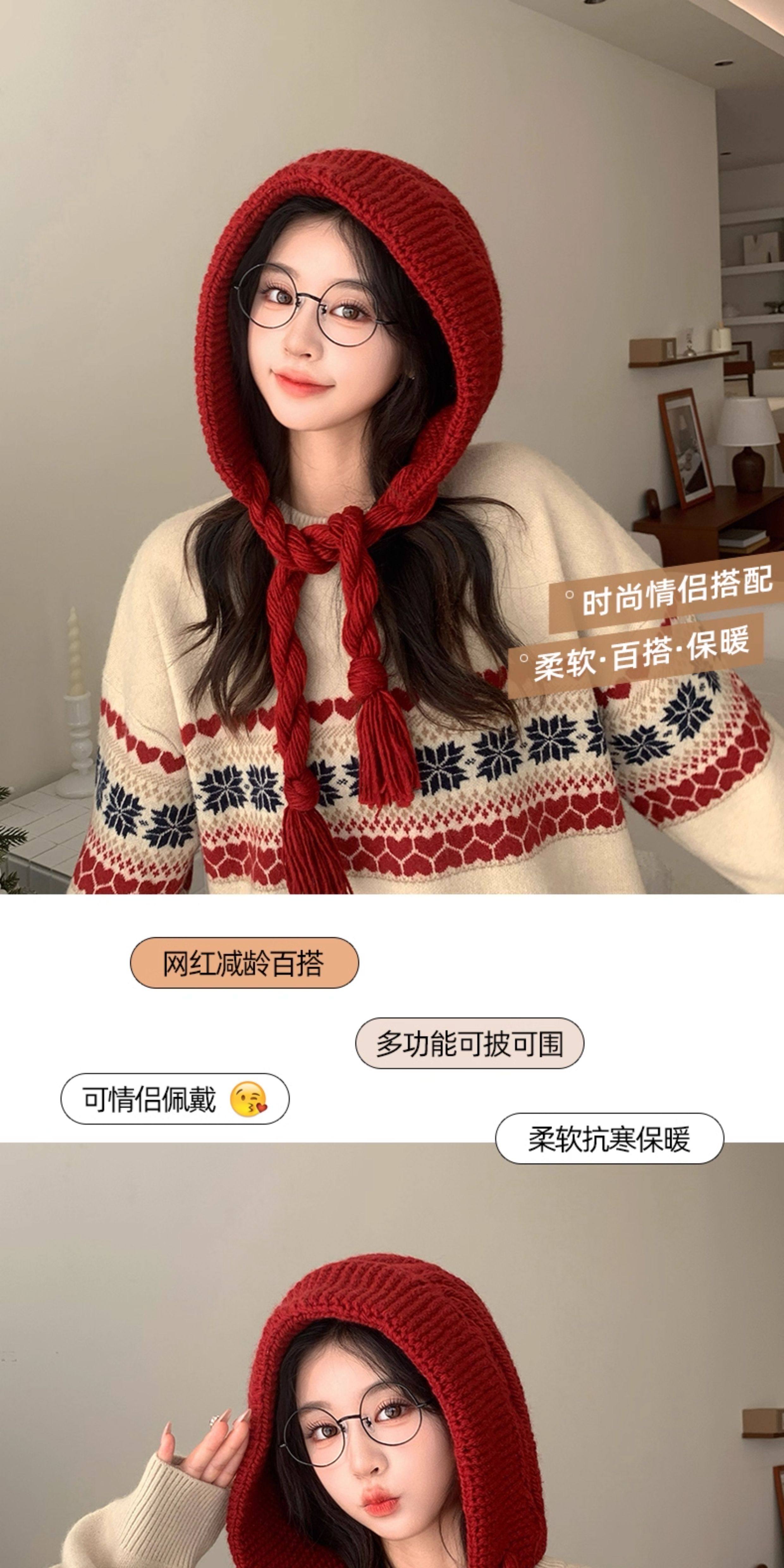 2025 New Knitted Wool Little Red Hat Women's Autumn and Winter Twist Braid Ear Protection Baotou Warm Lei Feng Hat Fashion
