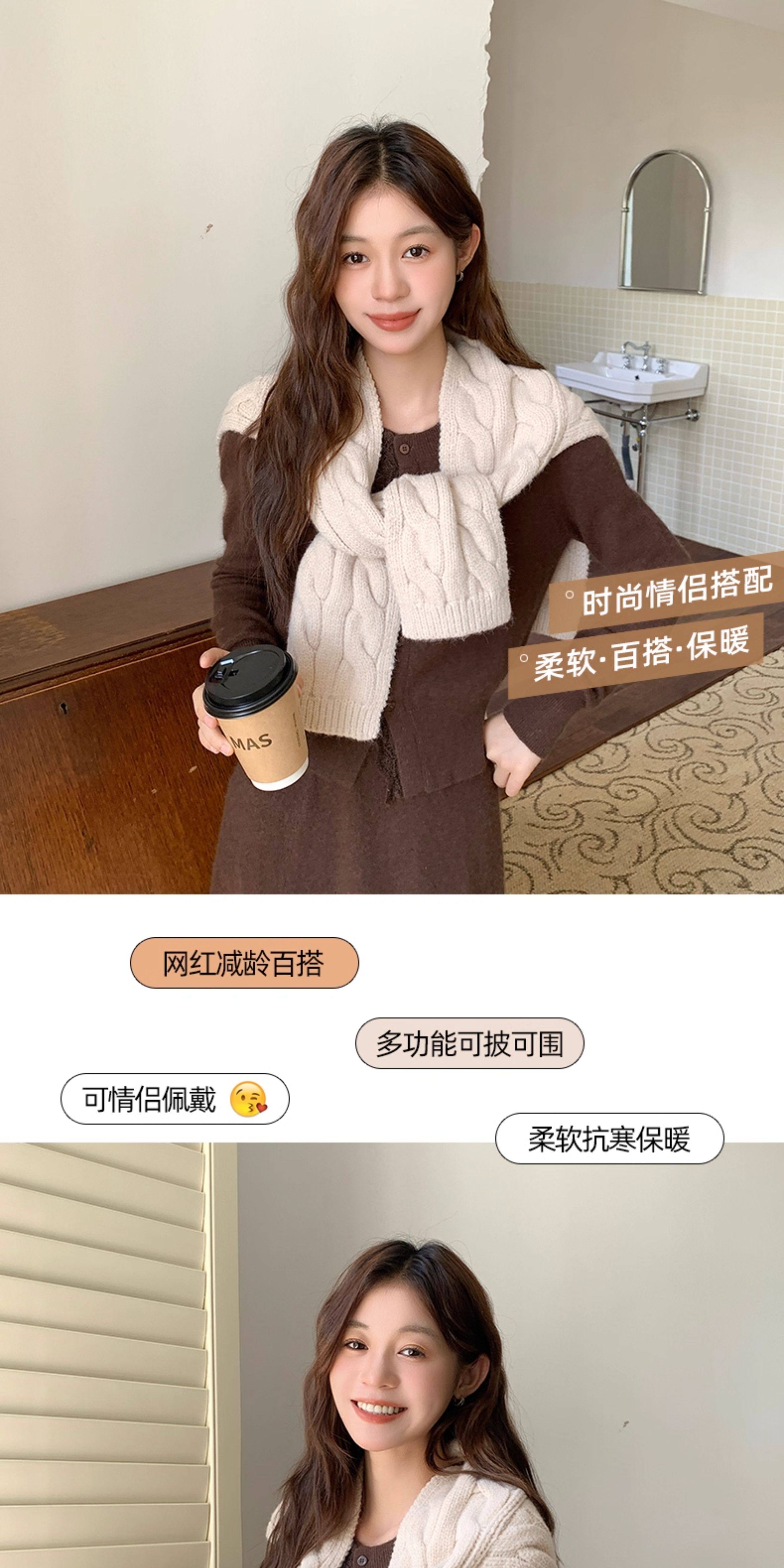 2025 New Knitted Twist Waistcoat Scarf Women's Autumn and Winter Korean Fashion Versatile Warm Scarf Trendy
