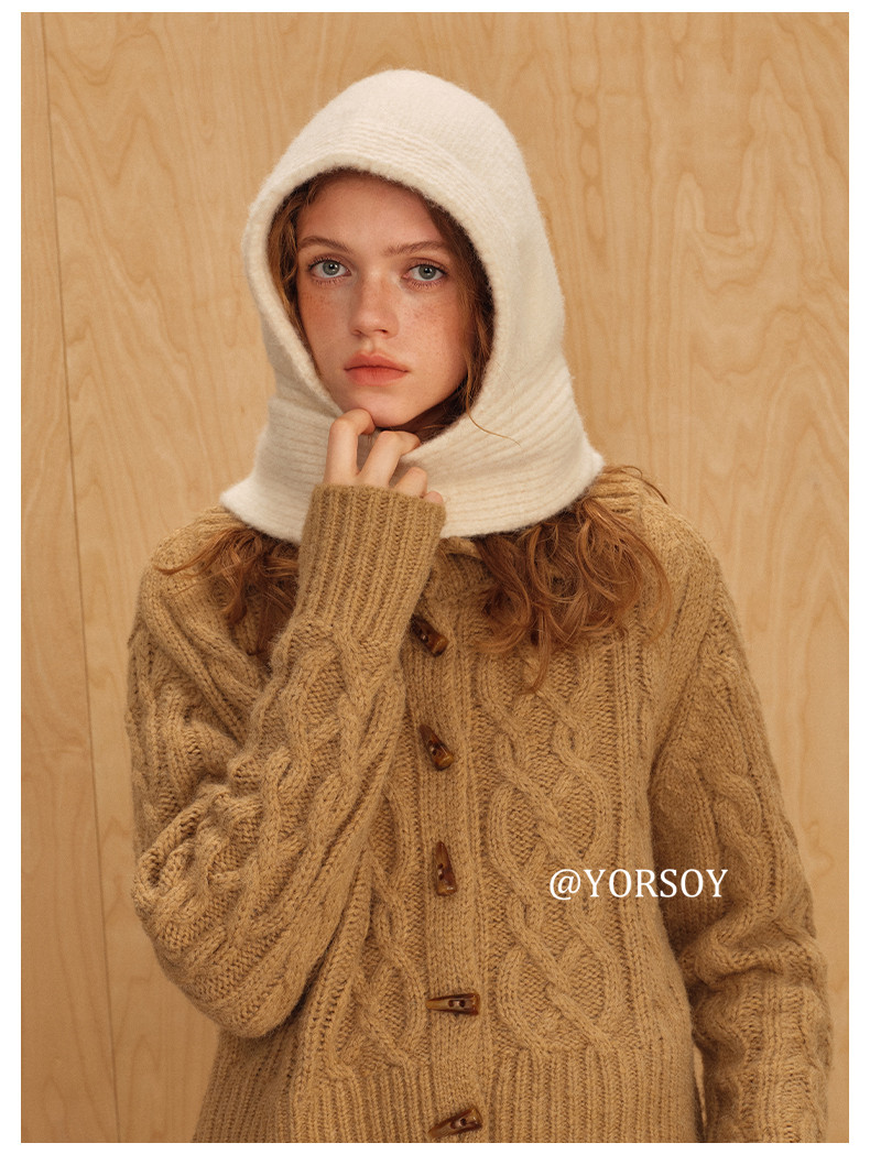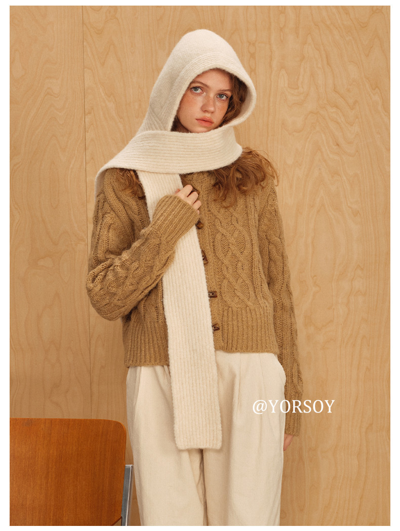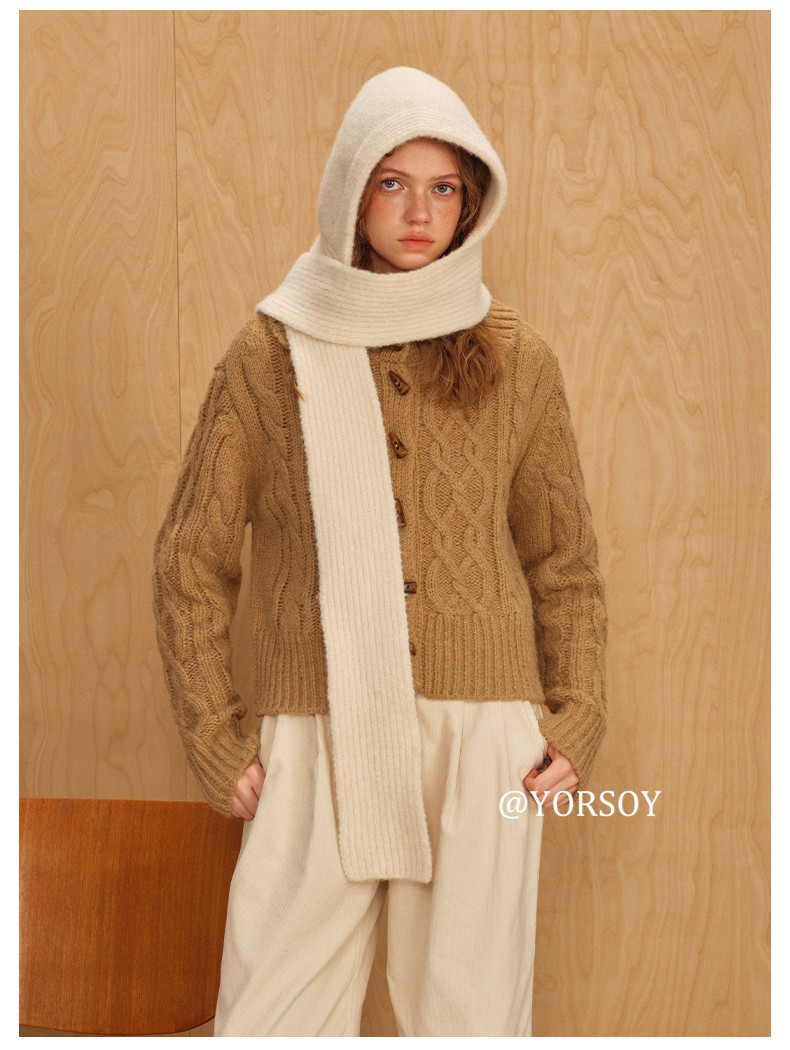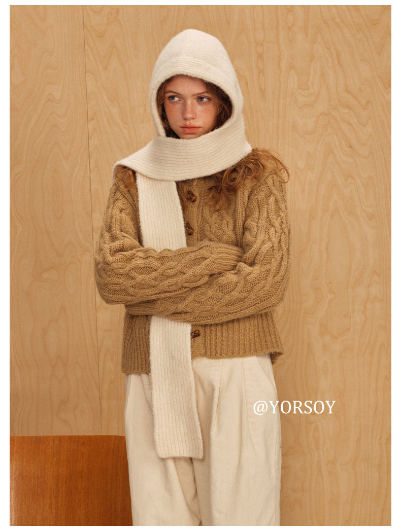 Retro Hat and Scarf All in One Thickeneded Warm Knitted Woolen Hat for Women Winter Ear Protection and Neck Protection Balaclava Hat