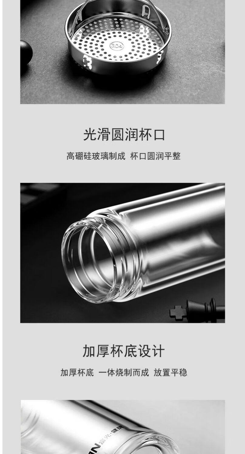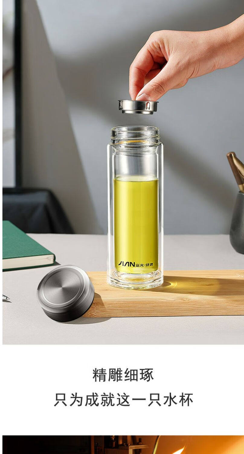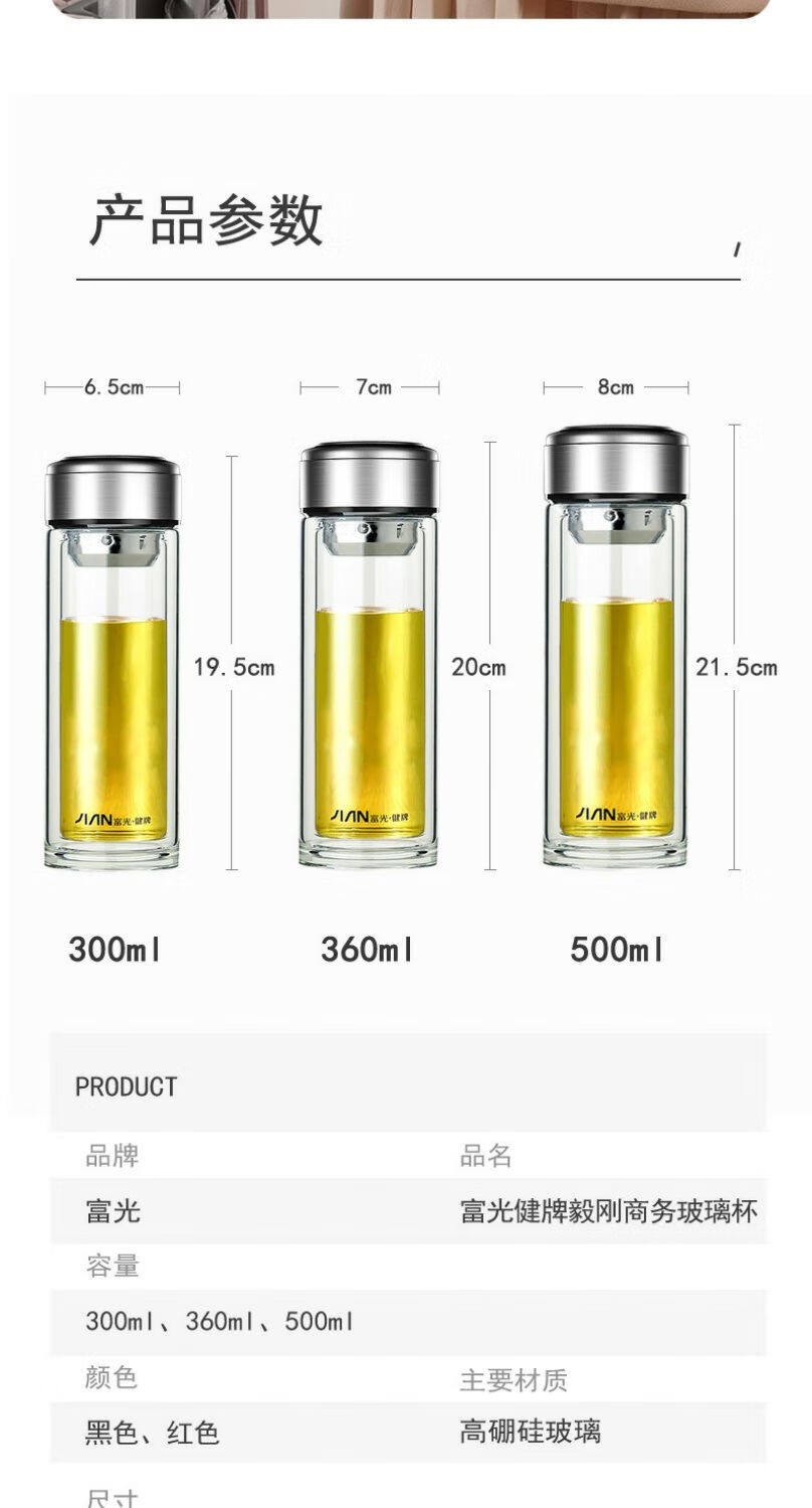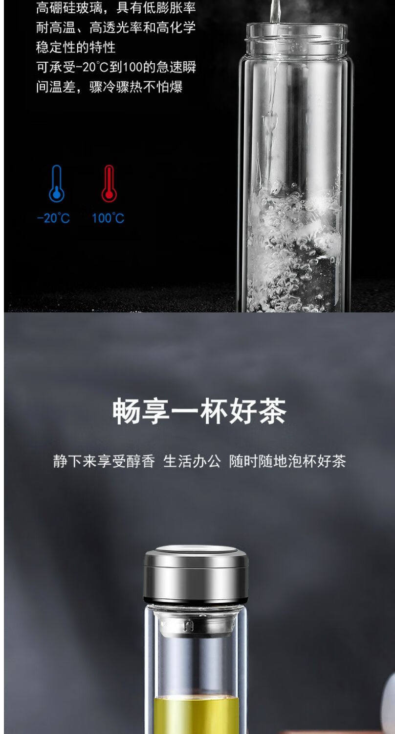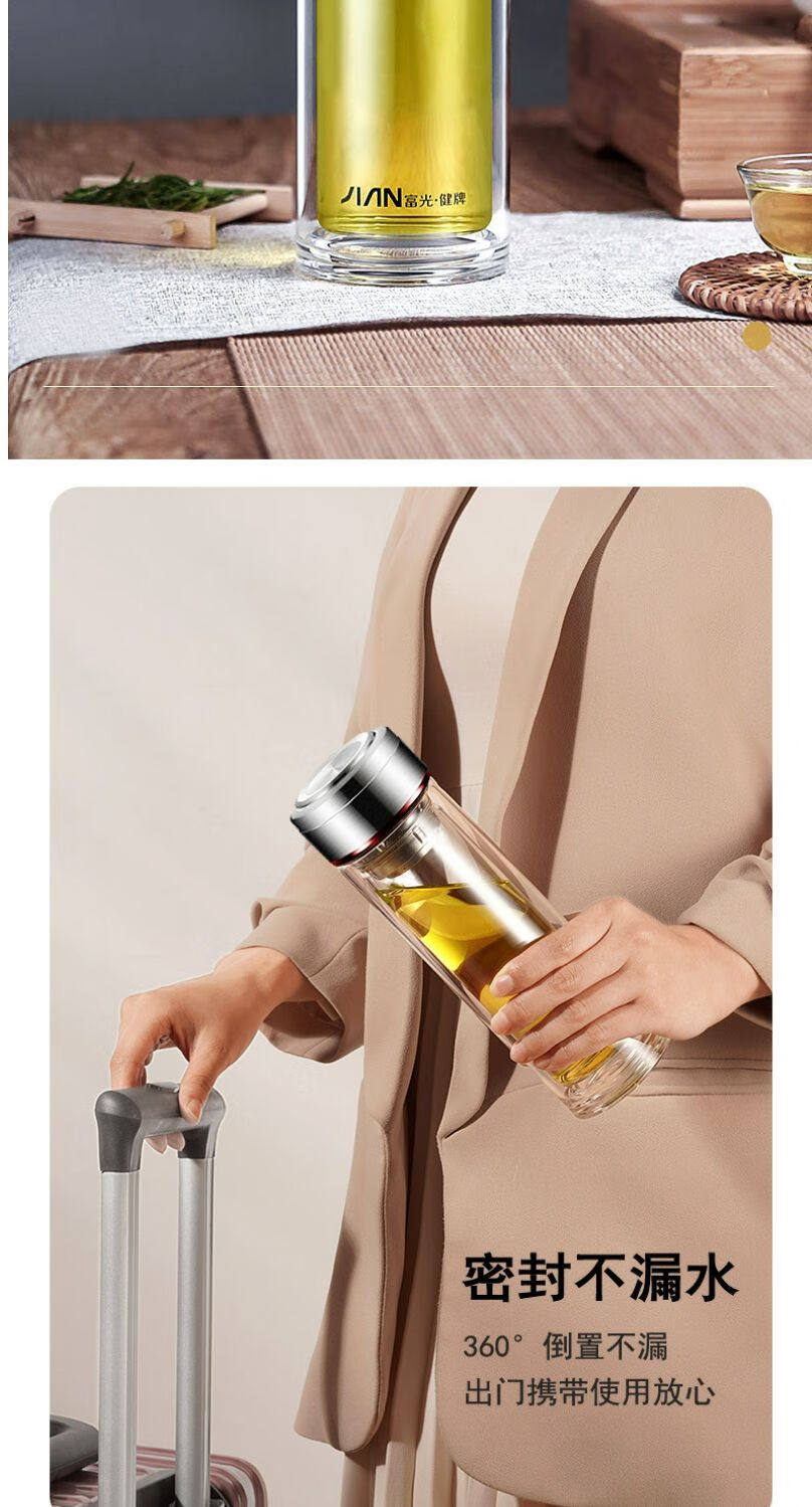 Fuguang Double-Layer Glass Cup for Men and Women, Tea and Water Separation Cup, Personal Water Cup, Large Capacity Portable Cup