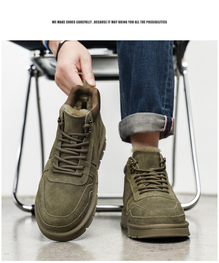 Men's Wool Snow Boots, Cold-Resistant, Warm, Outdoor, Non-Slip, Genuine Leather, Trendy, Winter, Fleece-Lined, Thickened, High-Top, Large Cotton Shoes for Northeast