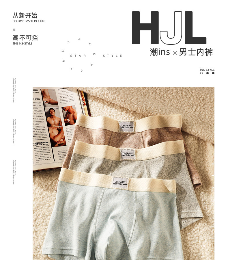New Men's Underwear, Pure Cotton, Autumn and Winter Men's Boxer Briefs, Simple, Skin-Friendly, Breathable, Trendy Men's Boxer Shorts