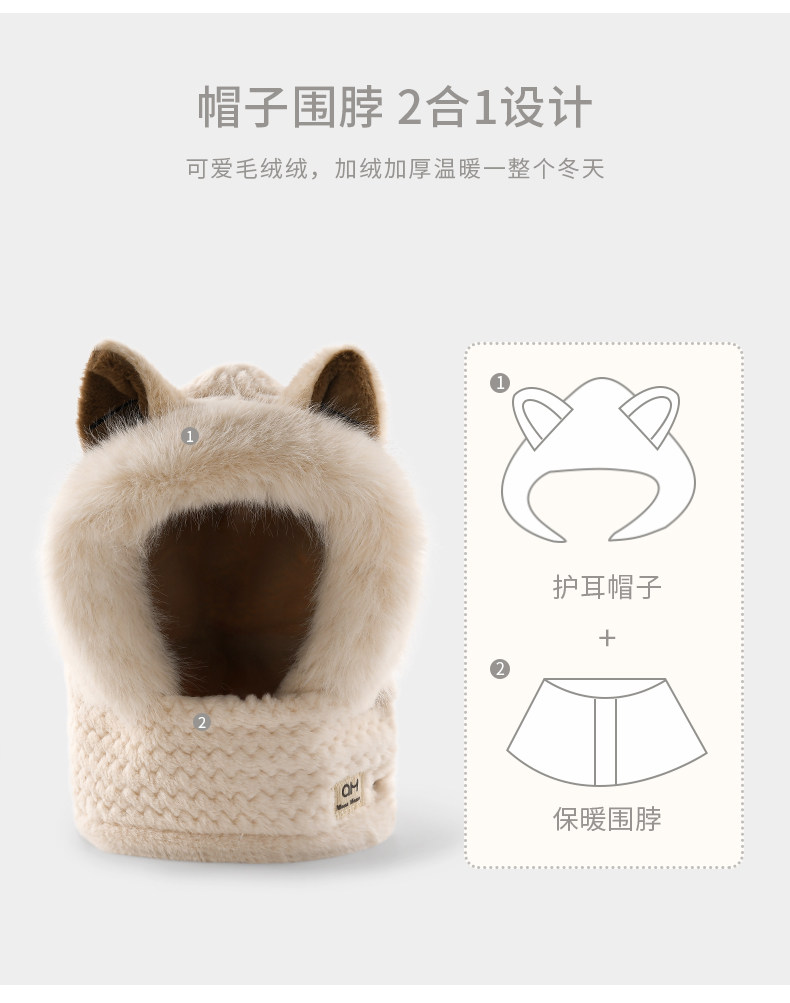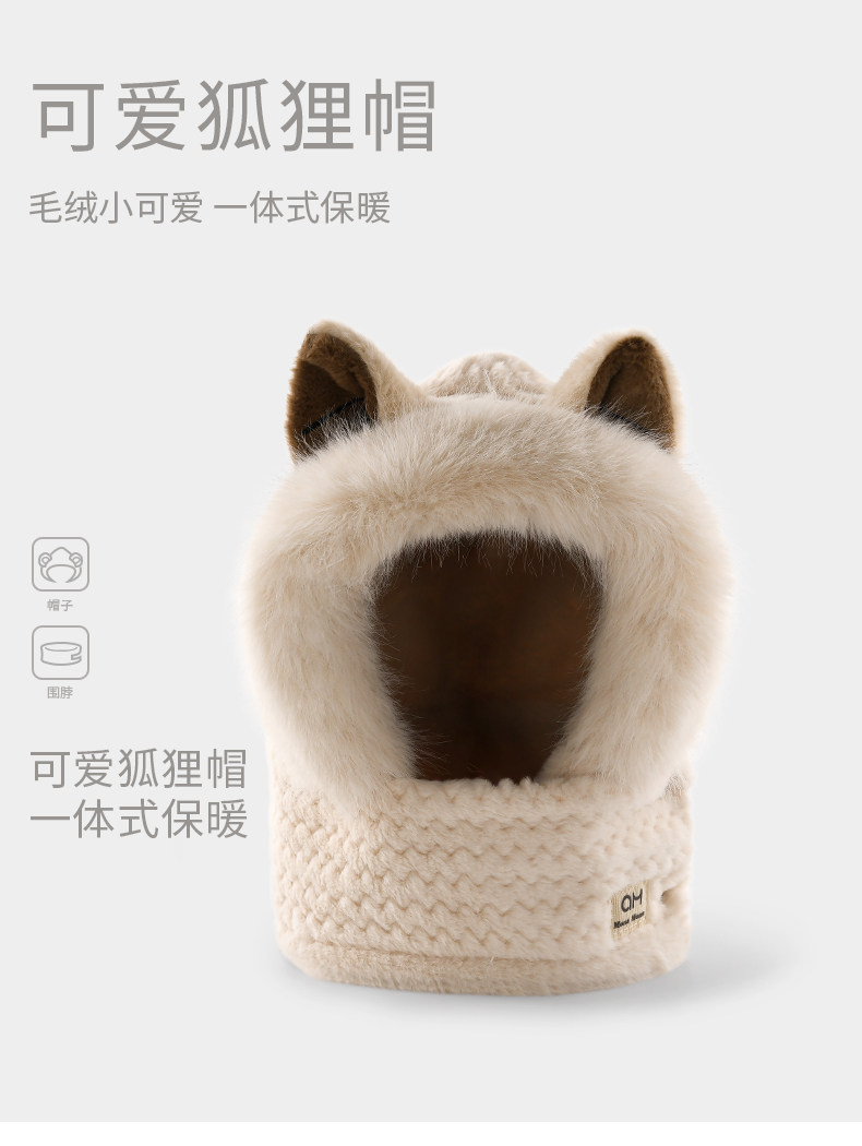 Coso Kidsren's Hat and Scarf All-In-One for Girls and Boys in Autumn and Winter, Cute Plush Face-Covering Scarf and Ear-Protecting Hat for Babies