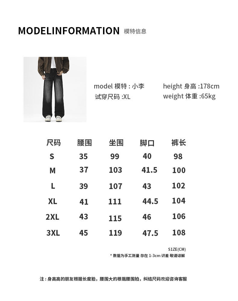 Outseam (cm) 99 cm 101.5 cm 104 cm 106.5 cm 109 cm