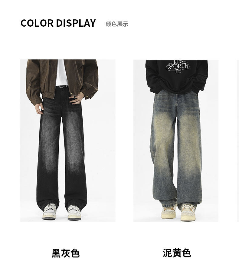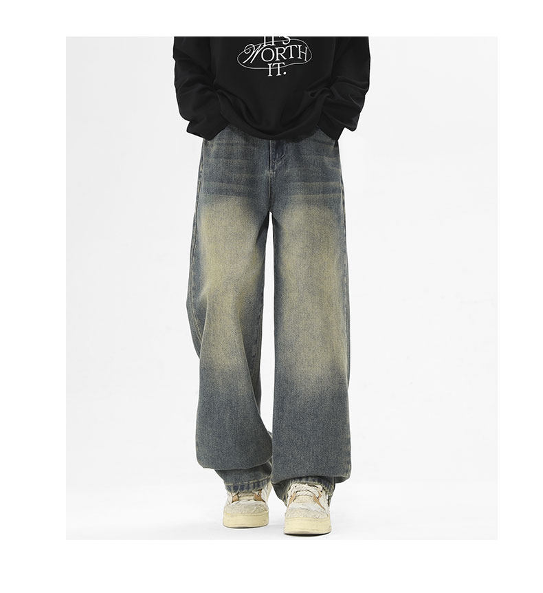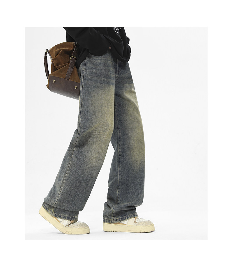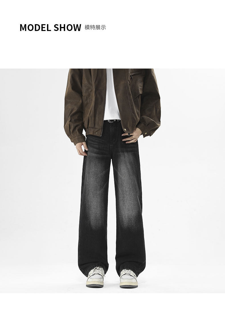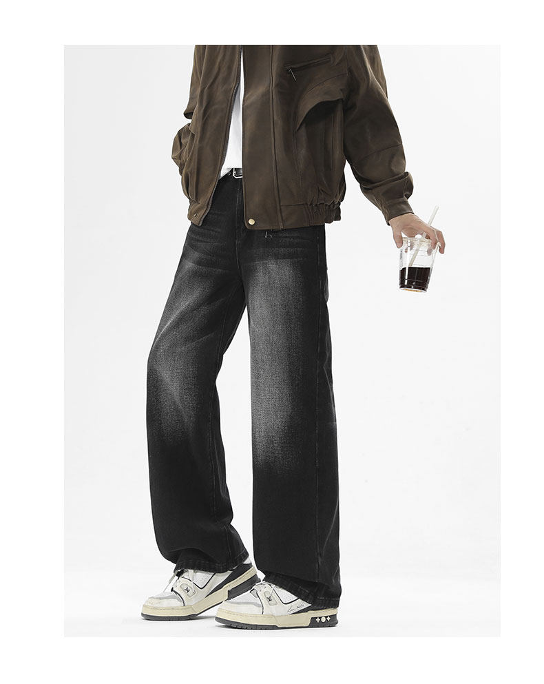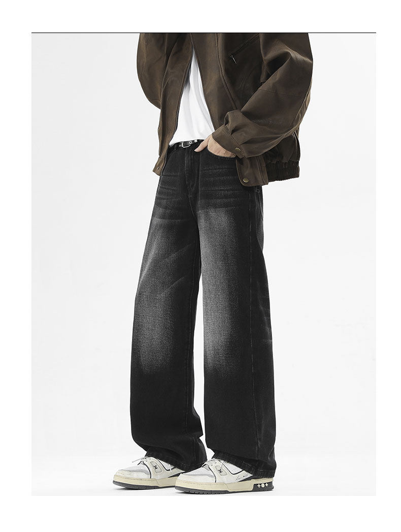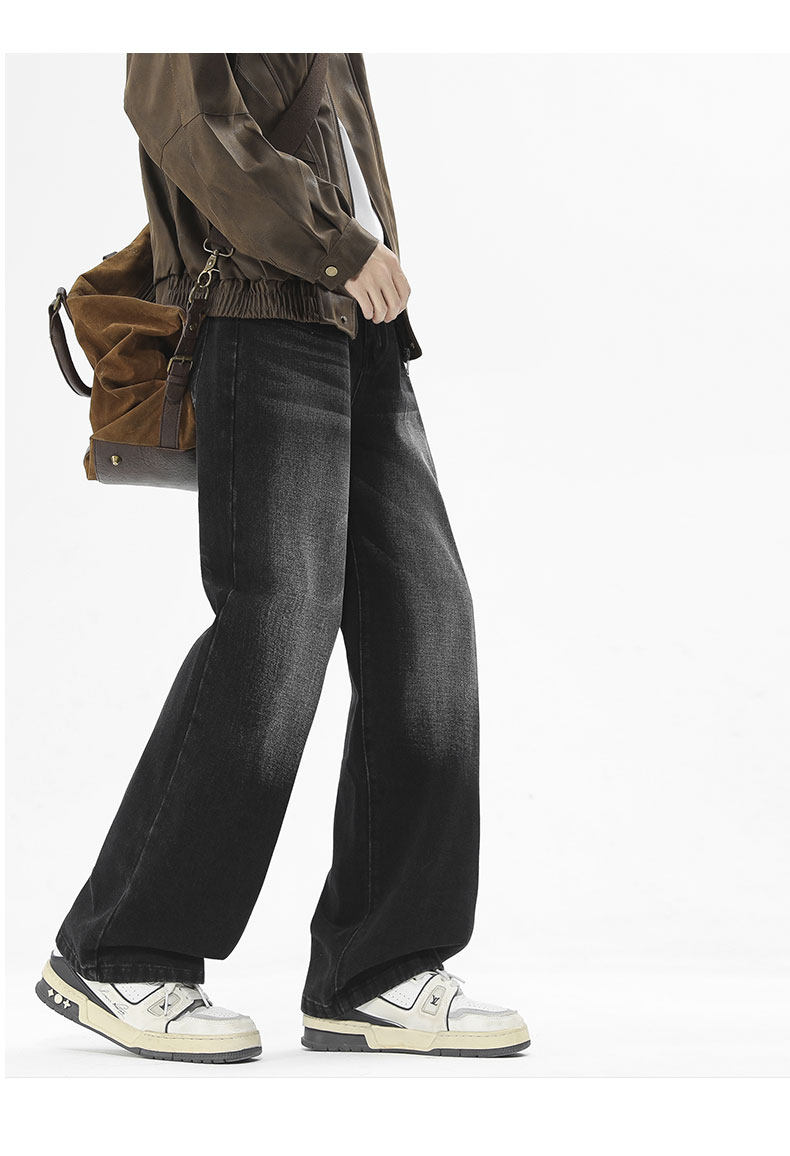 Money velvet thickened jeans for men 2025 autumn and winter new scimitar slimming loose straight wide-leg pants