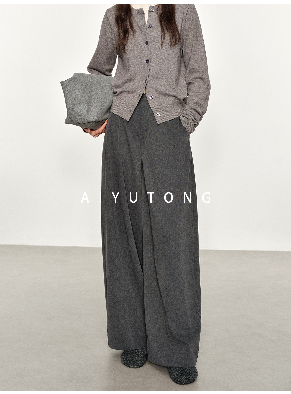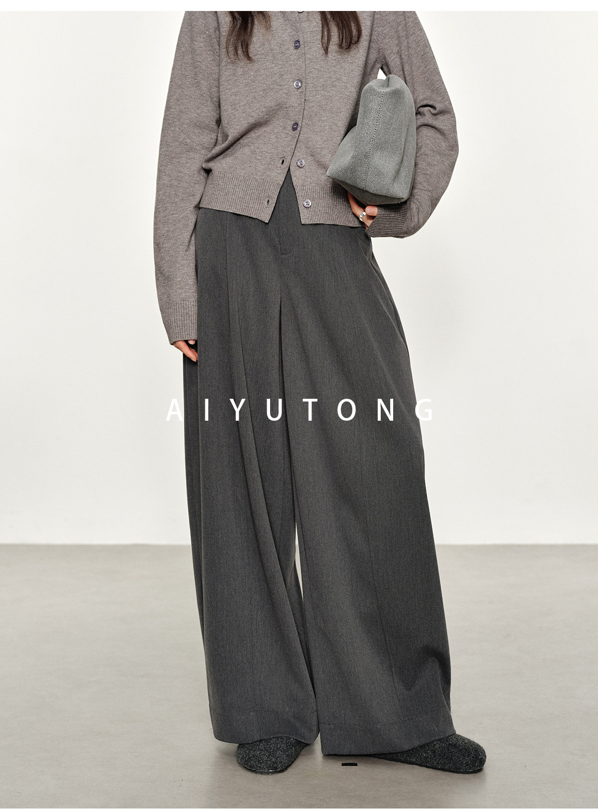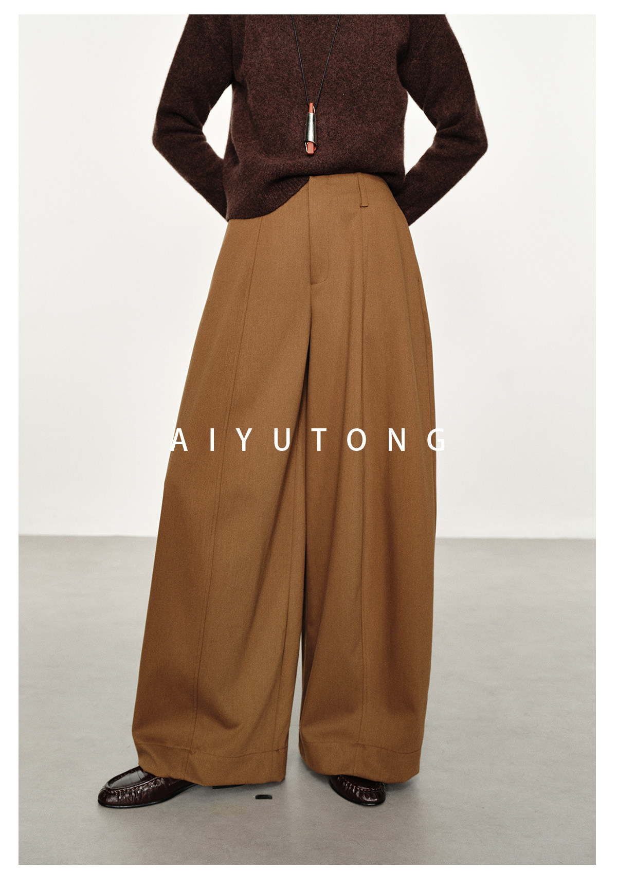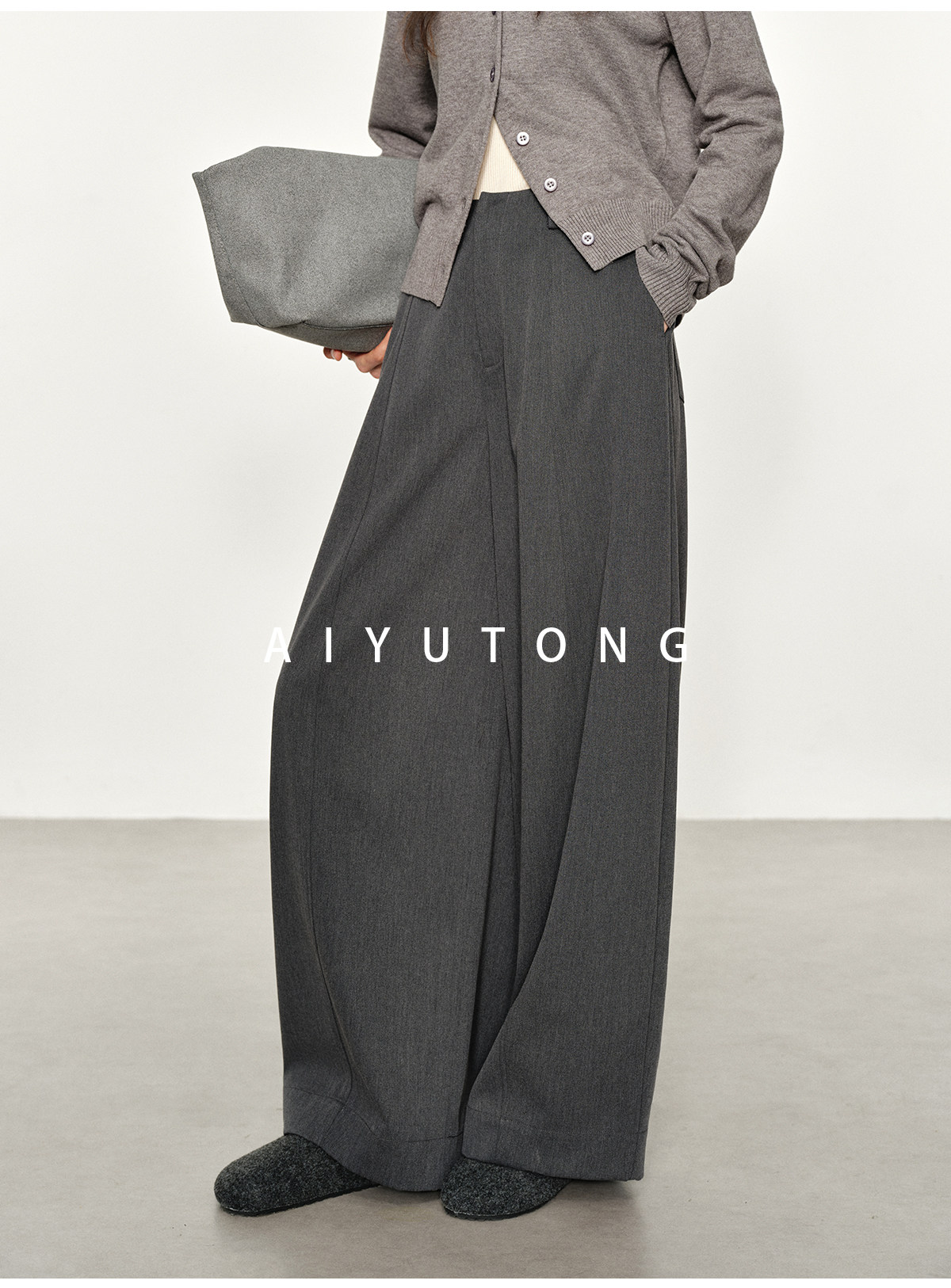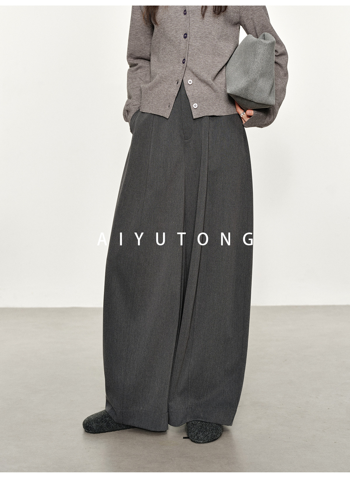 Simple Curved/Autumn and Winter Wool Blended Loose Lazy Drape Curved Balloon Legs Casual Suit Pants for Women