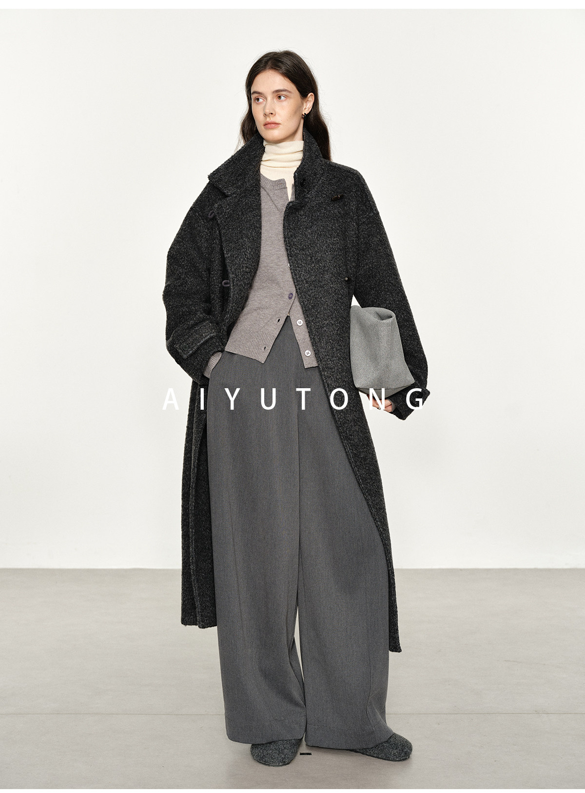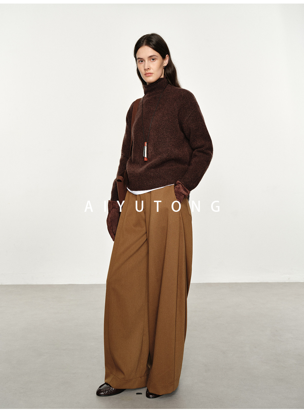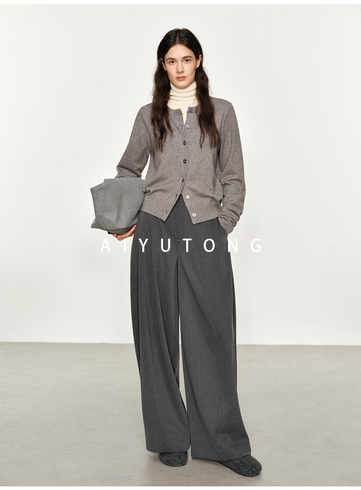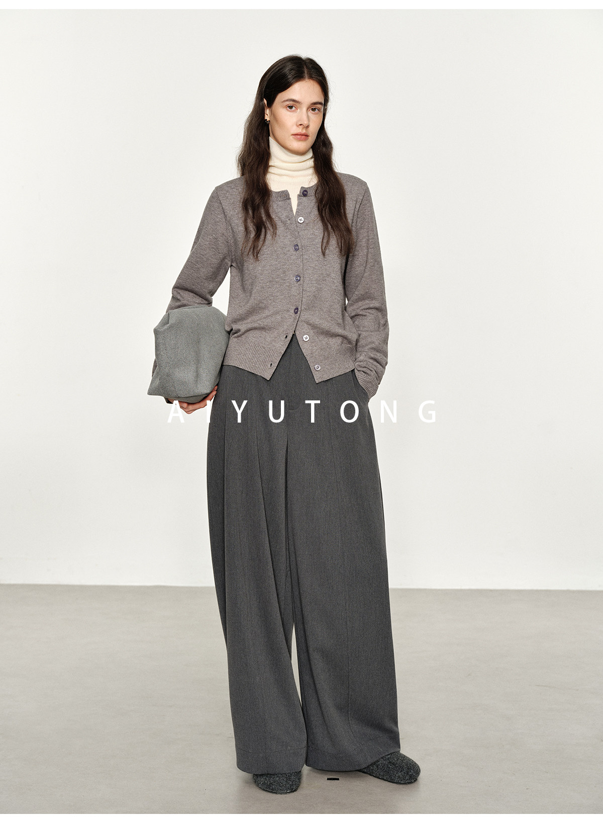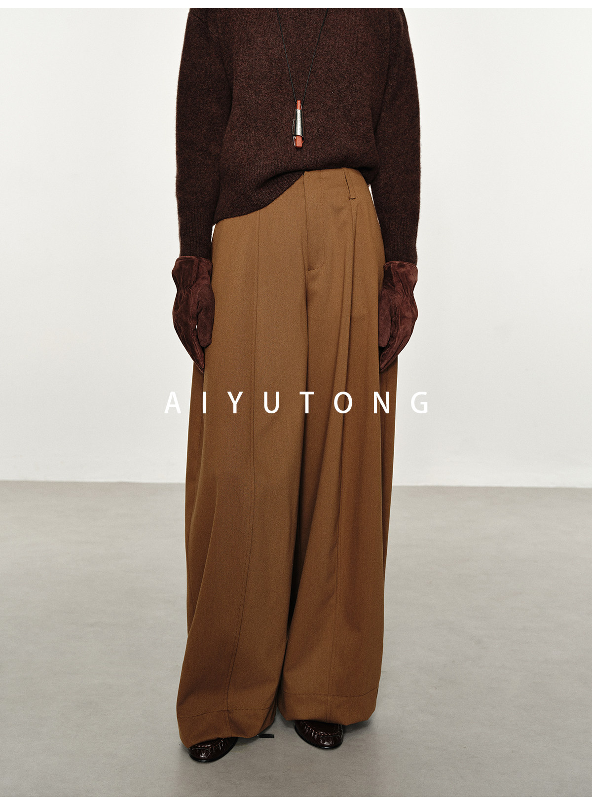 Simple Curved/Autumn and Winter Wool Blended Loose Lazy Drape Curved Balloon Legs Casual Suit Pants for Women