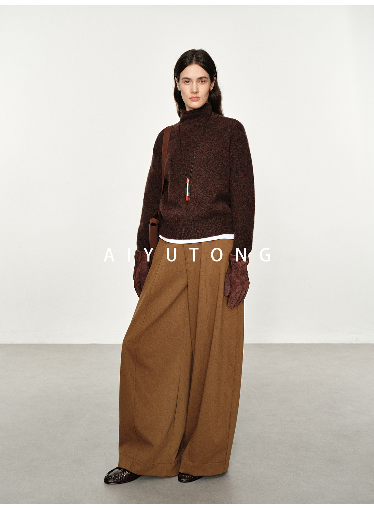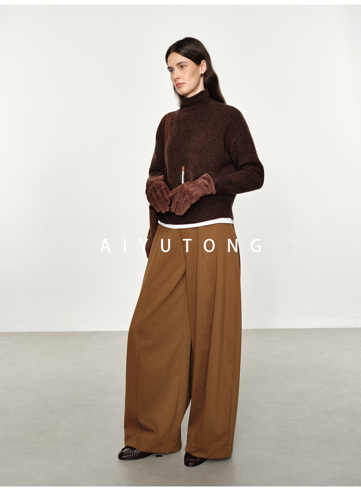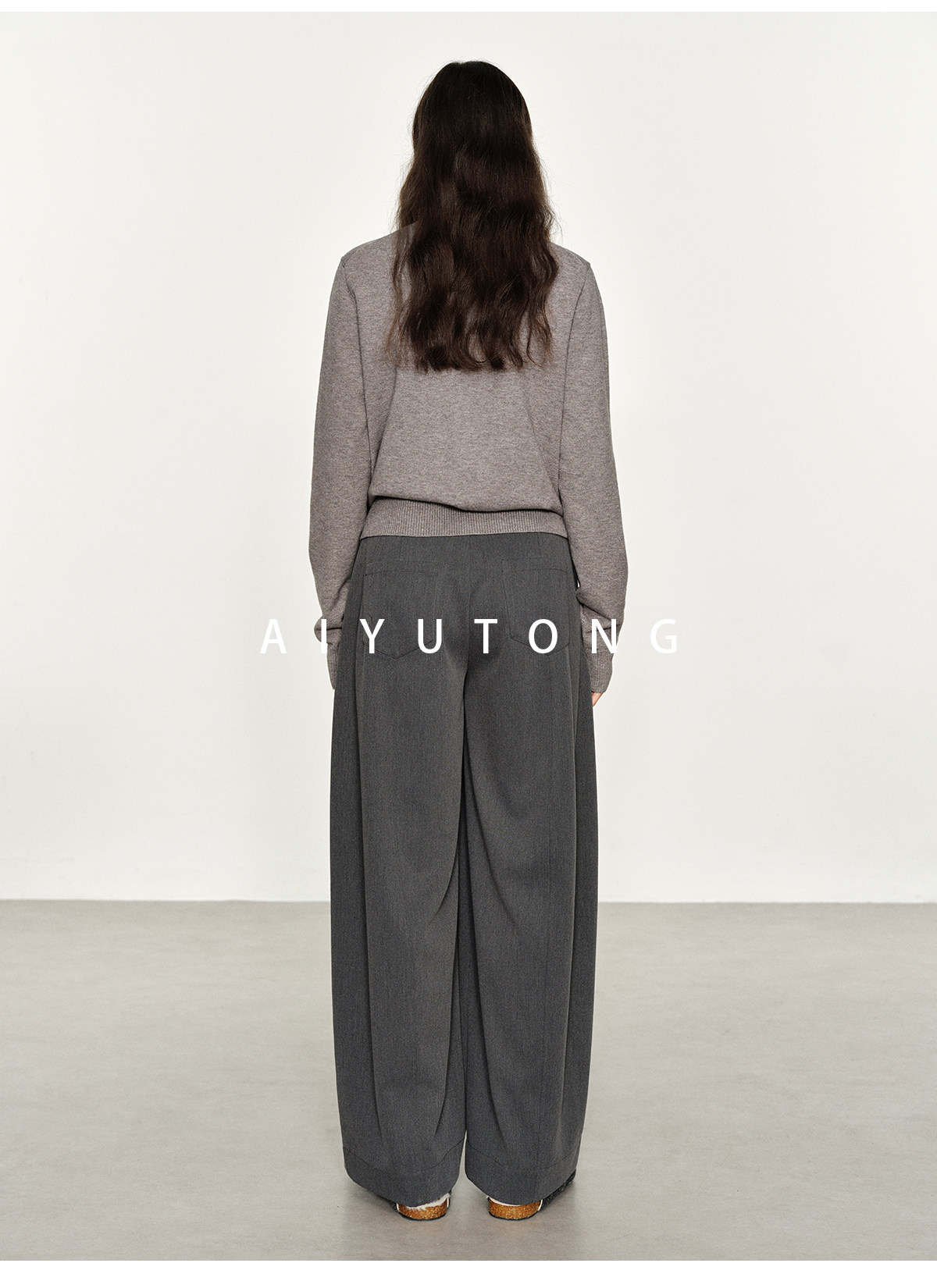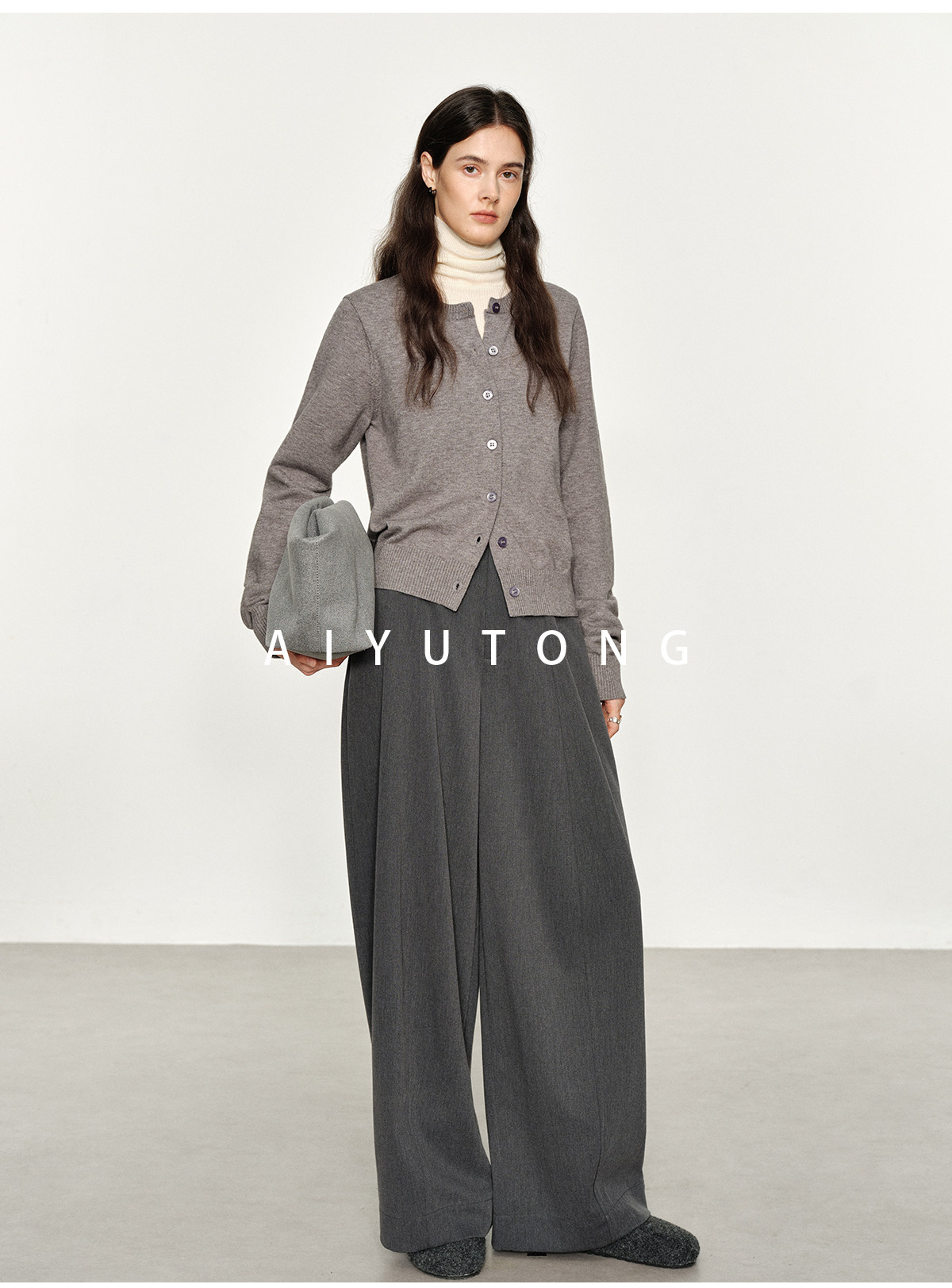 Simple Curved/Autumn and Winter Wool Blended Loose Lazy Drape Curved Balloon Legs Casual Suit Pants for Women