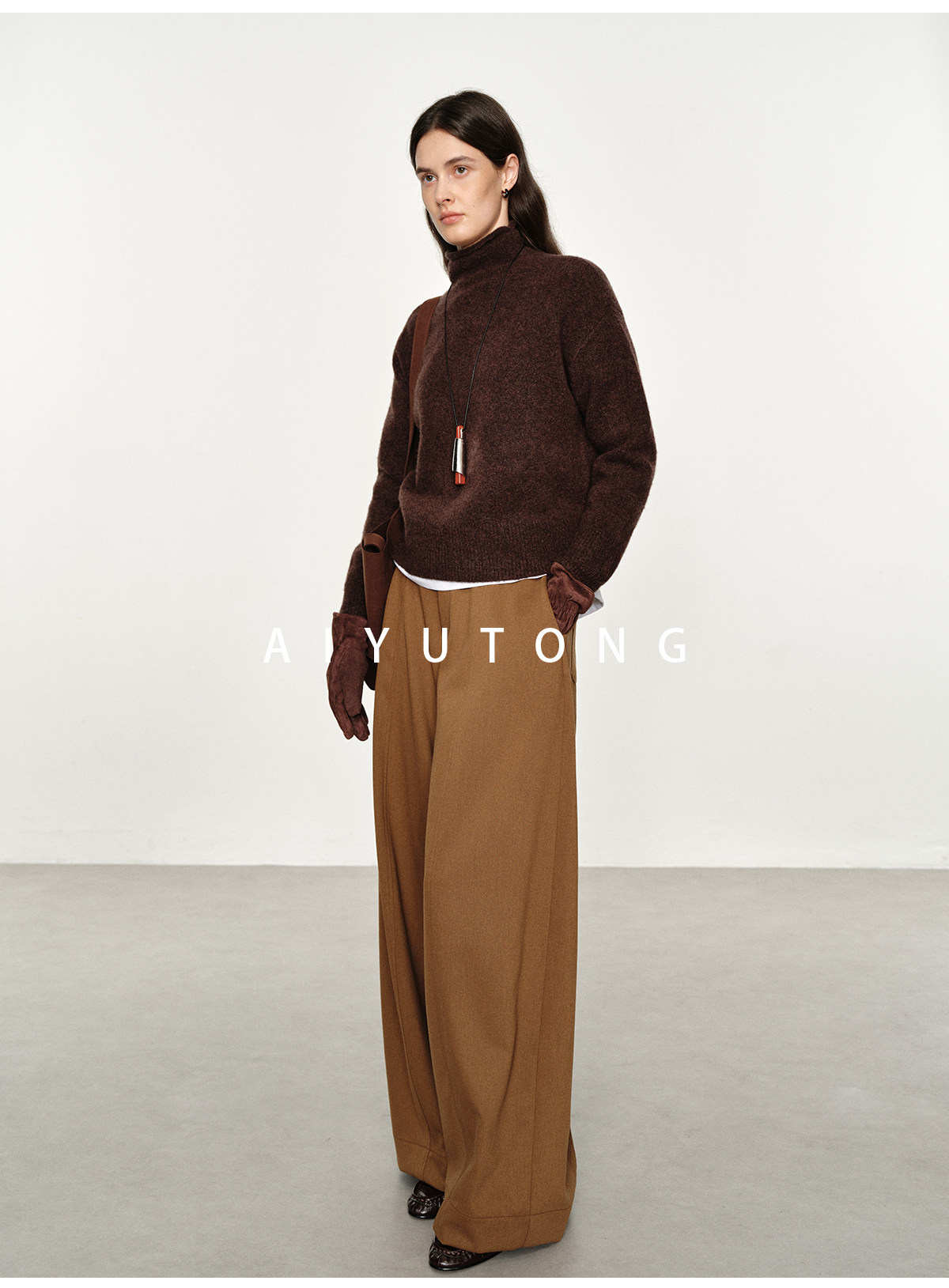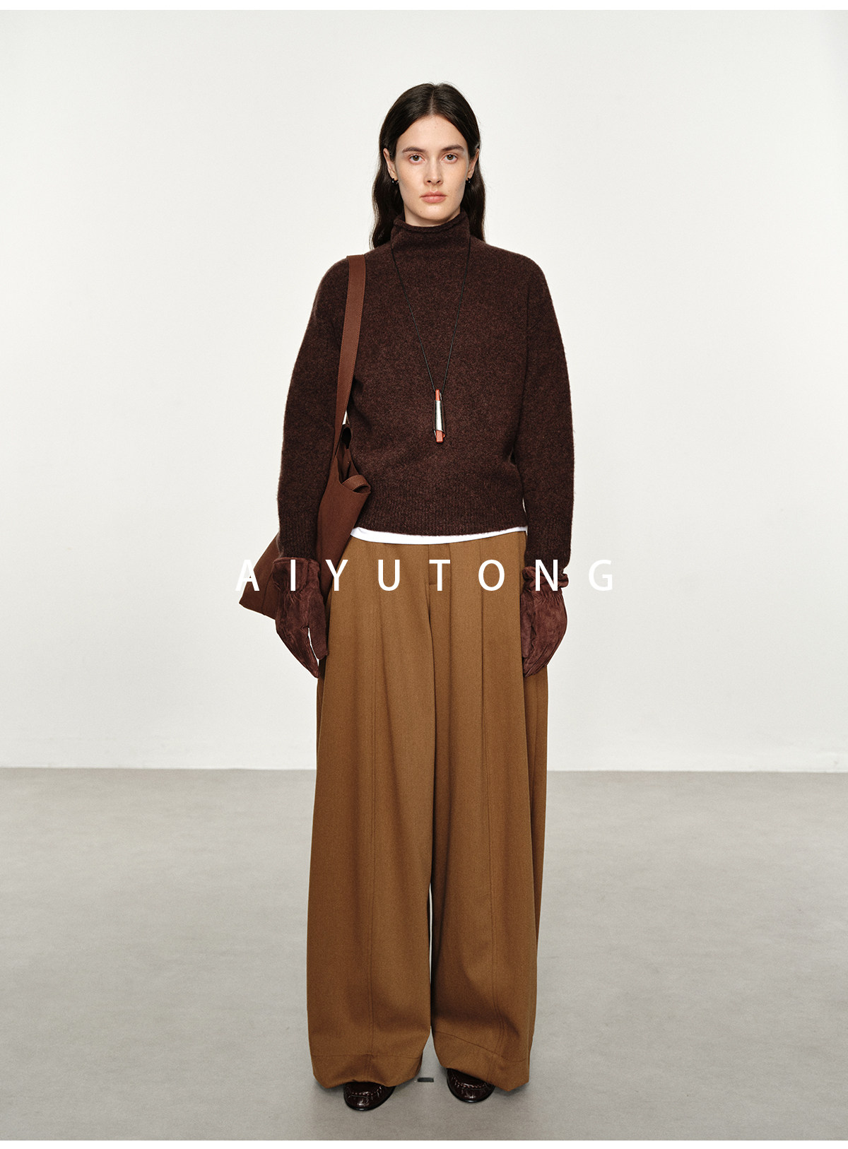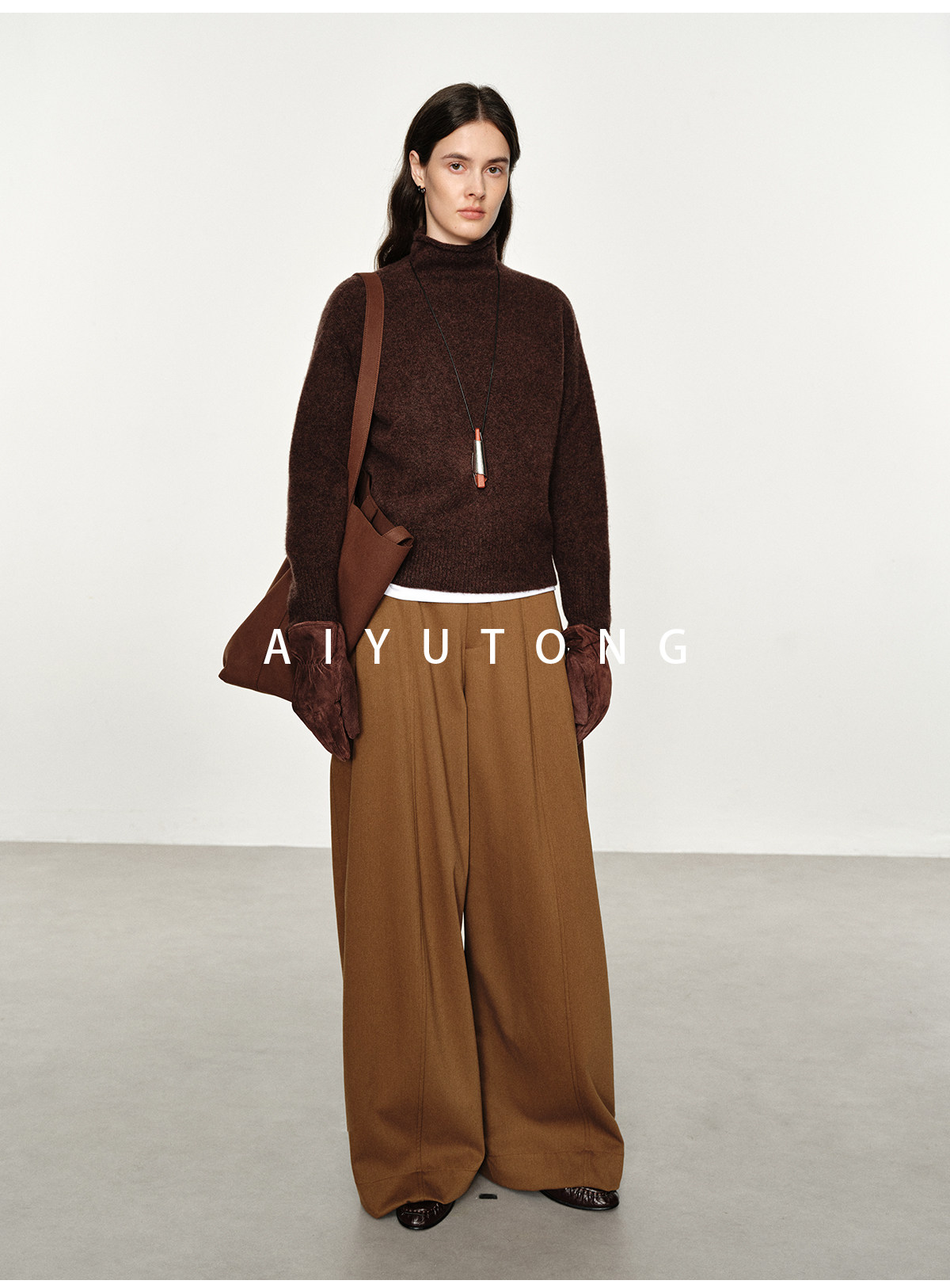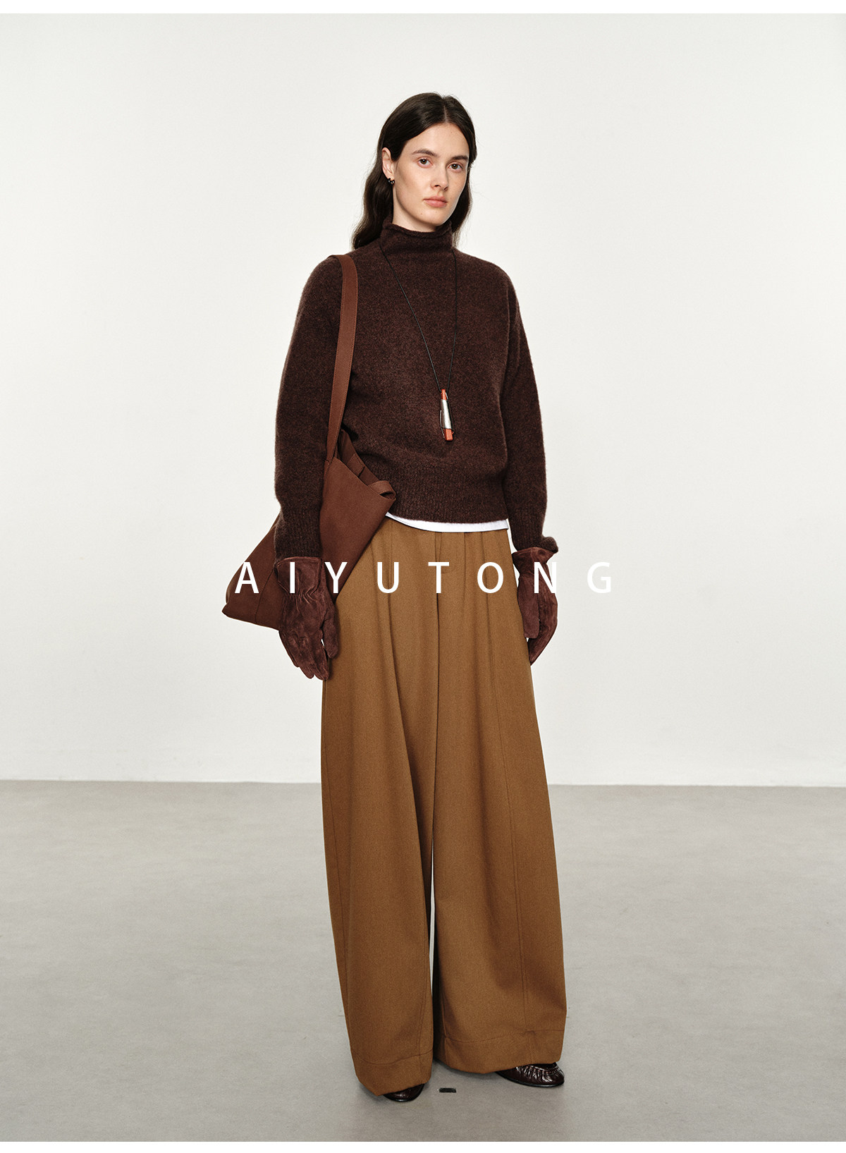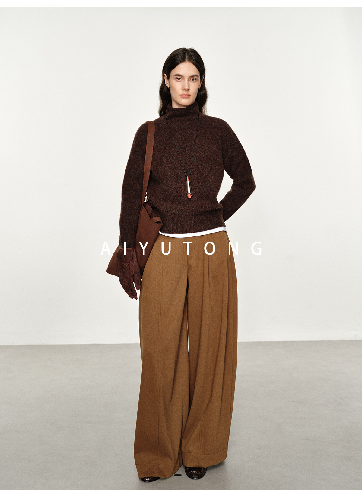 Simple Curved/Autumn and Winter Wool Blended Loose Lazy Drape Curved Balloon Legs Casual Suit Pants for Women