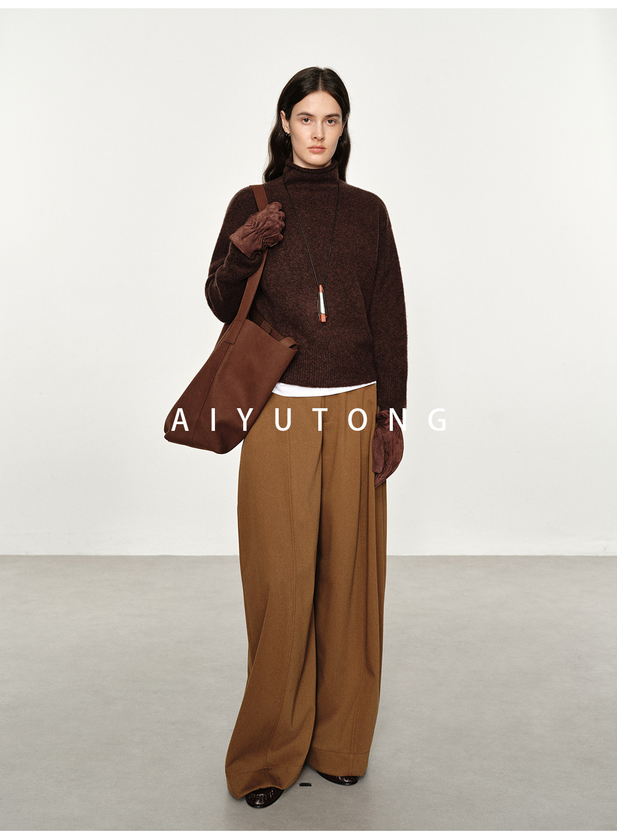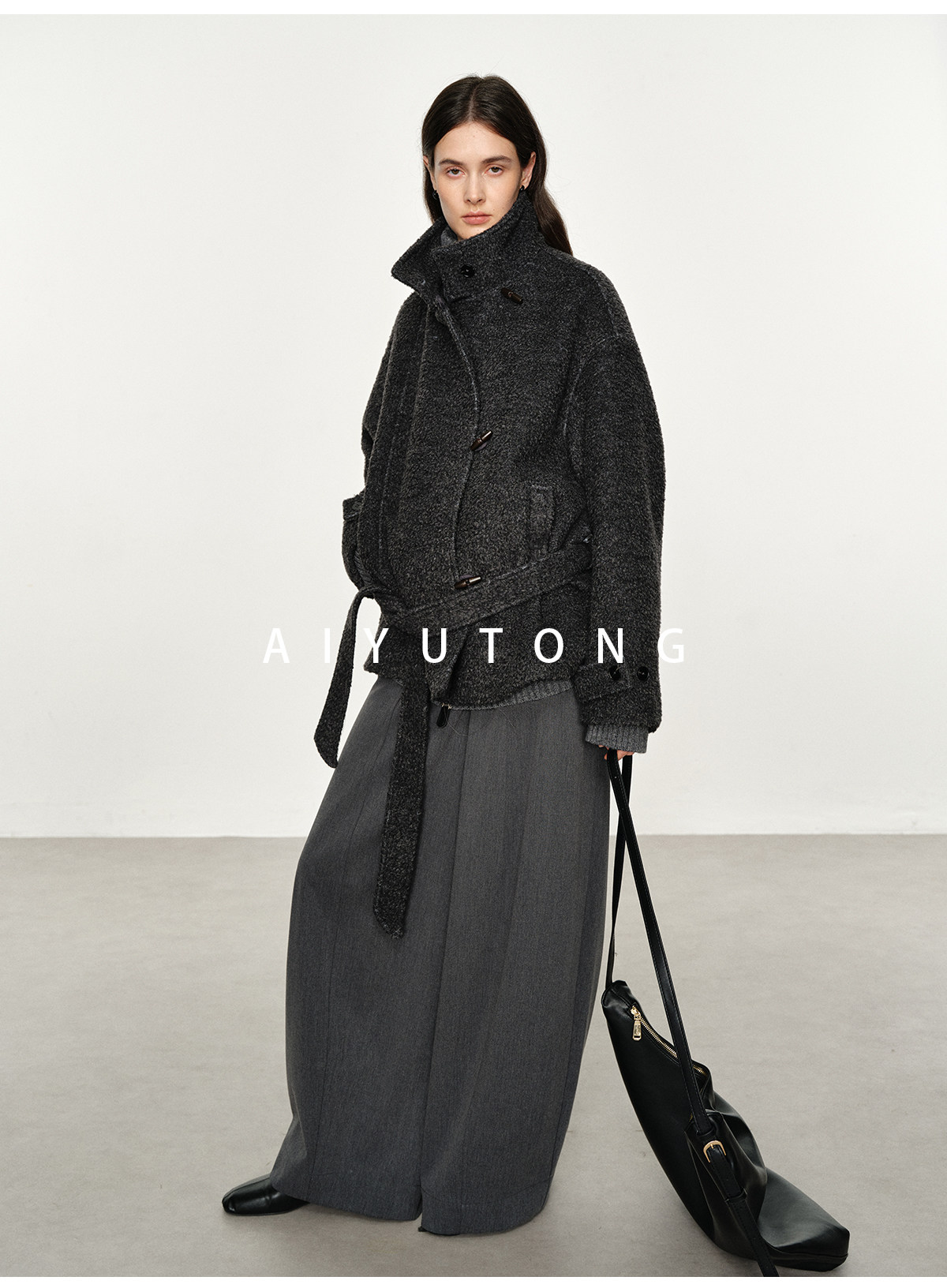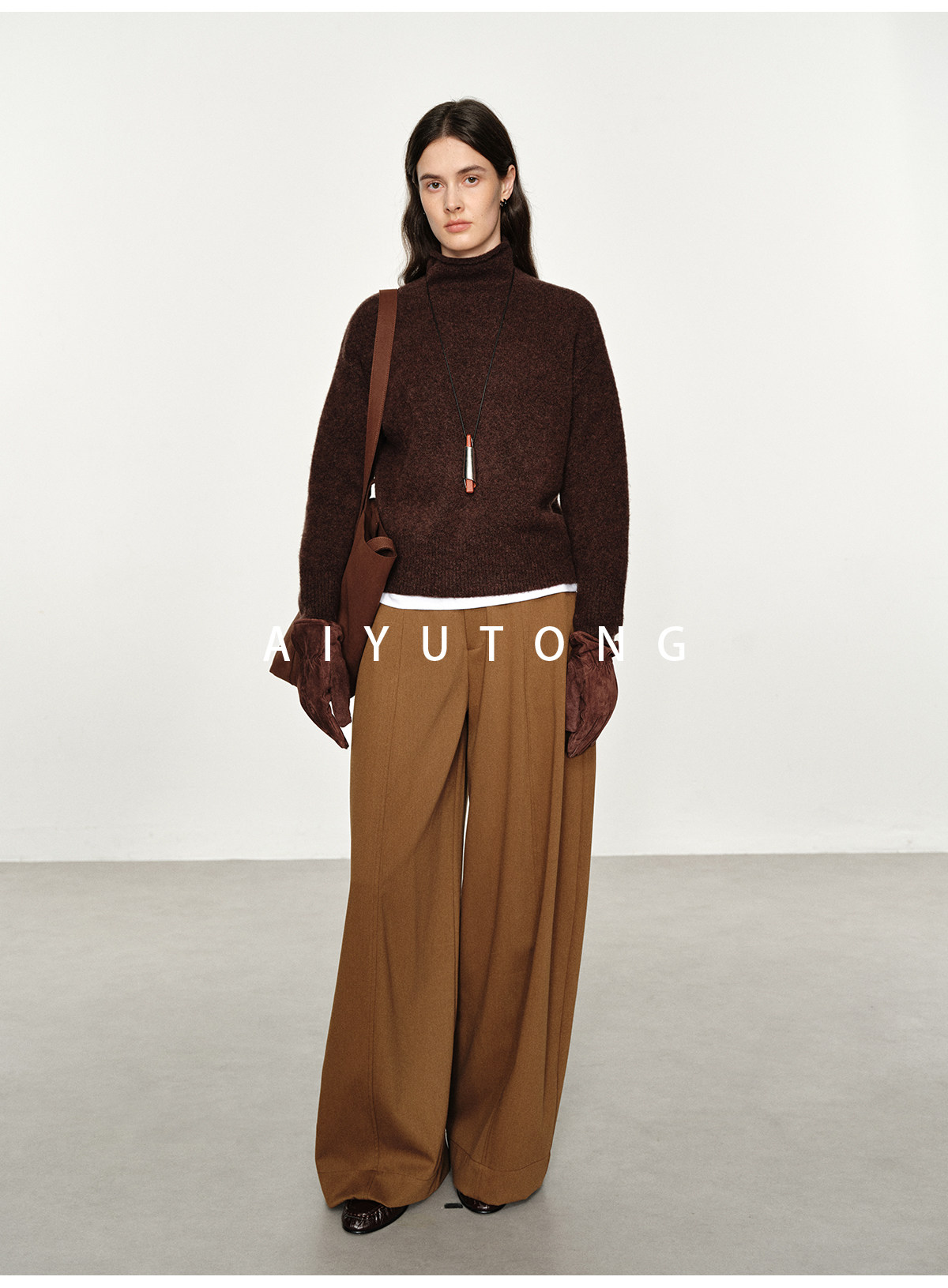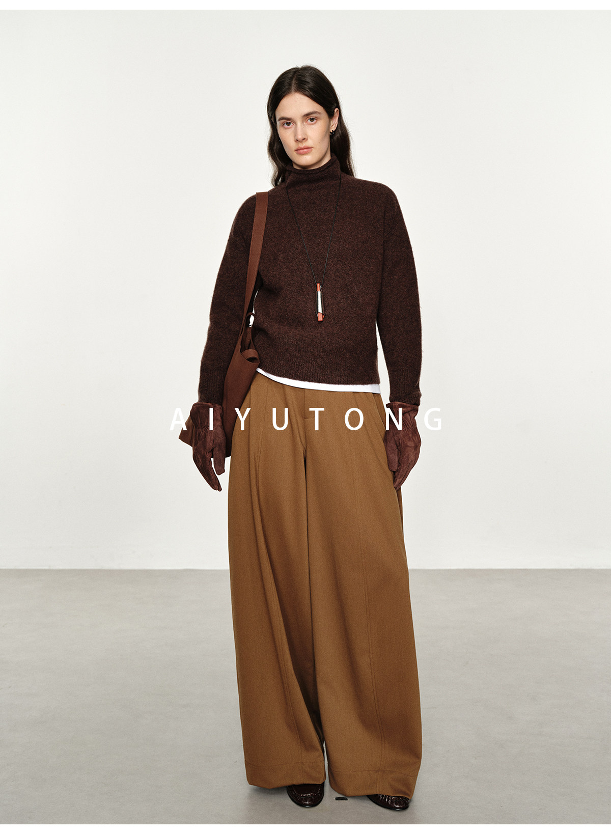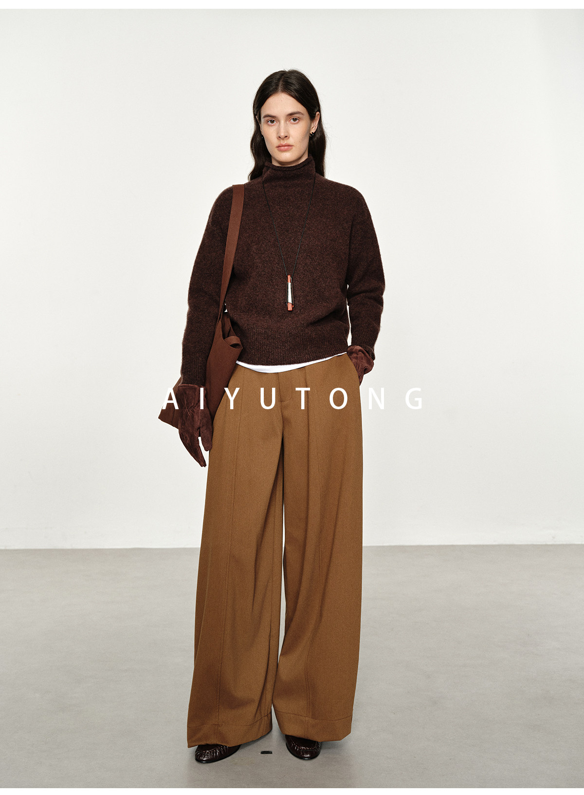 Simple Curved/Autumn and Winter Wool Blended Loose Lazy Drape Curved Balloon Legs Casual Suit Pants for Women