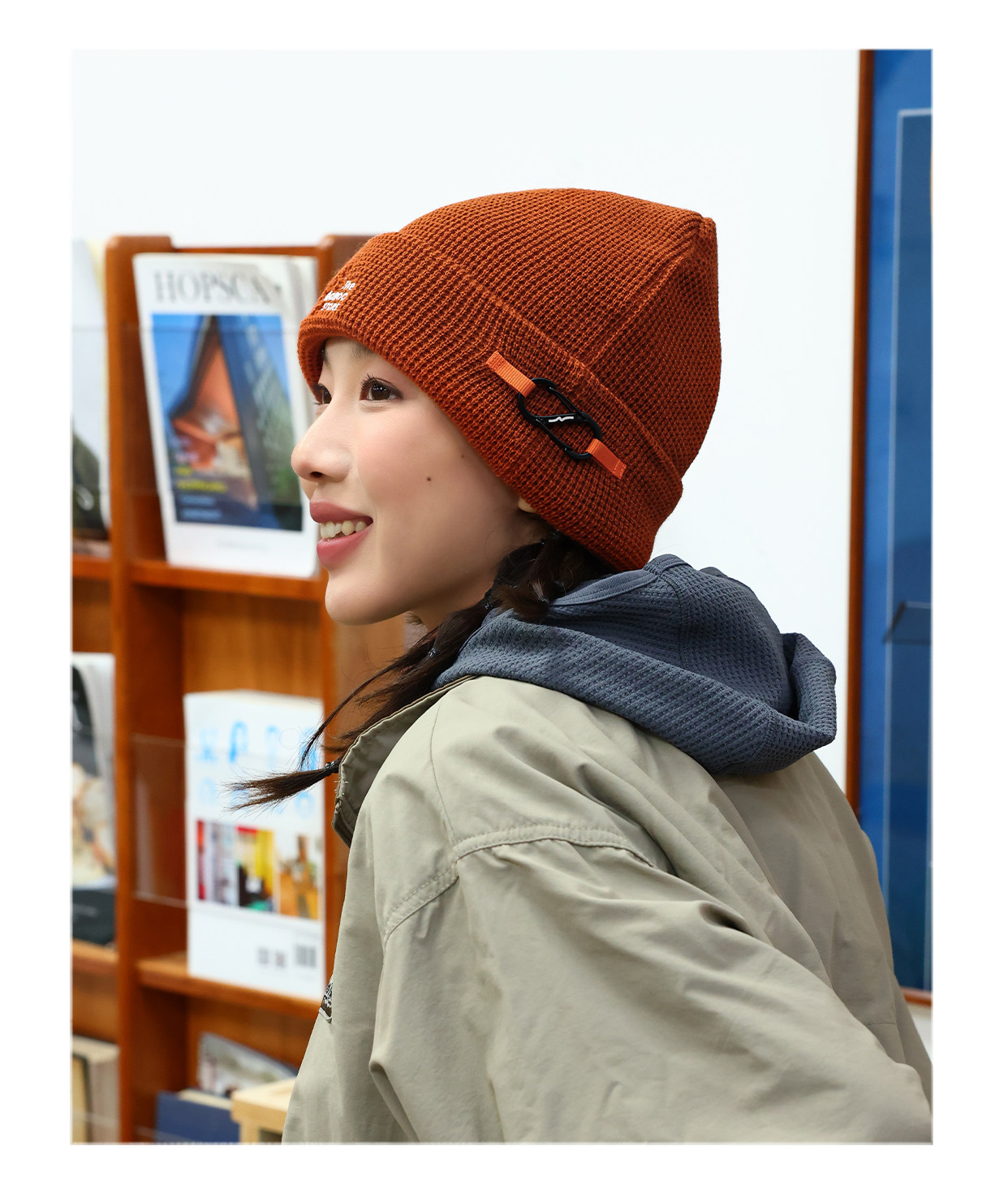 THE HOBOO original functional embroidered knitted hat for women, waffle autumn and winter warm woolen hat for men, cold hat