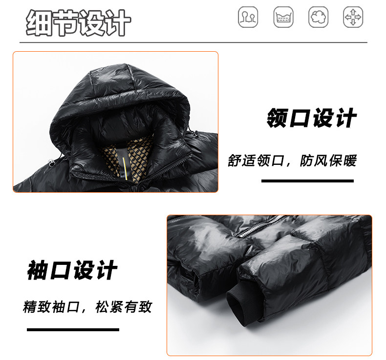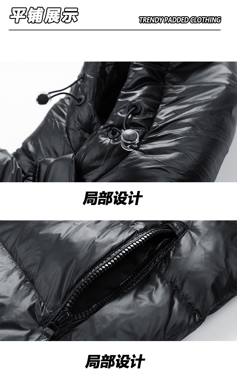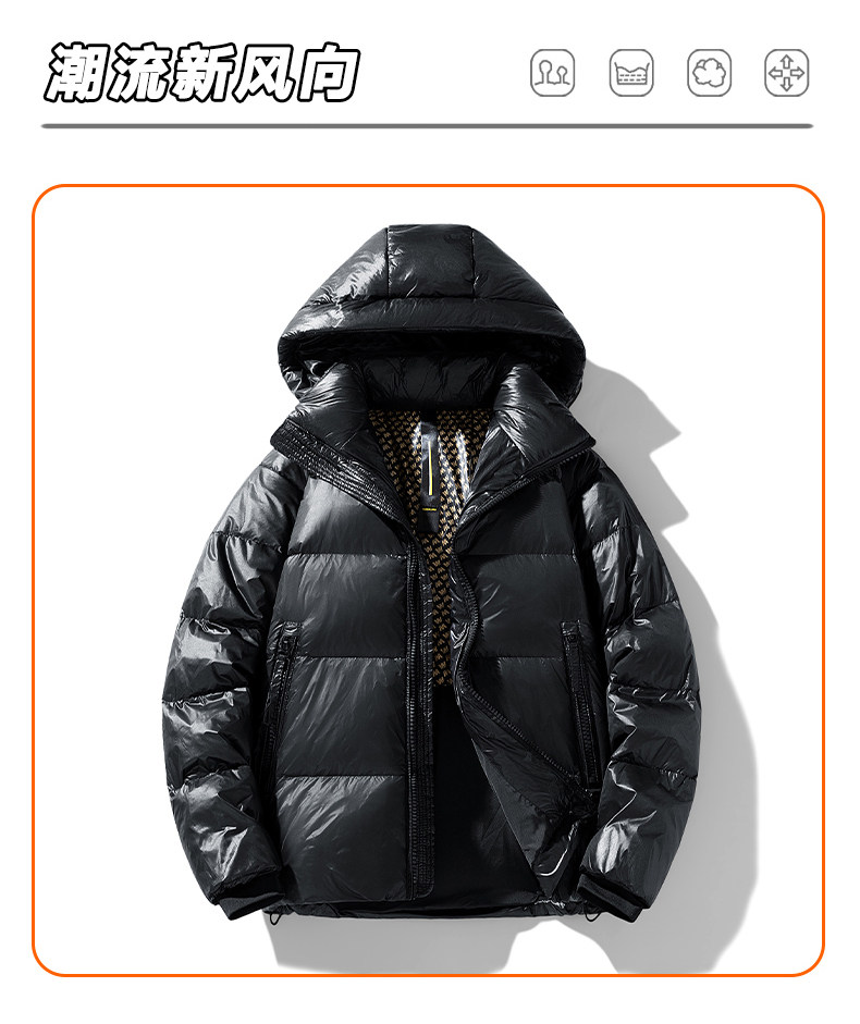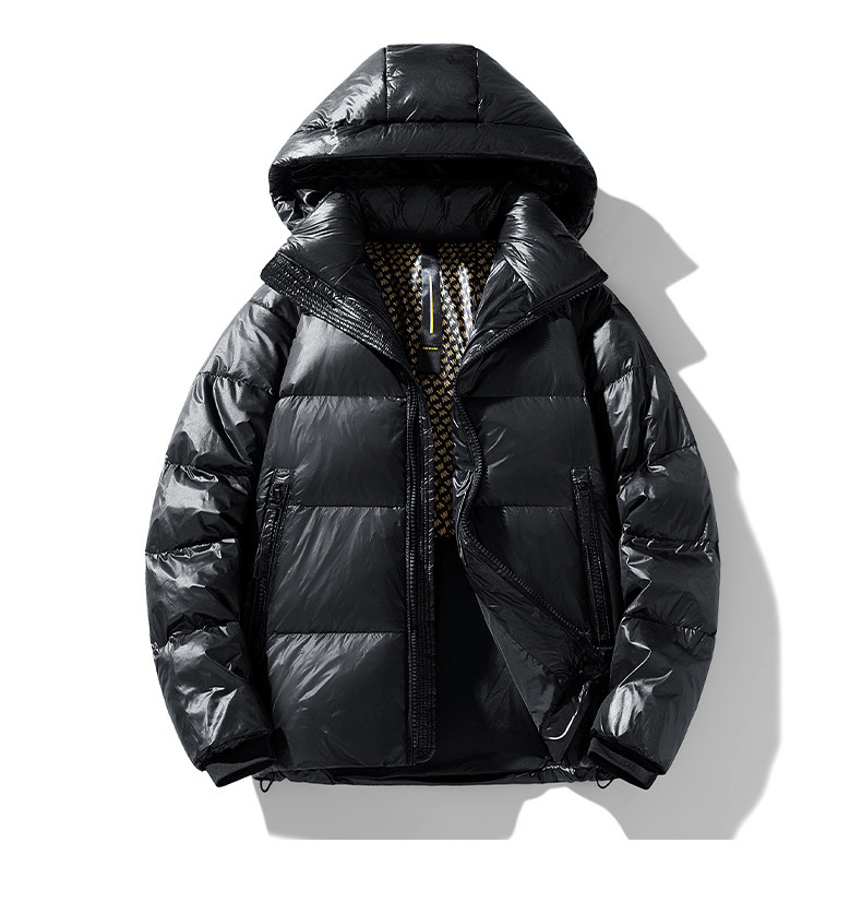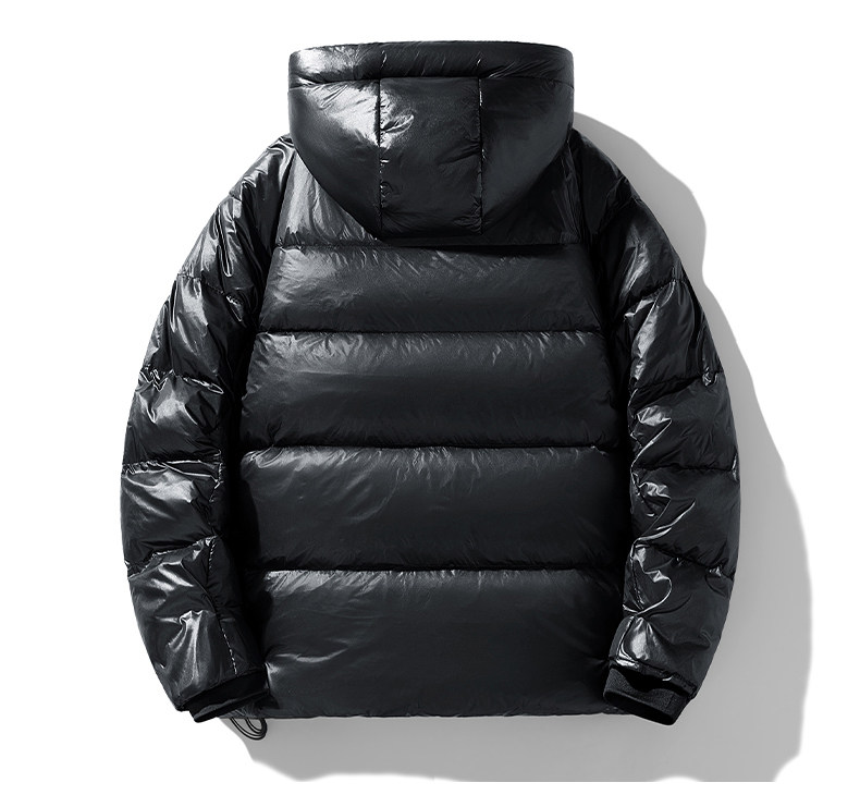 WASSUP DOZEN trendy black gold hooded shiny down jacket for men and women, winter warm loose coat for couples