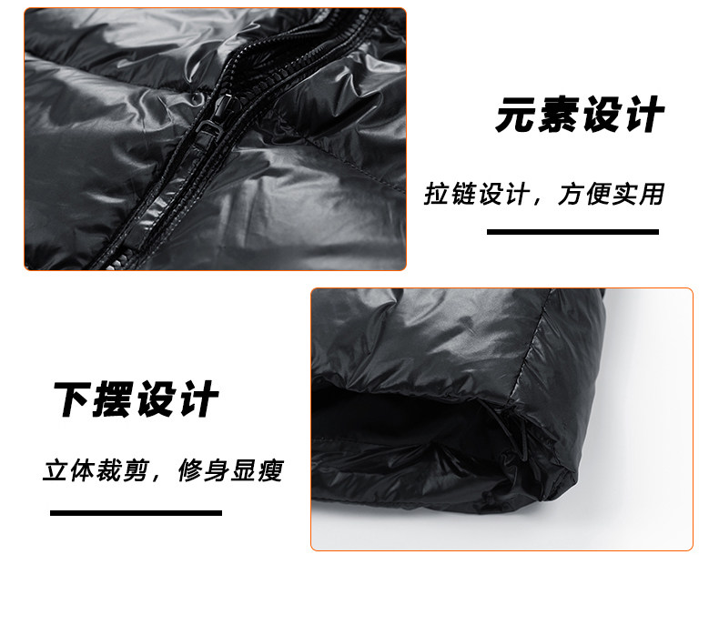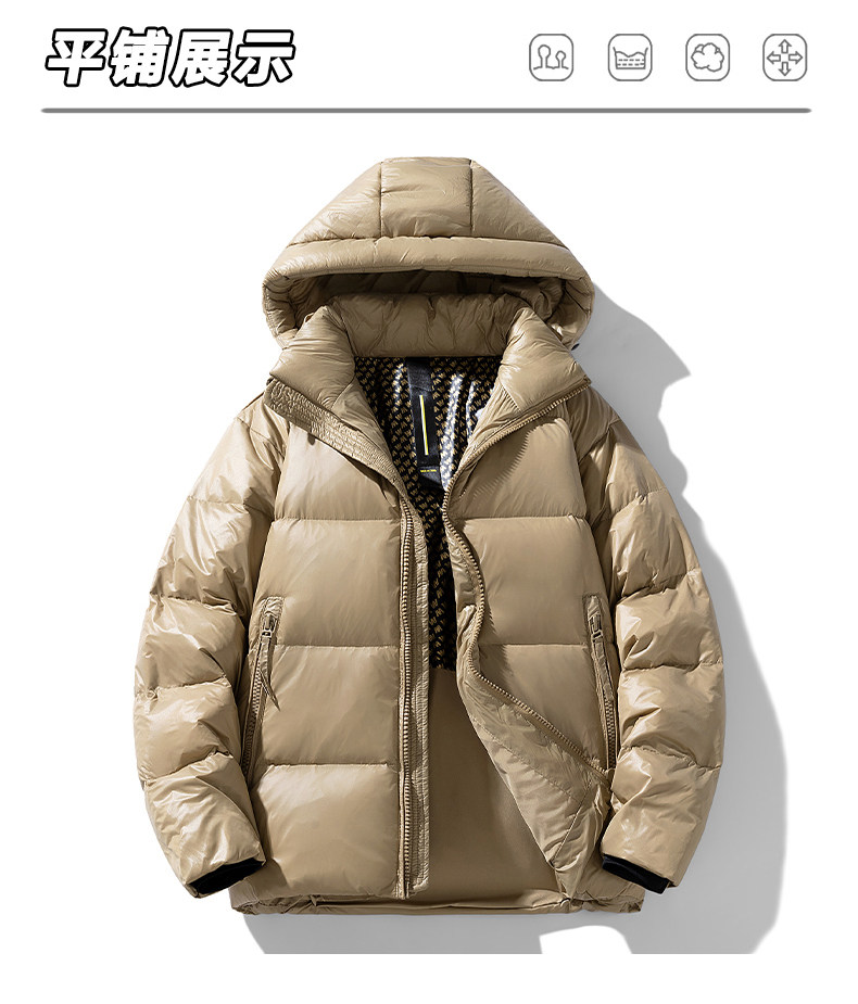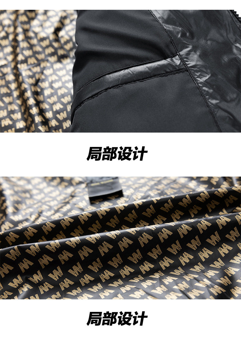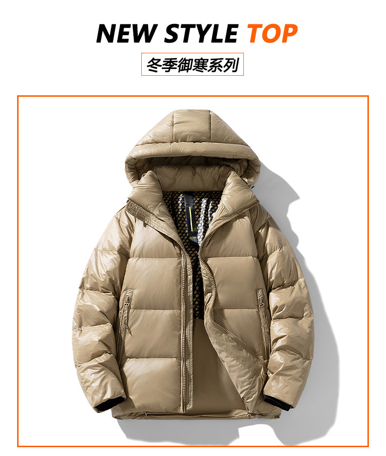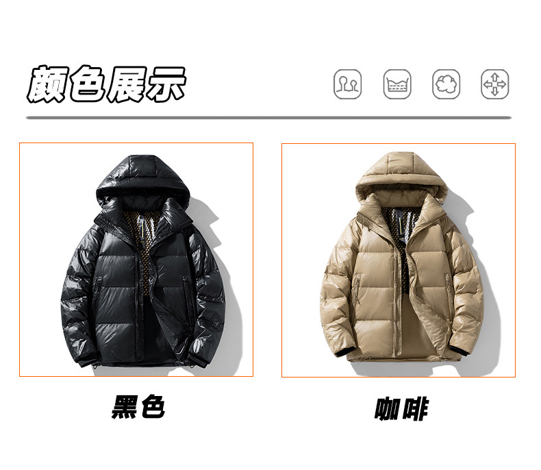 WASSUP DOZEN trendy black gold hooded shiny down jacket for men and women, winter warm loose coat for couples