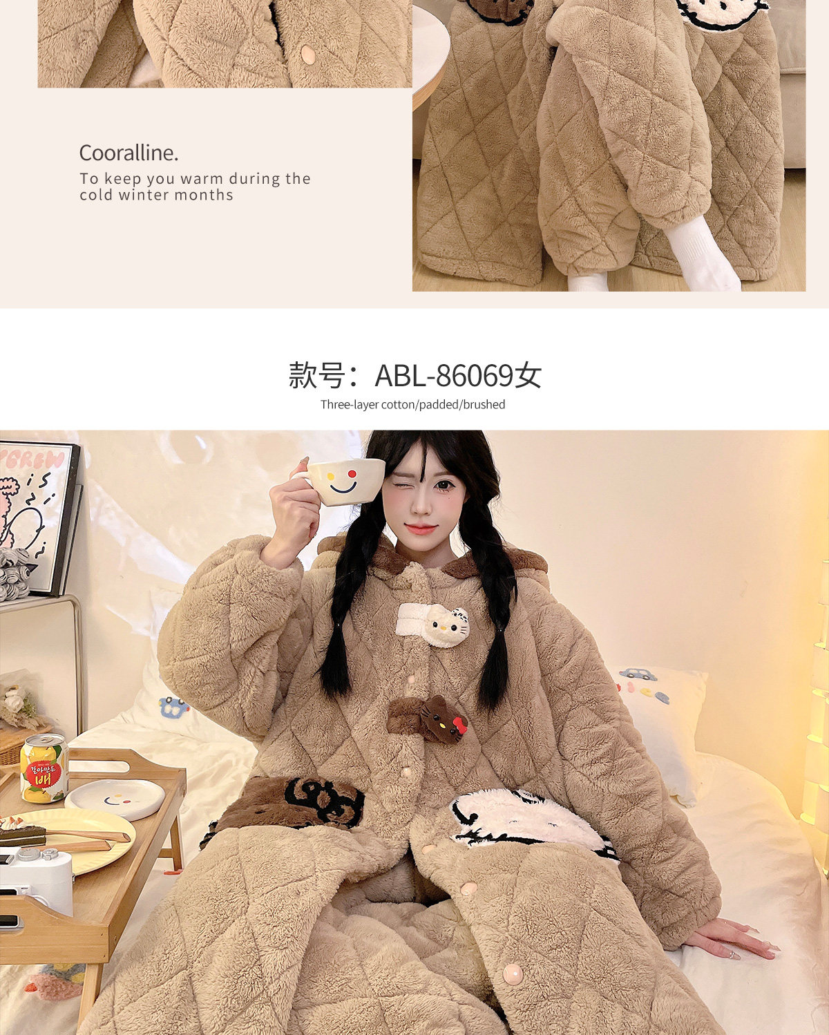 2026 New Winter Coral Fleece Pajamas for Women, Three-Layer Quilted, Fleece-Lined, Thickened Set, Plus-Size Loungewear
