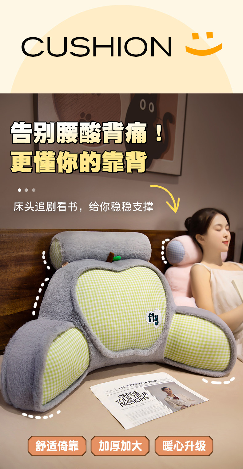 Dopamine Headboard Cushion Soft Pillow Backrest Sofa Children's Dormitory Reading Female Bed Pillow Breathable Summer
