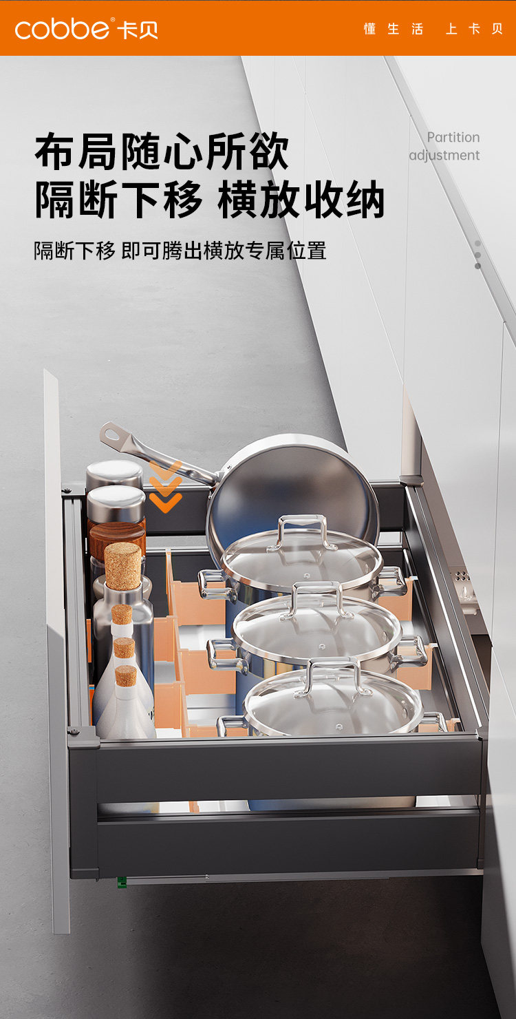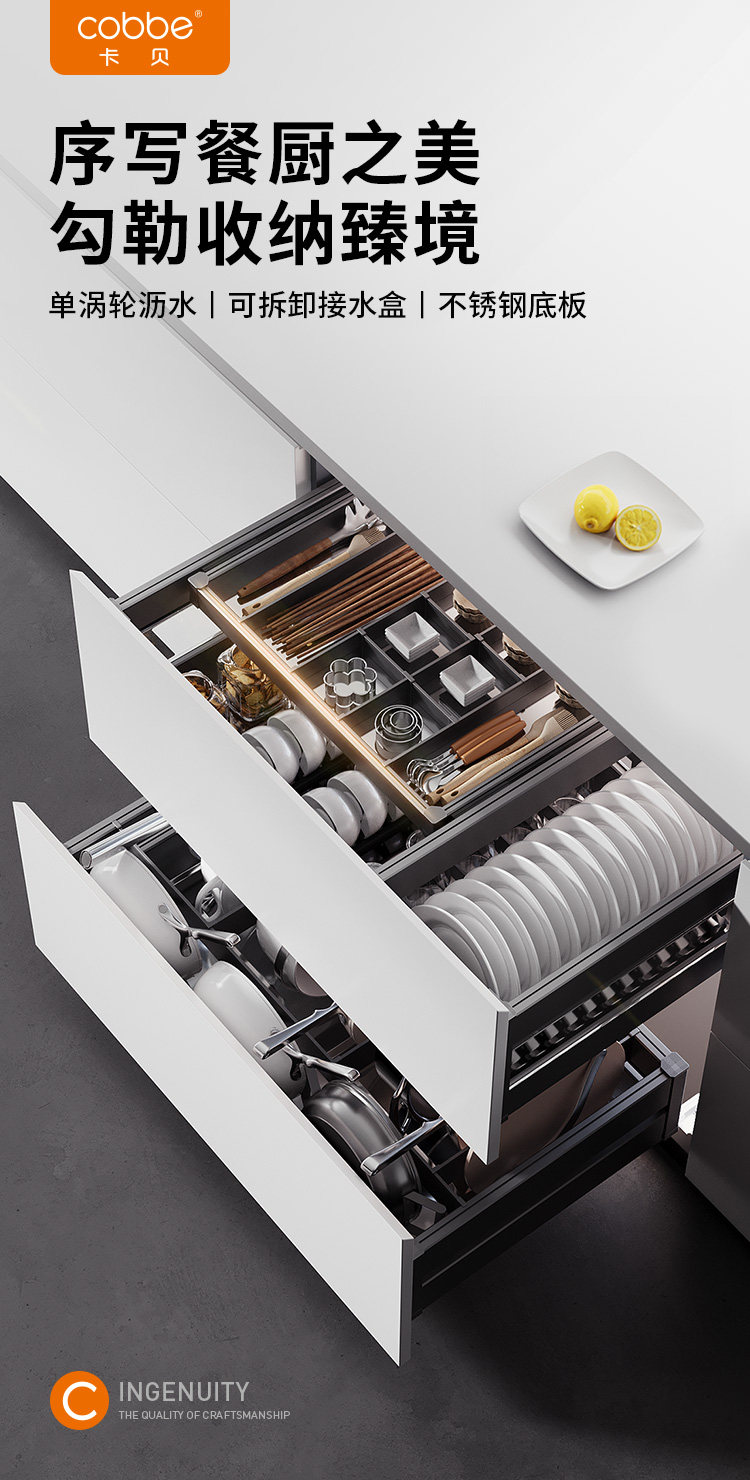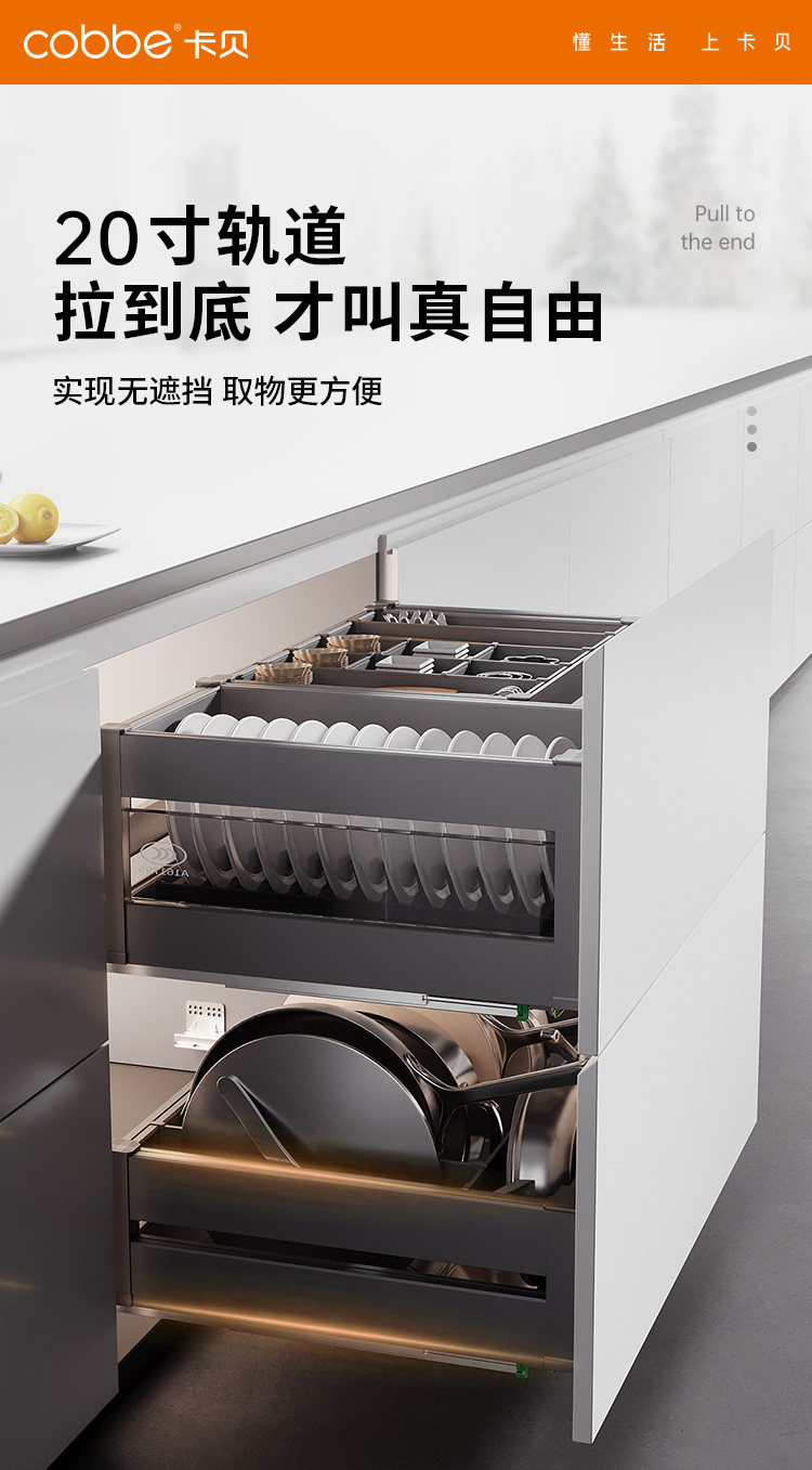 New Kabei kitchen cabinet pull basket double drawer type cupboard 304 stainless steel sinking drain bowl basket kitchen cabinet rack
