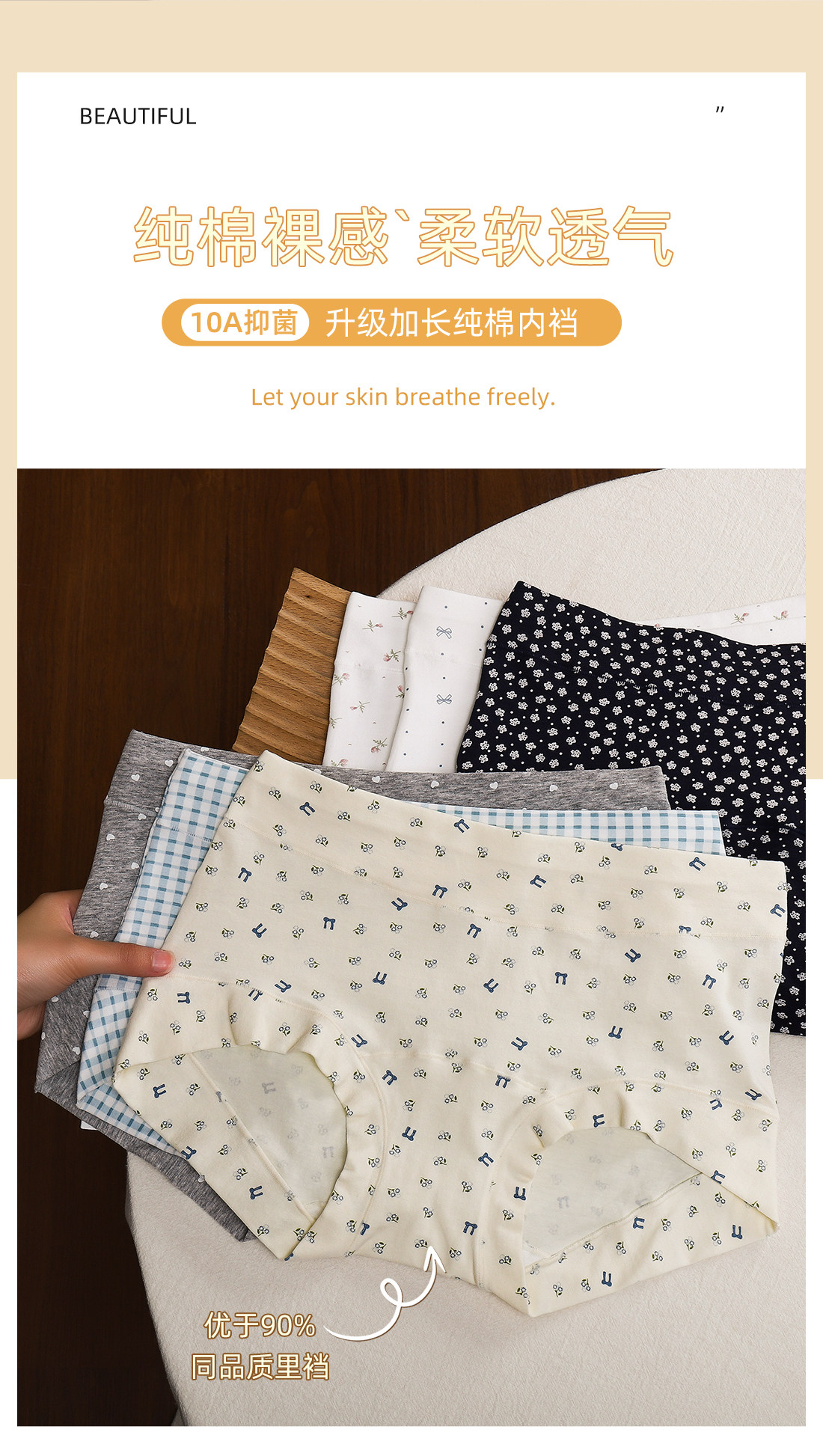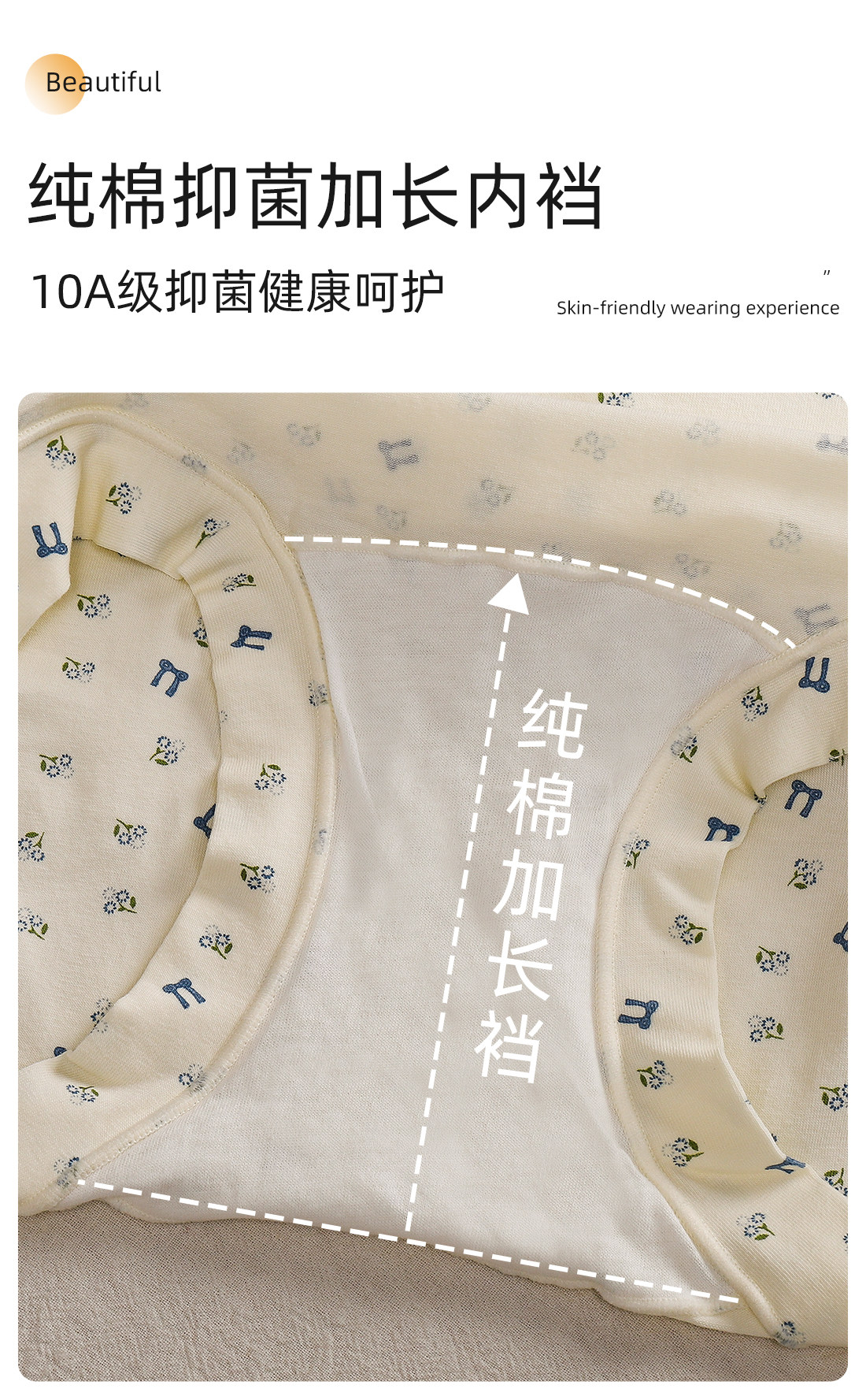 Women's Underwear, Pure Cotton 10A Antibacterial, Extended Crotch, No Pinching, No Chafing, All-Cotton Briefs