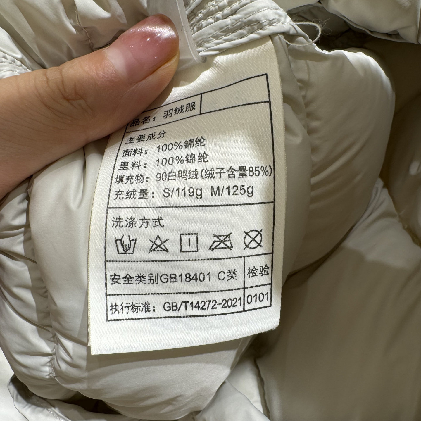 Fleece filling amount (g) 119-125g