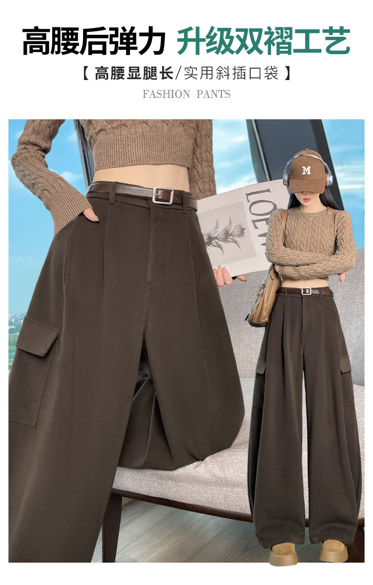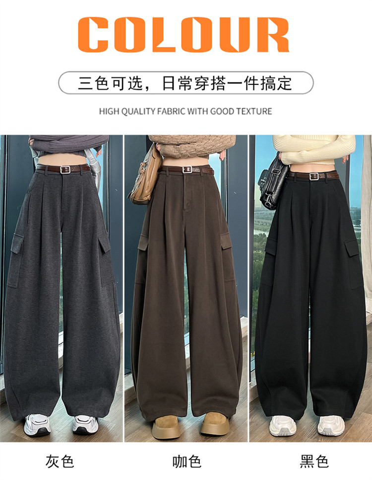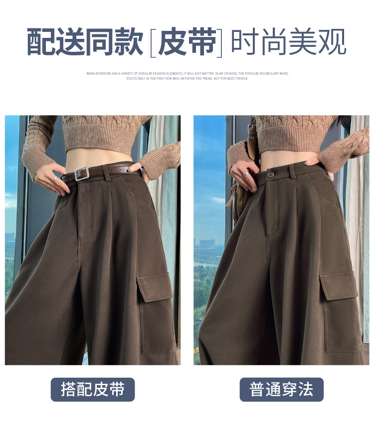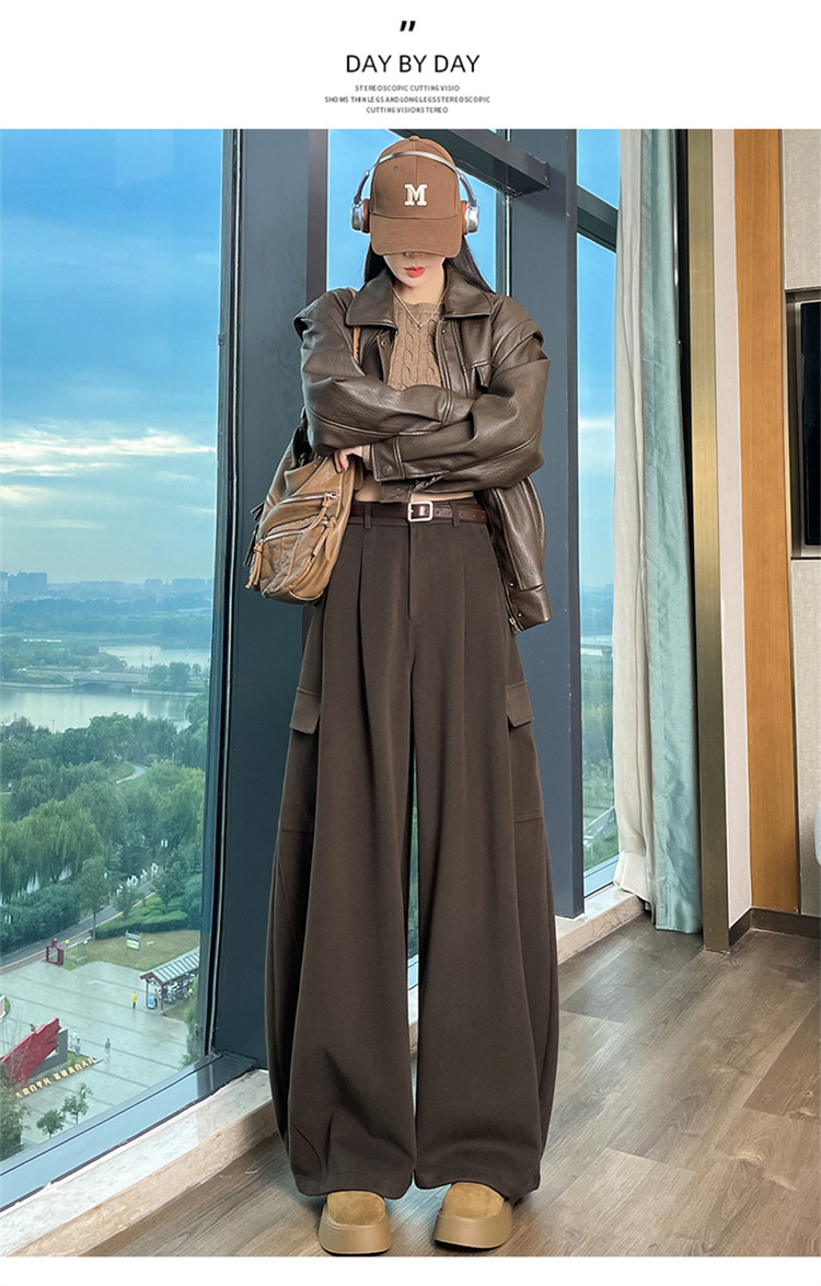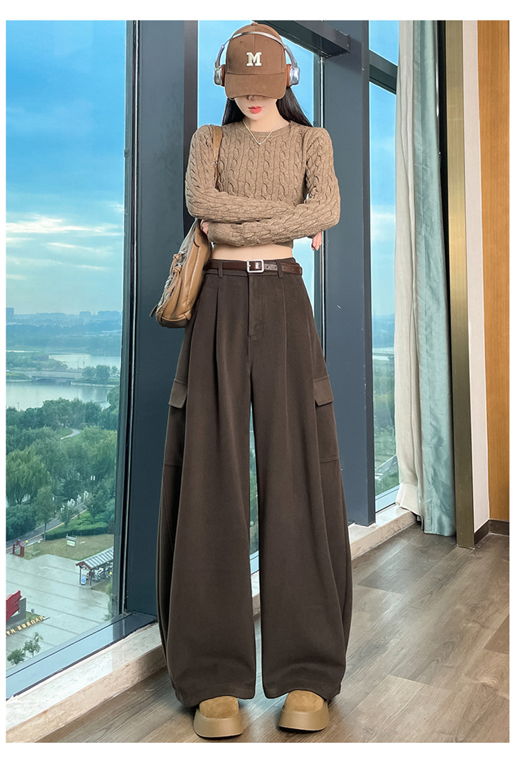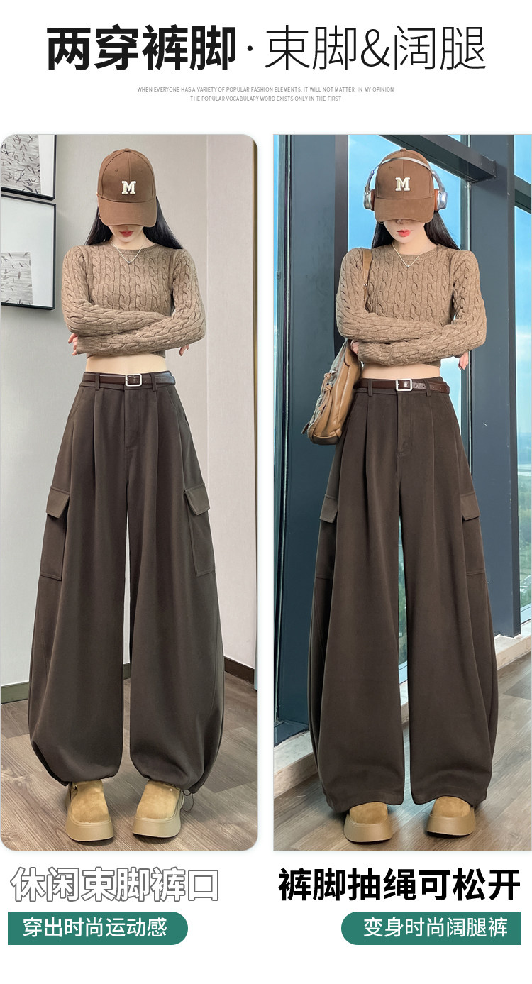 Brown wool scimitar overalls for women in autumn and winter plus velvet and thickened loose wide-leg banana pants two-wear leggings sweatpants