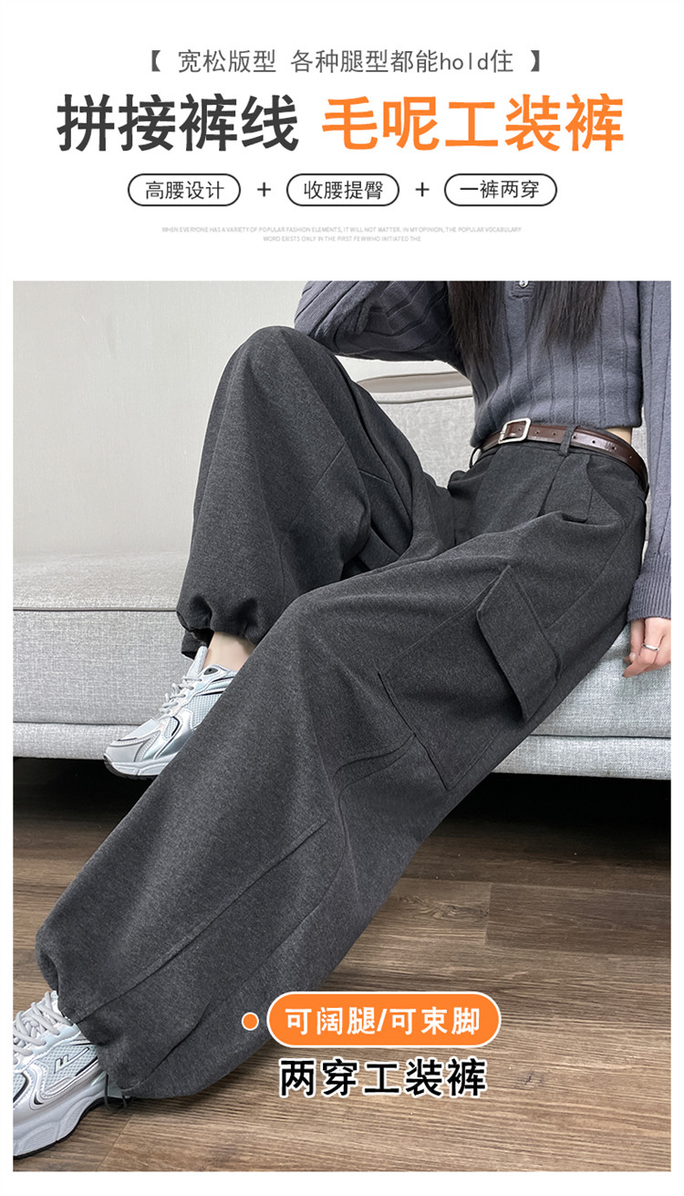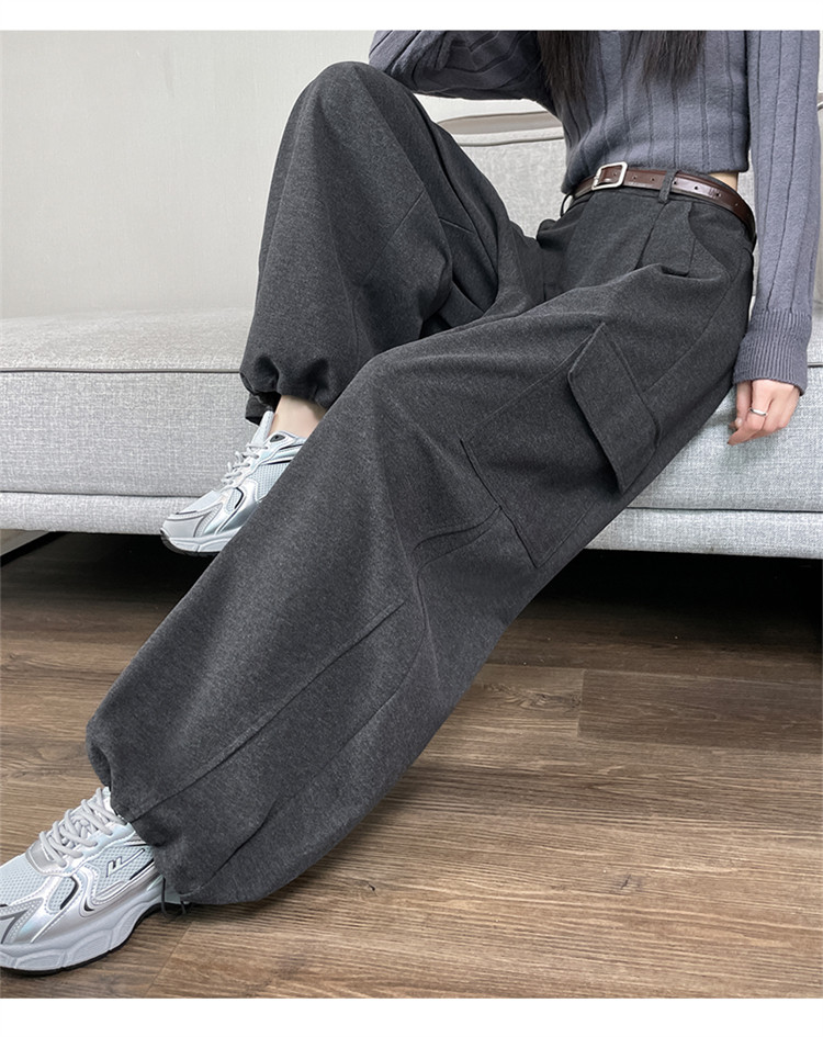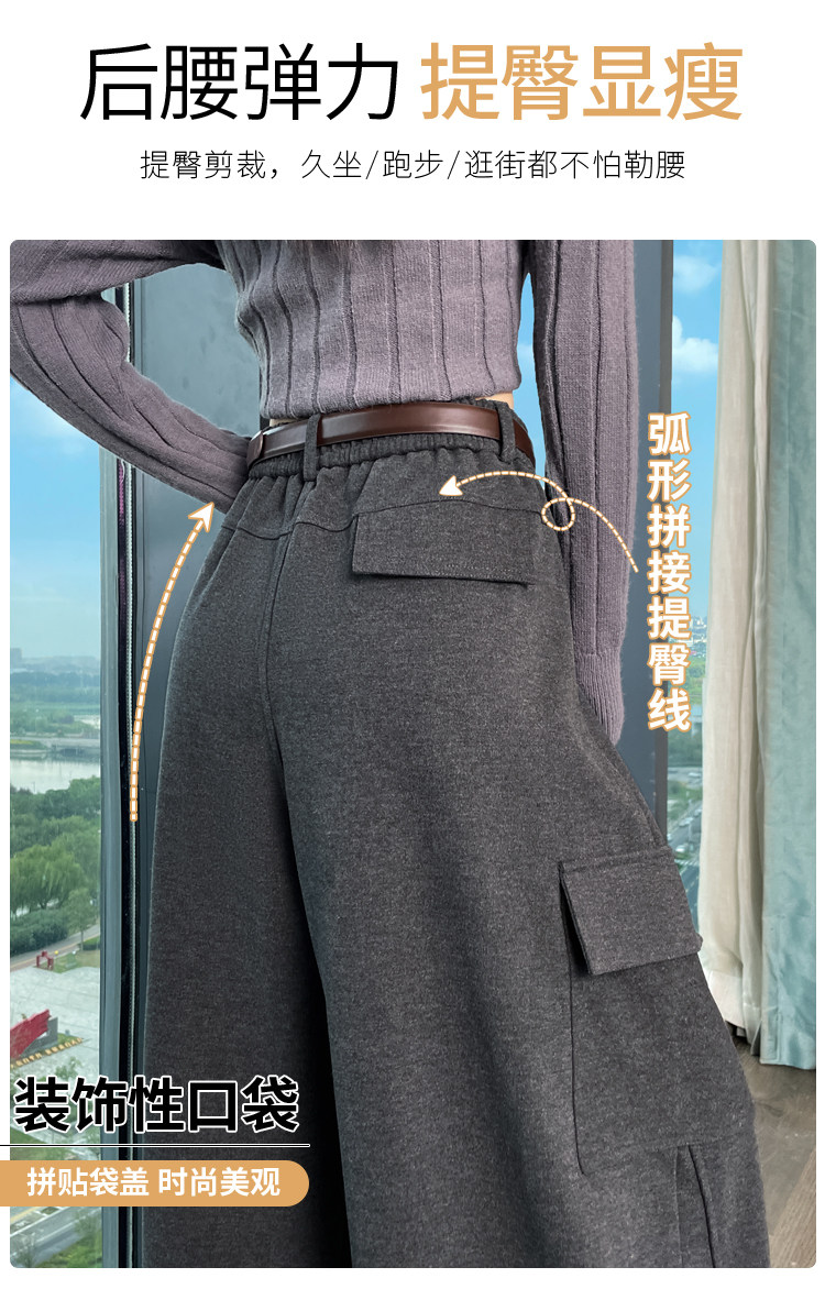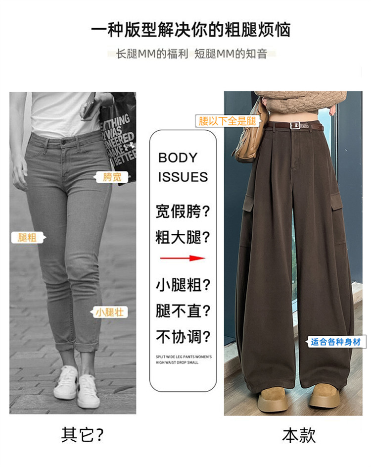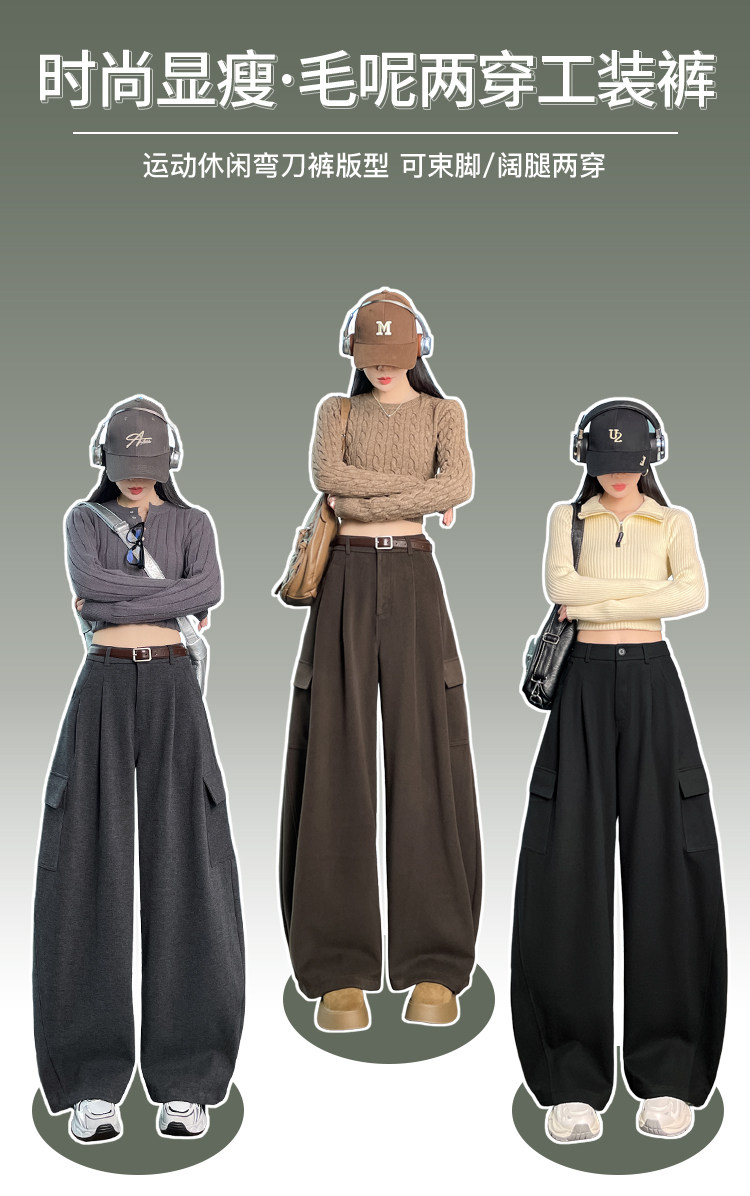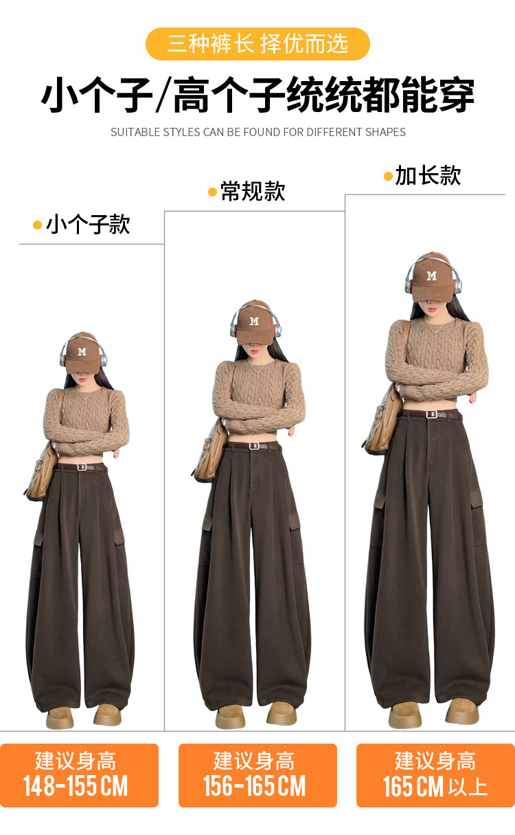 Brown wool scimitar overalls for women in autumn and winter plus velvet and thickened loose wide-leg banana pants two-wear leggings sweatpants