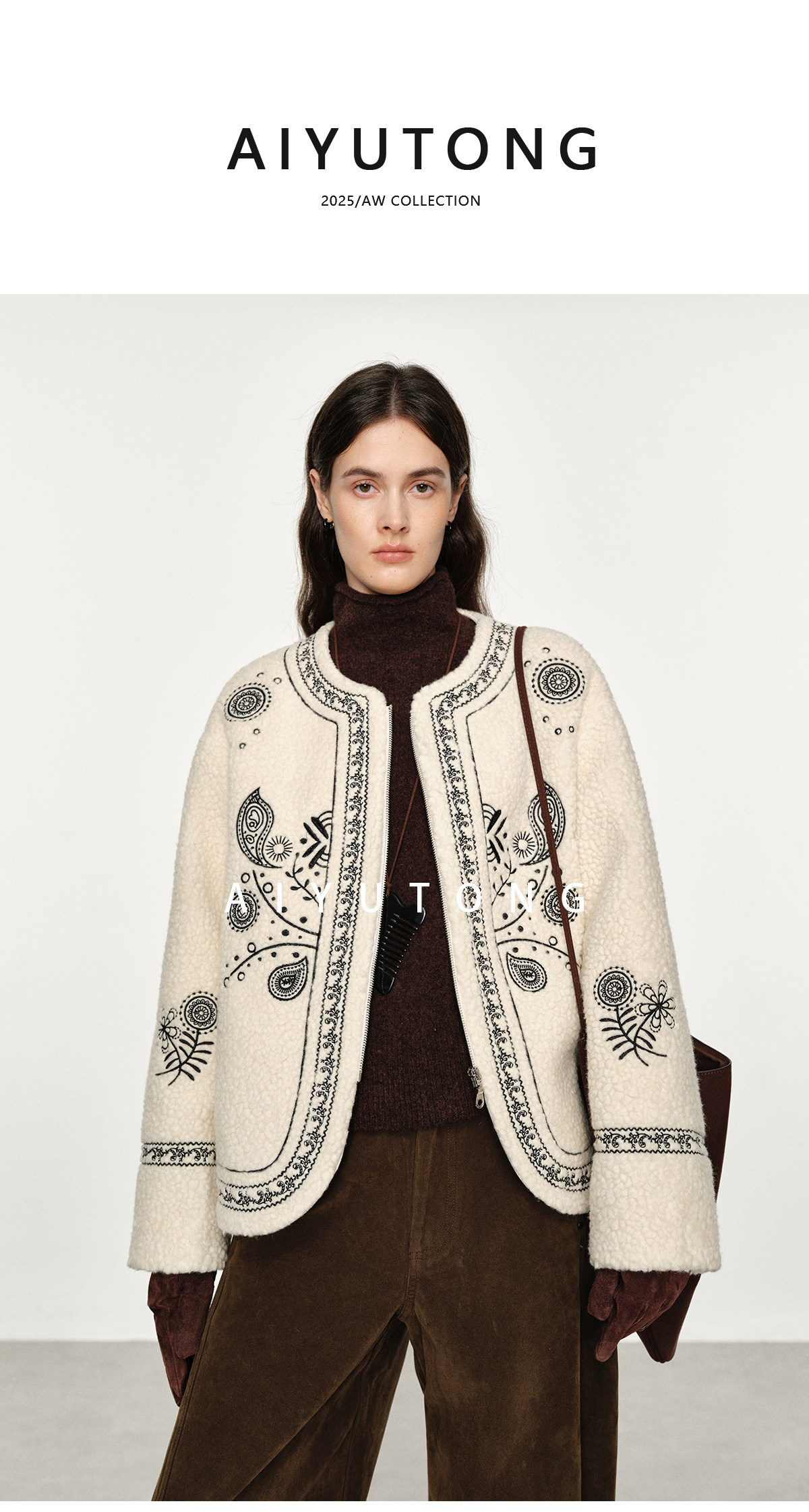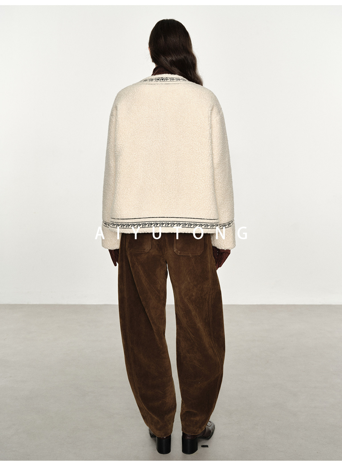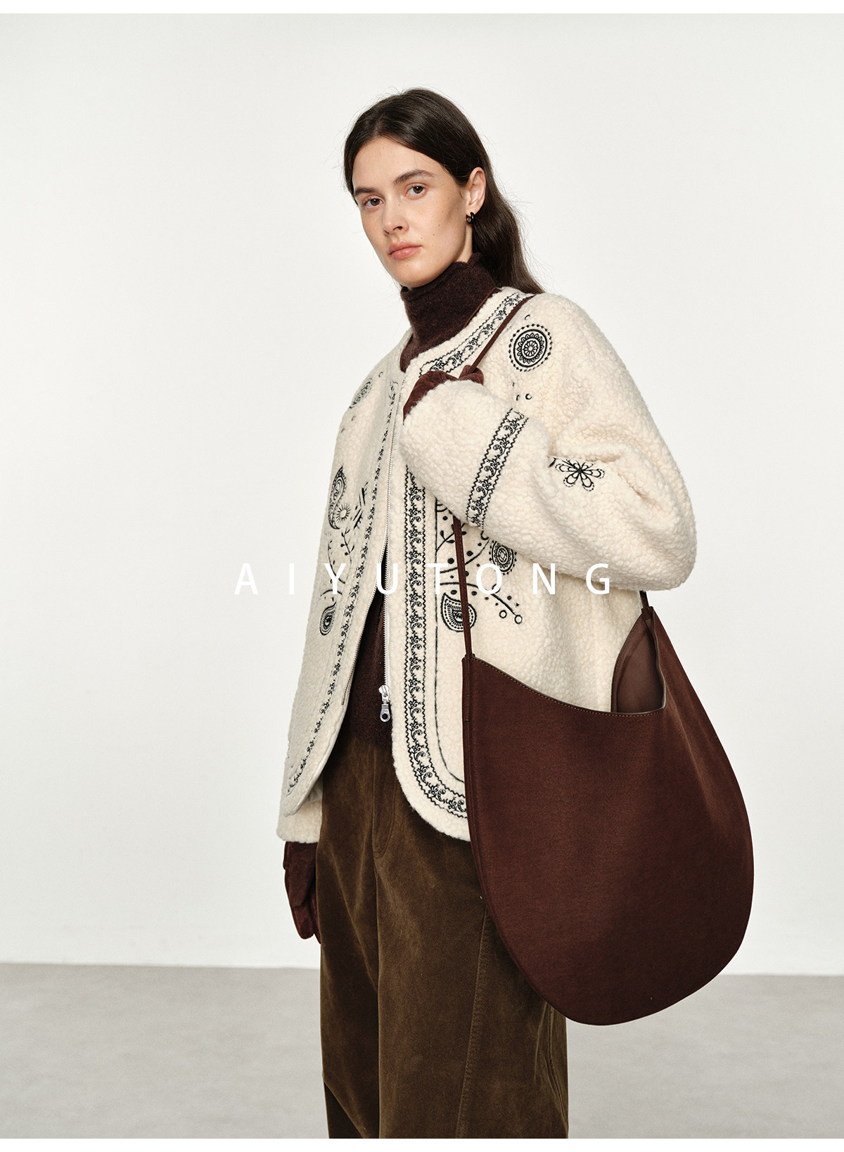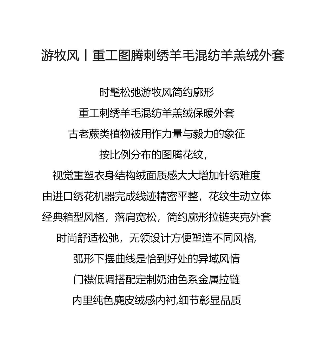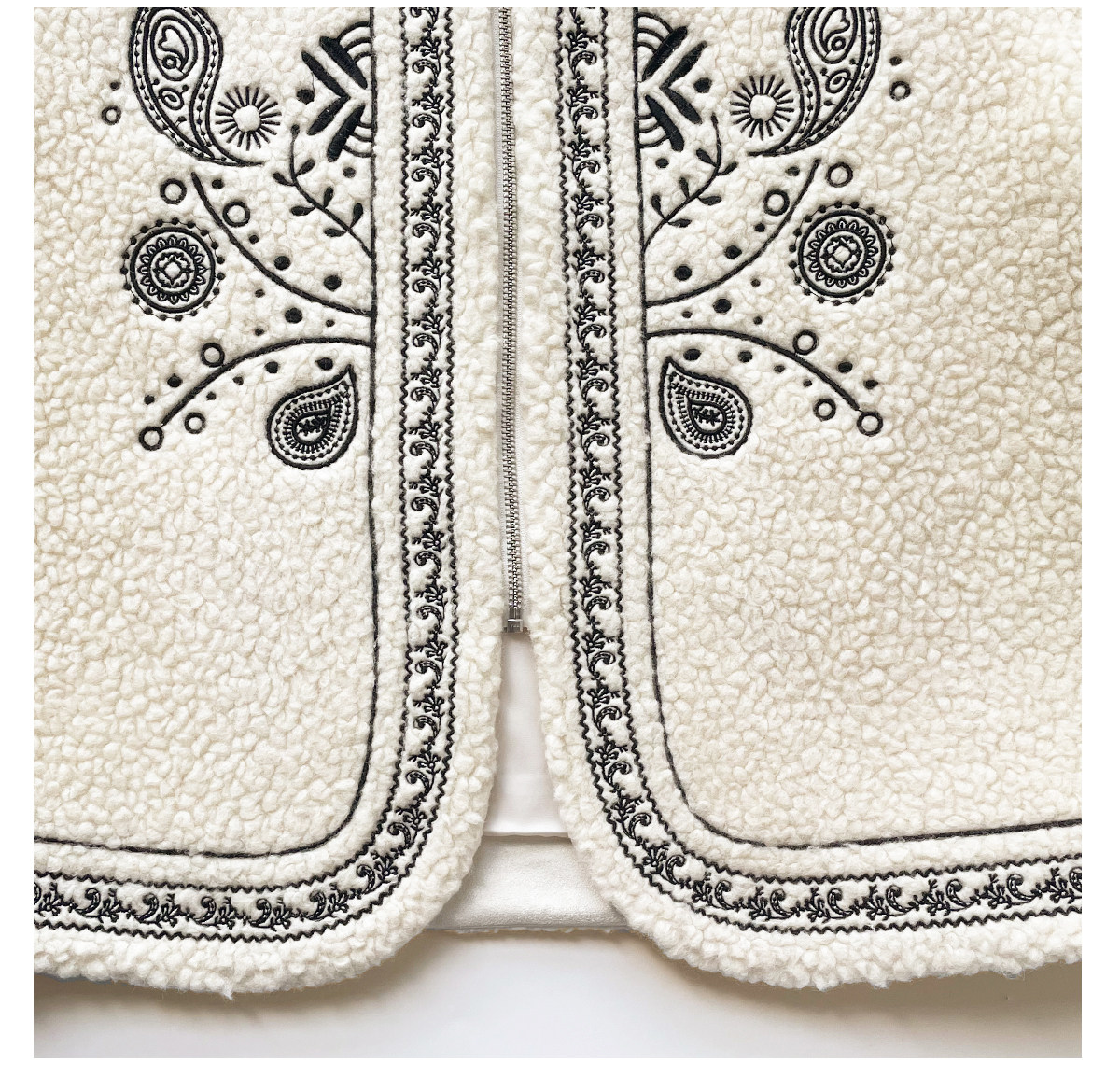 Trendy relaxed nomadic style fashionable simple silhouette heavy embroidered wool blended sherpa warm jacket for women winter