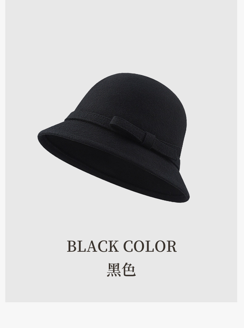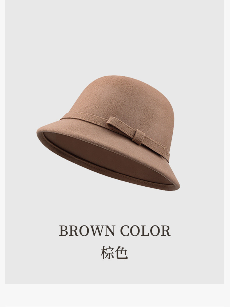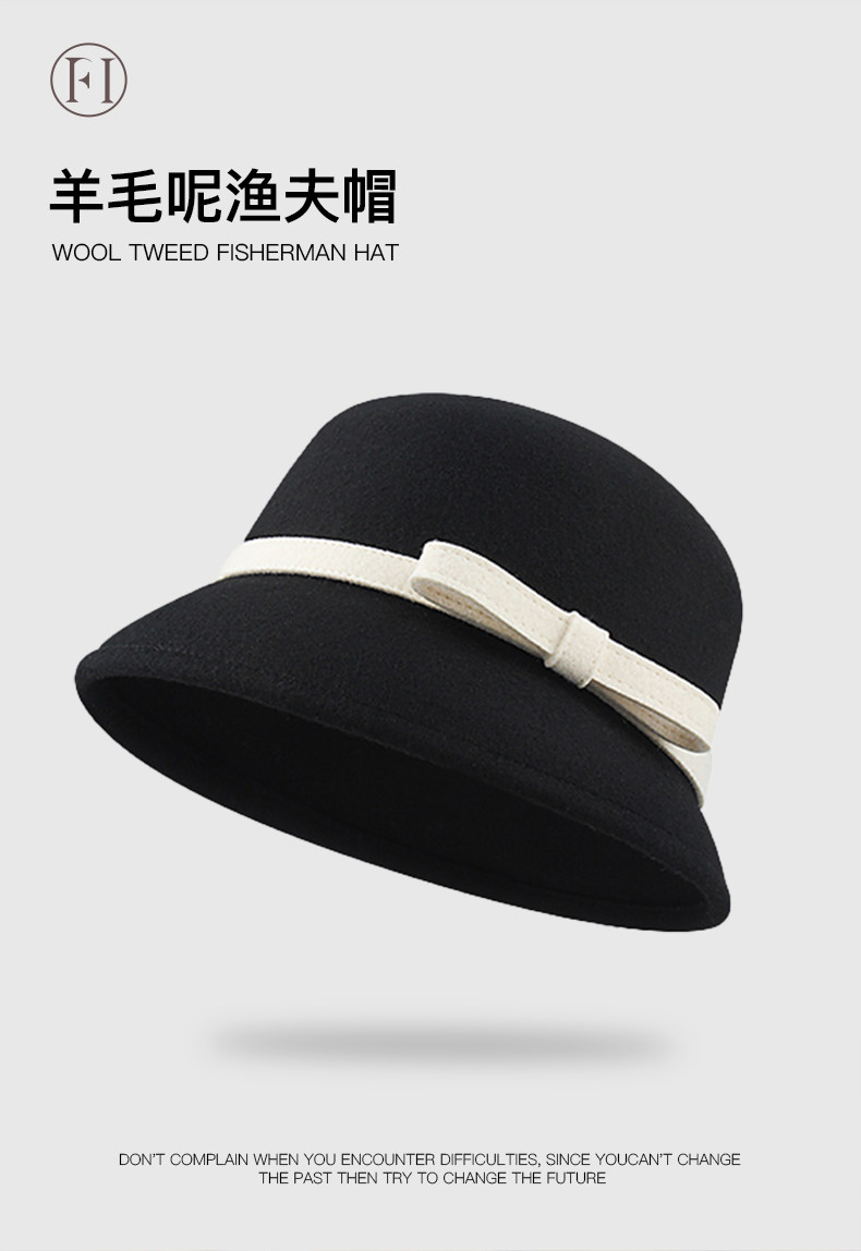 Fhi Autumn and Winter New Woolen Fisherman Hat for Women, Fashionable Bow-Knot Small Hat, Elegant Bucket Hat That Makes the Face Look Smaller