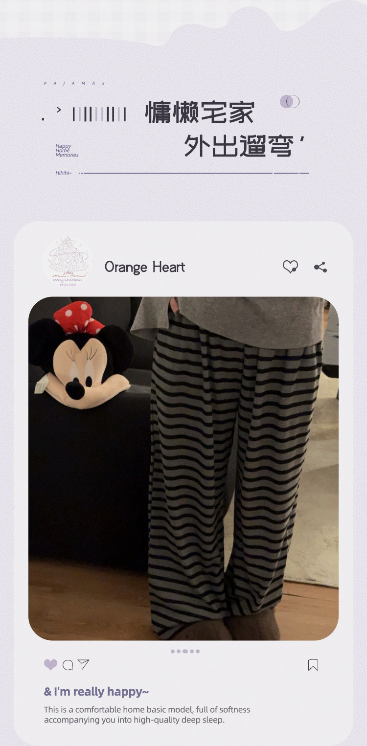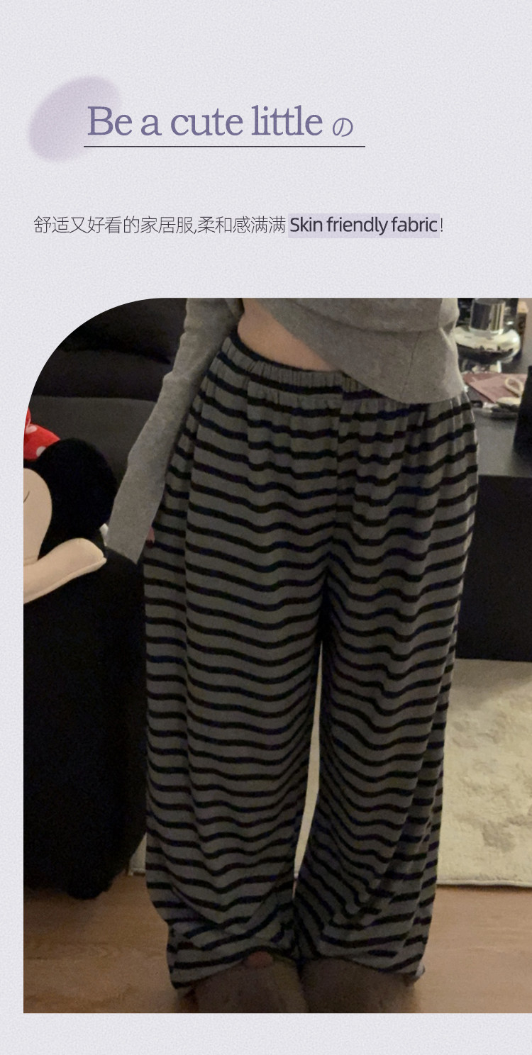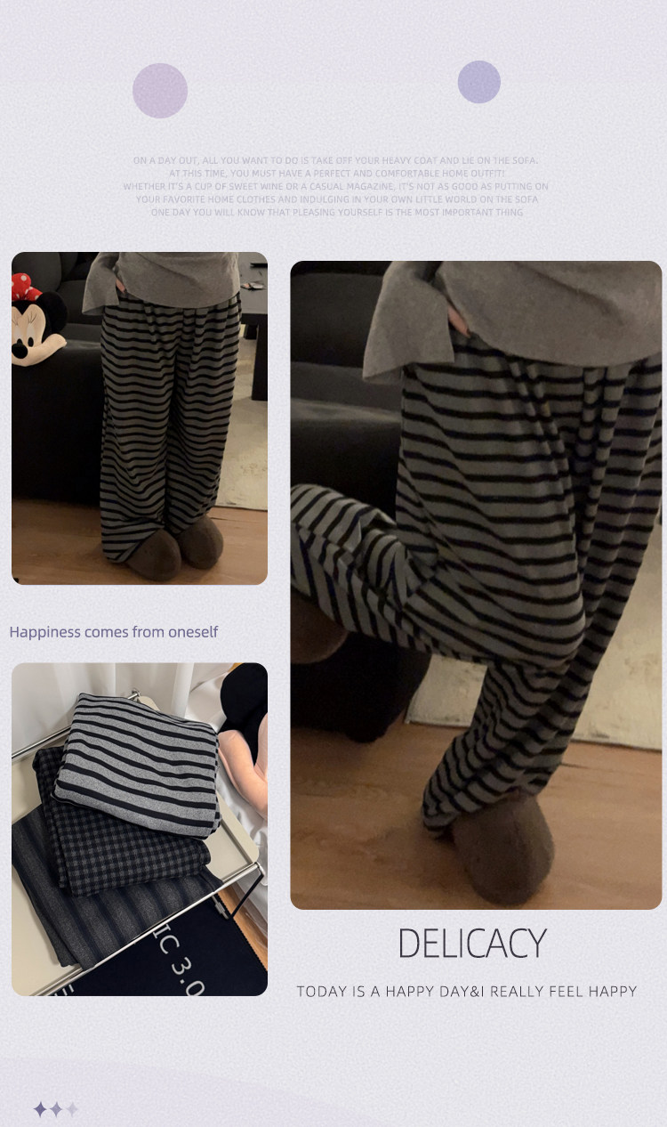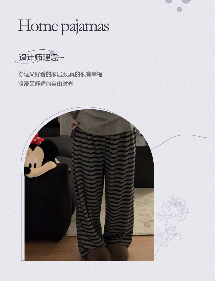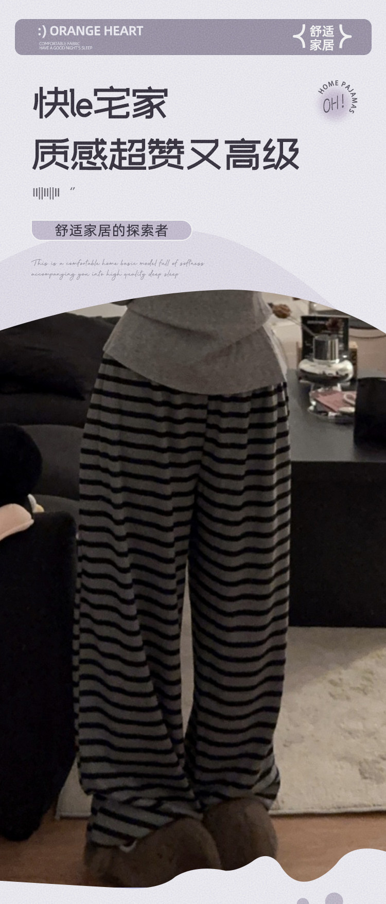 Striped pajamas and pajamas for women, thickened German velvet wide-leg pants, autumn and winter warm, casual, loose home pants that can be worn outside
