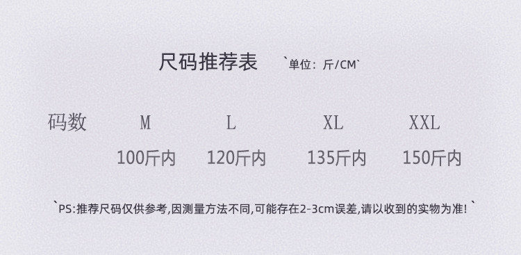 China (cm) 165 / 88-90 170 / 96-98 175 / 108-110 180 / 118-122 185 / 126-130