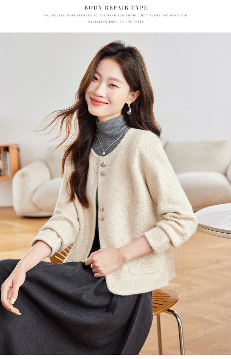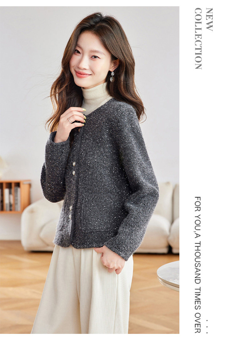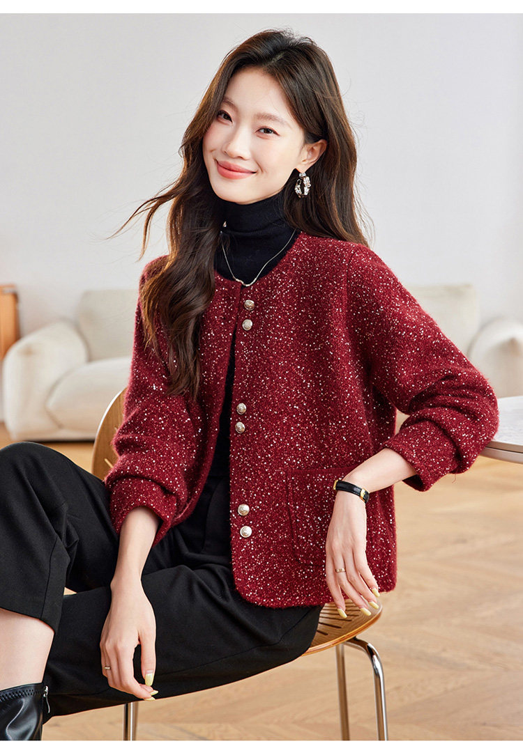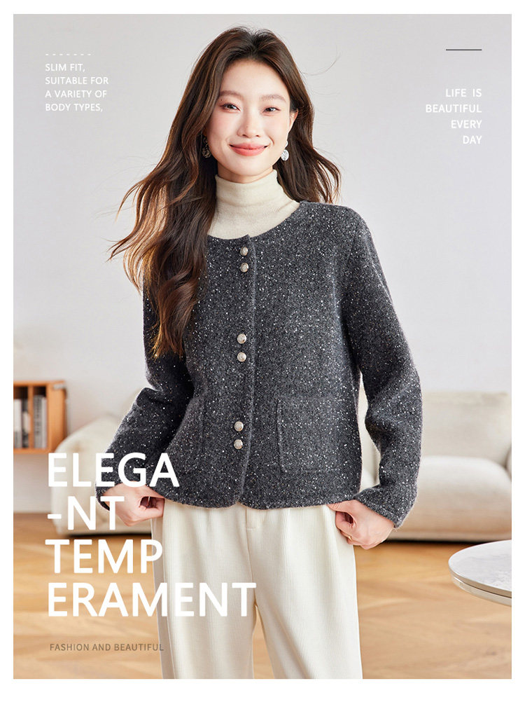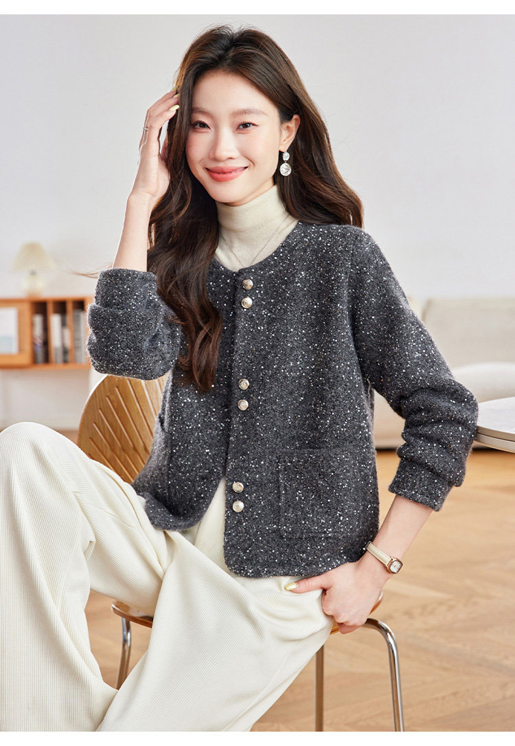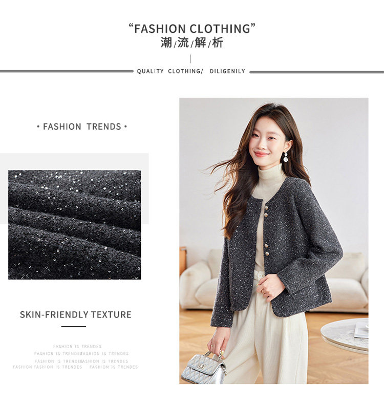 2025 Spring and Autumn New Style Popular Hot-Selling Chanel-Style Short Jacket for Women, Fashionable Round-Neck Cardigan