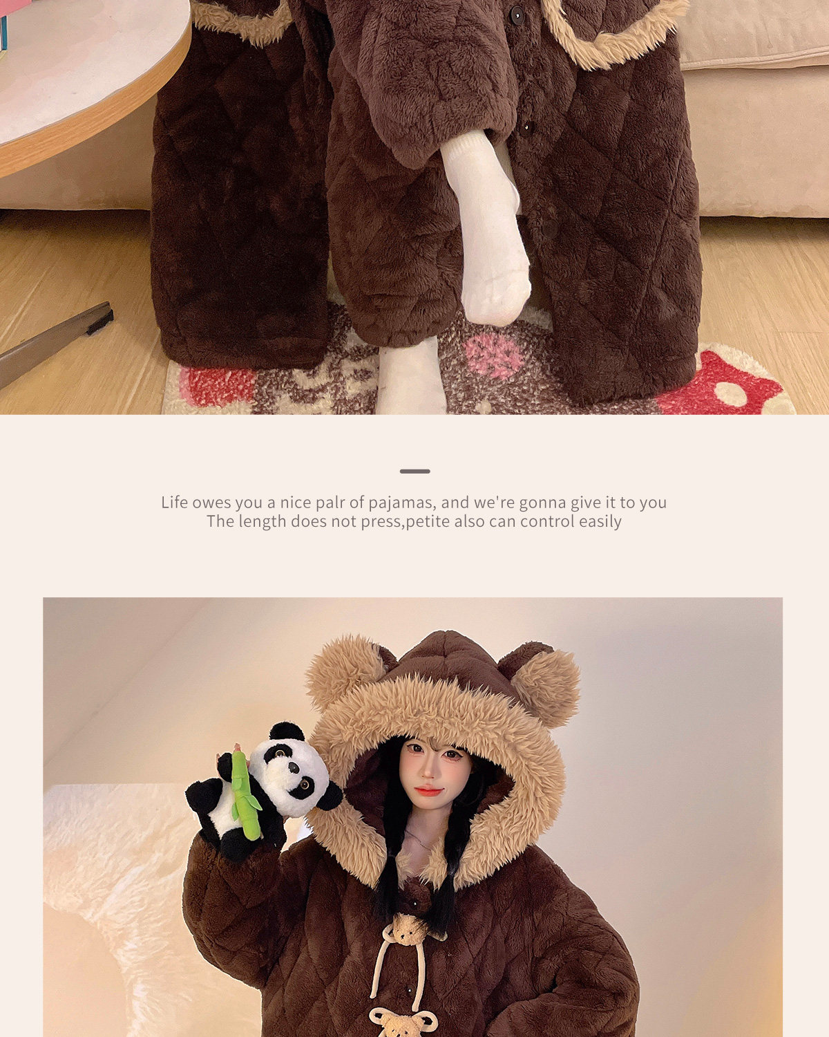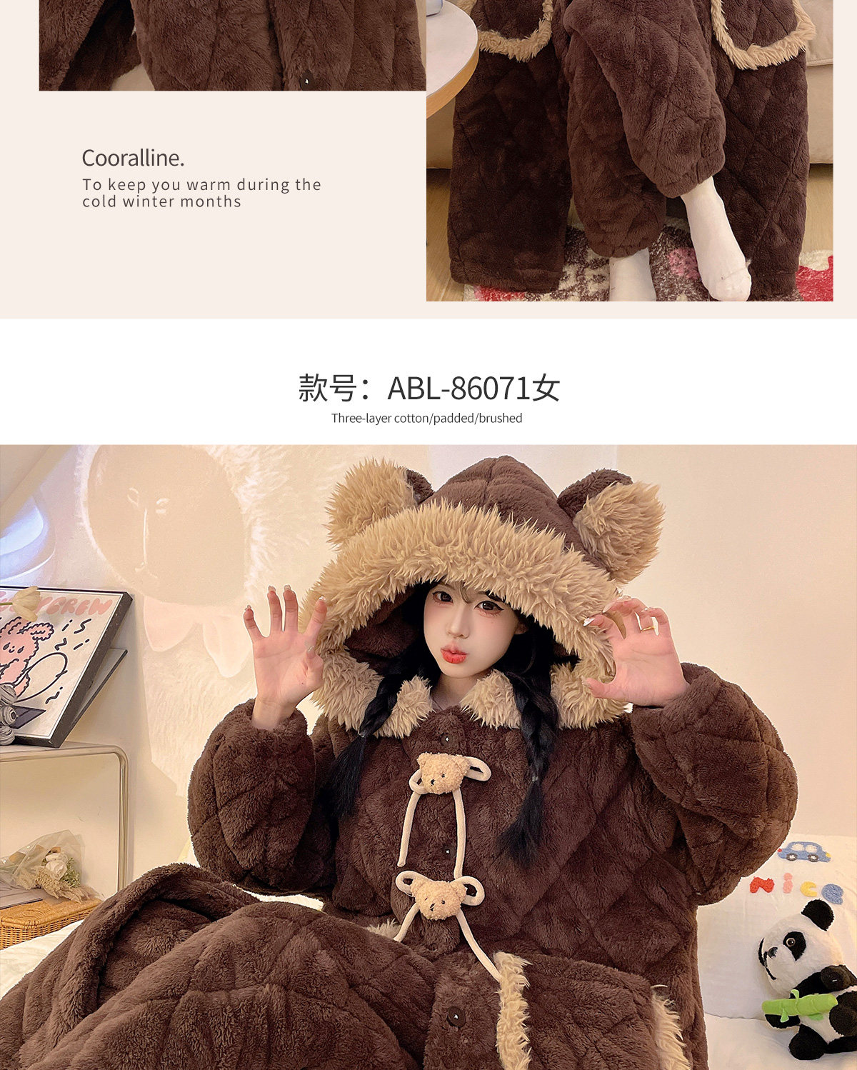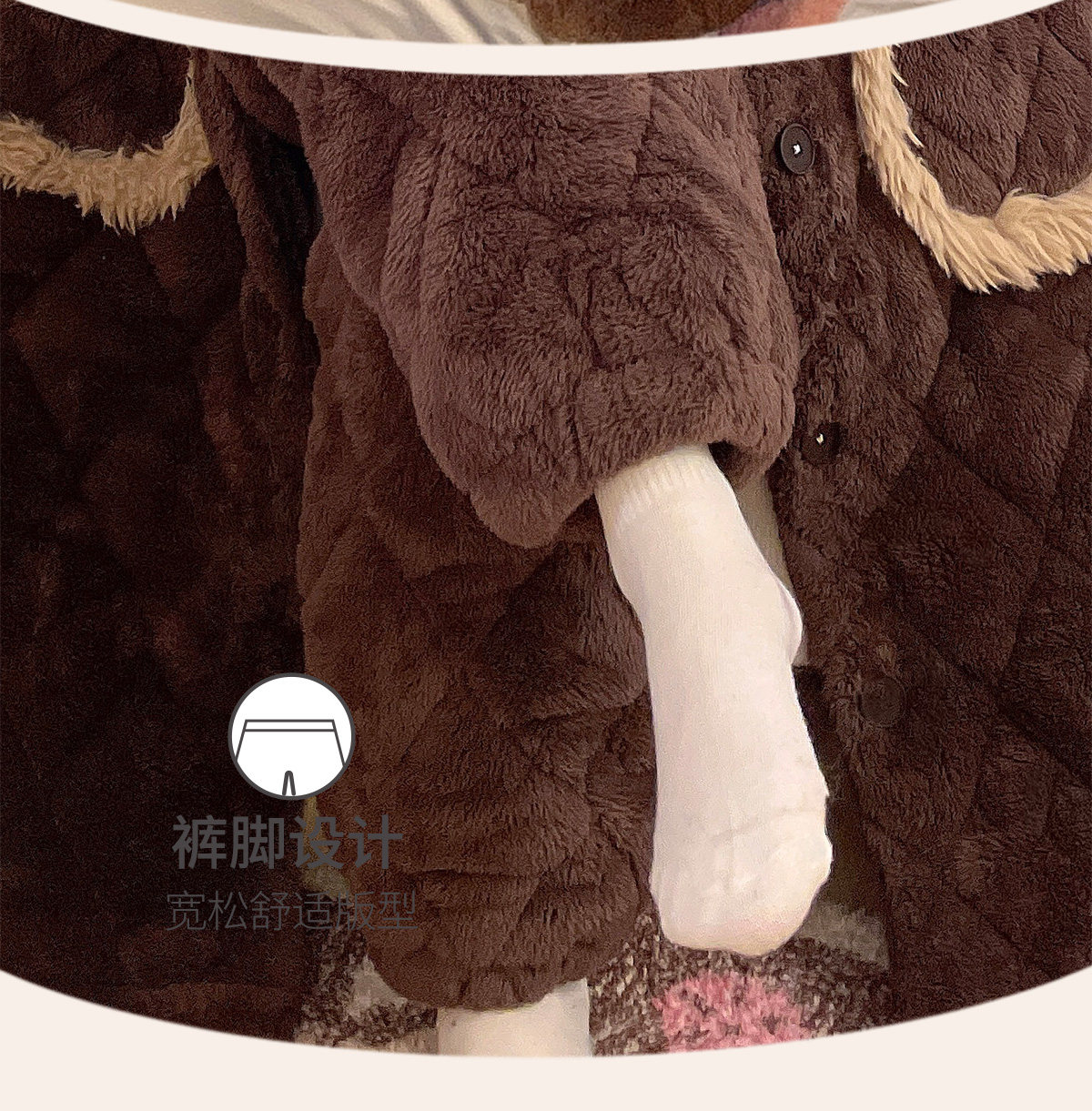 2026 New Winter Three-Layer Quilted Nightgown for Women, Coral Fleece Pajamas, Fleece-Lined and Thickened Set, Plus-Size Loungewear