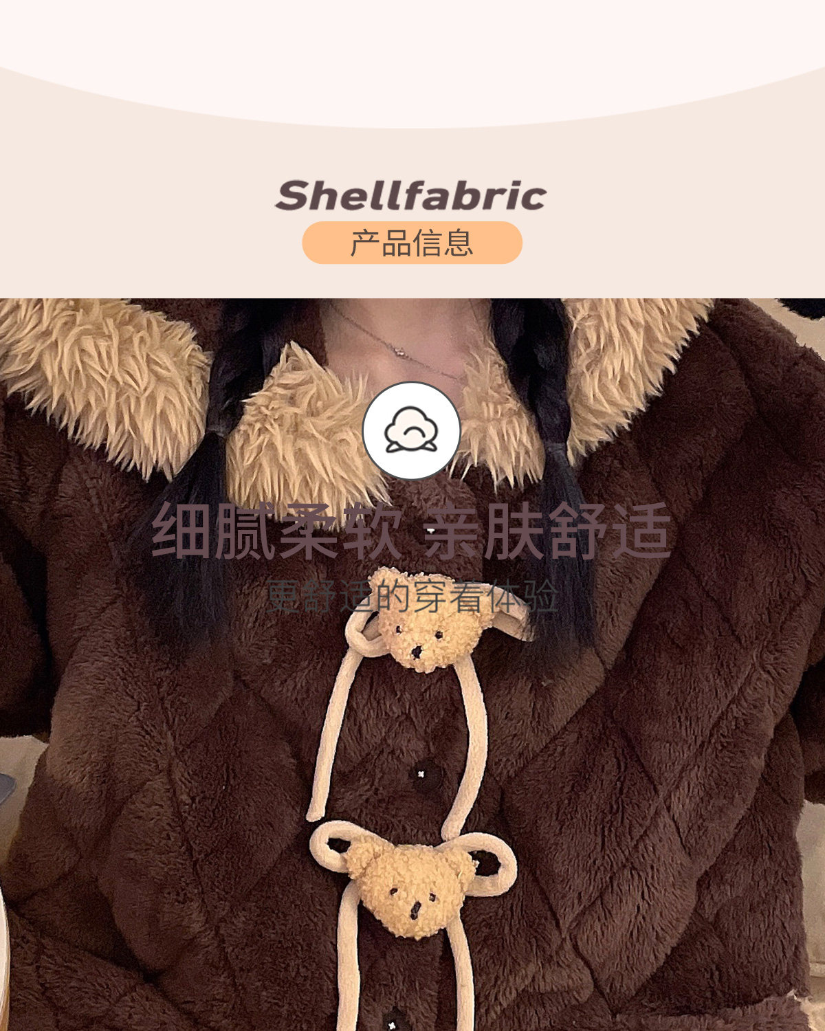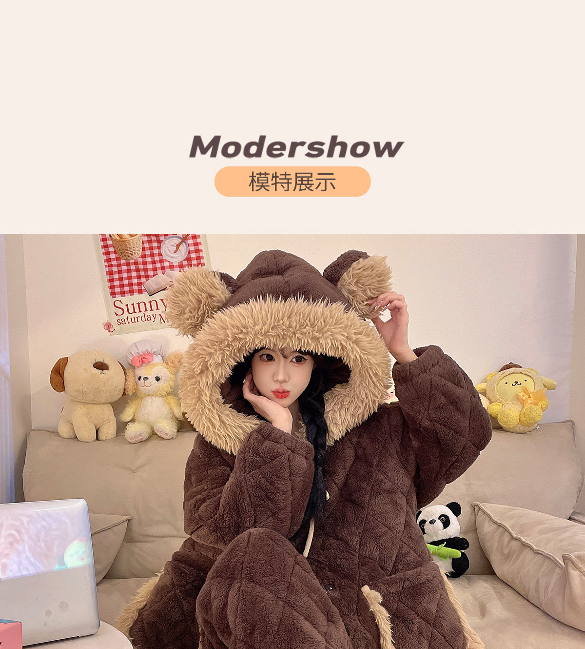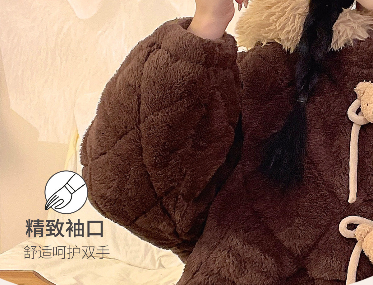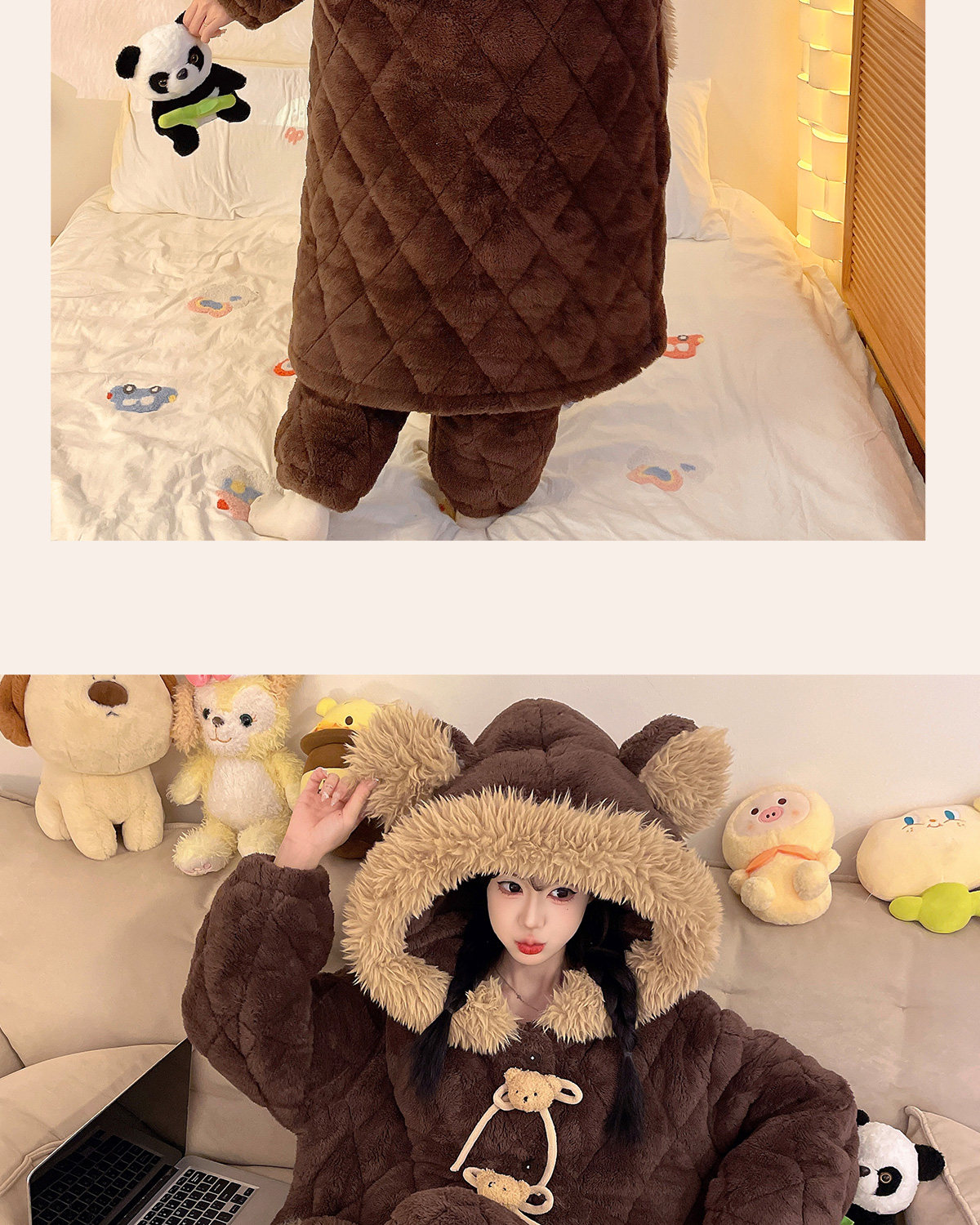 2026 New Winter Three-Layer Quilted Nightgown for Women, Coral Fleece Pajamas, Fleece-Lined and Thickened Set, Plus-Size Loungewear
