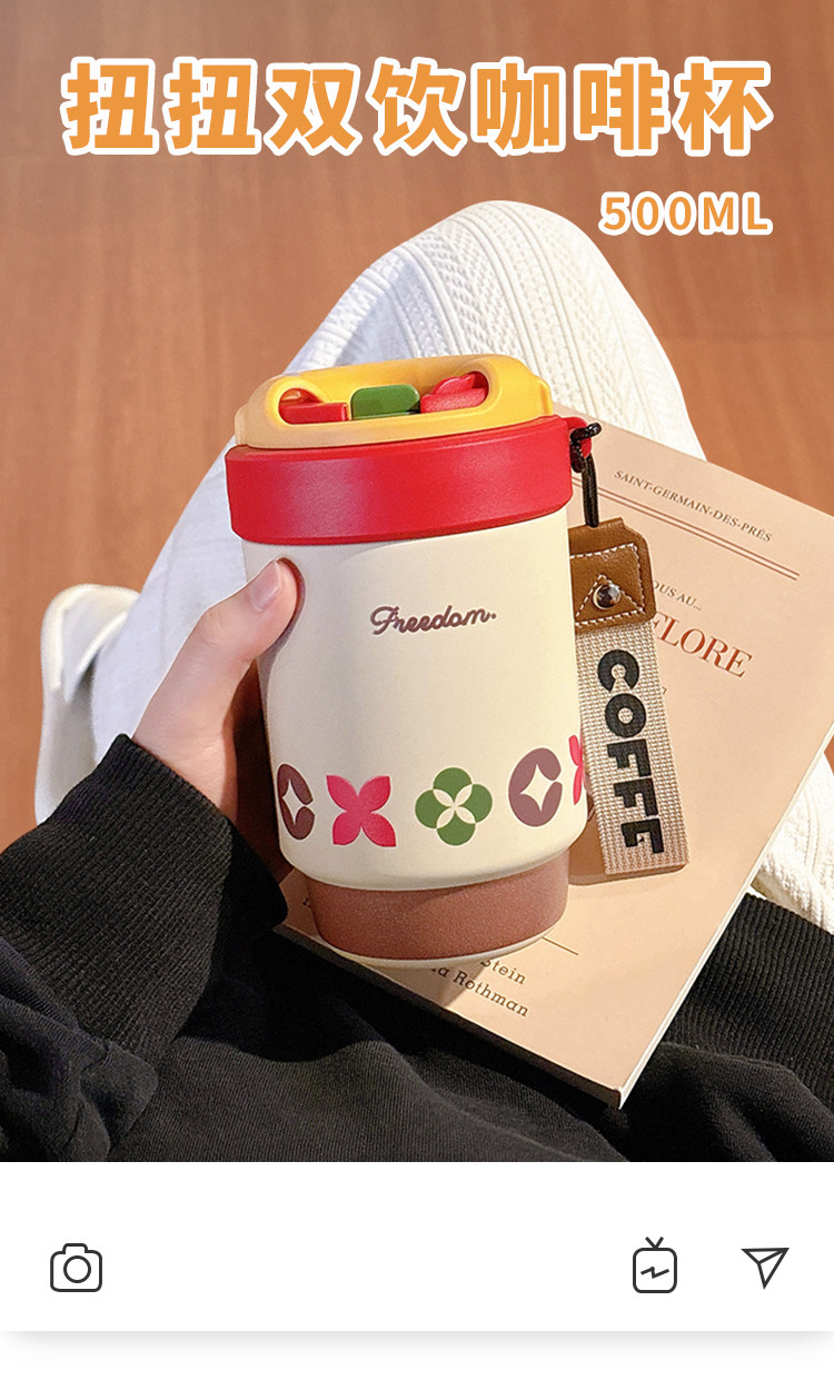 Insulated Cup, Coffee Cup, Water Cup, New Model for Women, Ceramic Liner, 2025 High-Value Cup, Straw Cup, Portable for Office Use