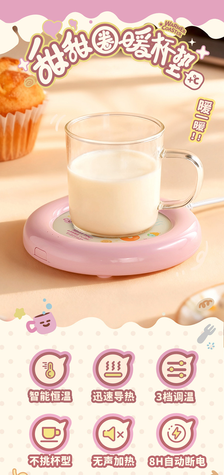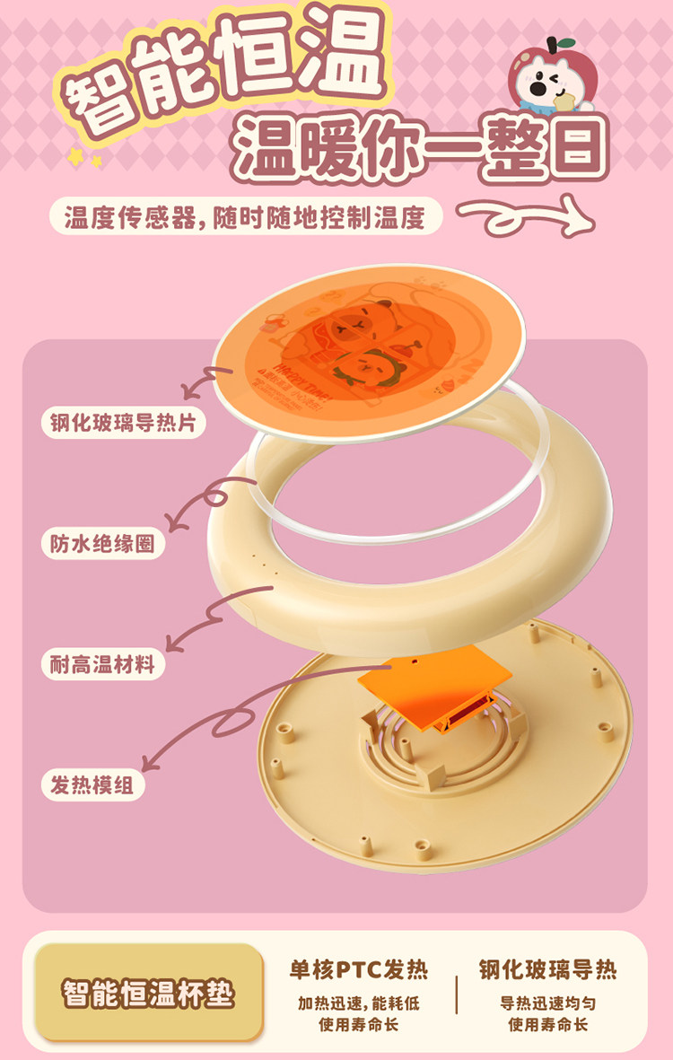 Cute Smart Constant Temperature Quick-Heating Cup Mat for Dormitory, Low-Power Office Milk Warmer, Cup Base Warmer, Gift
