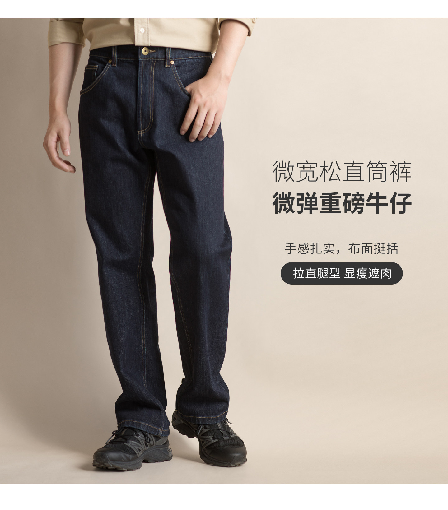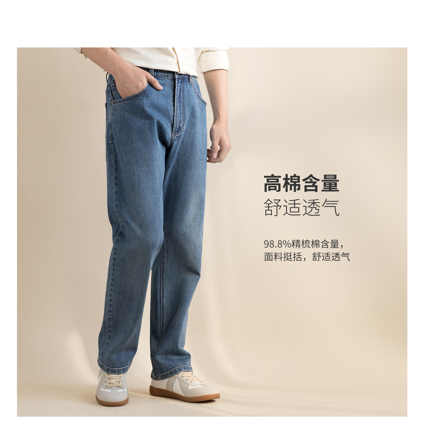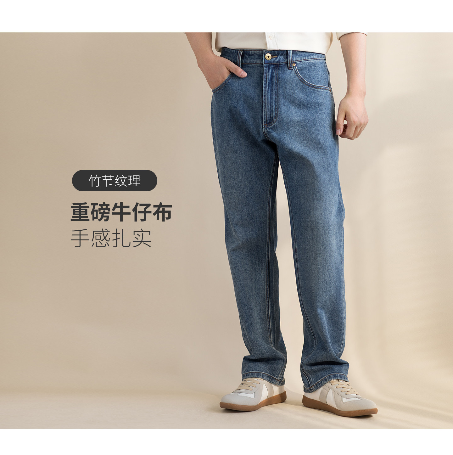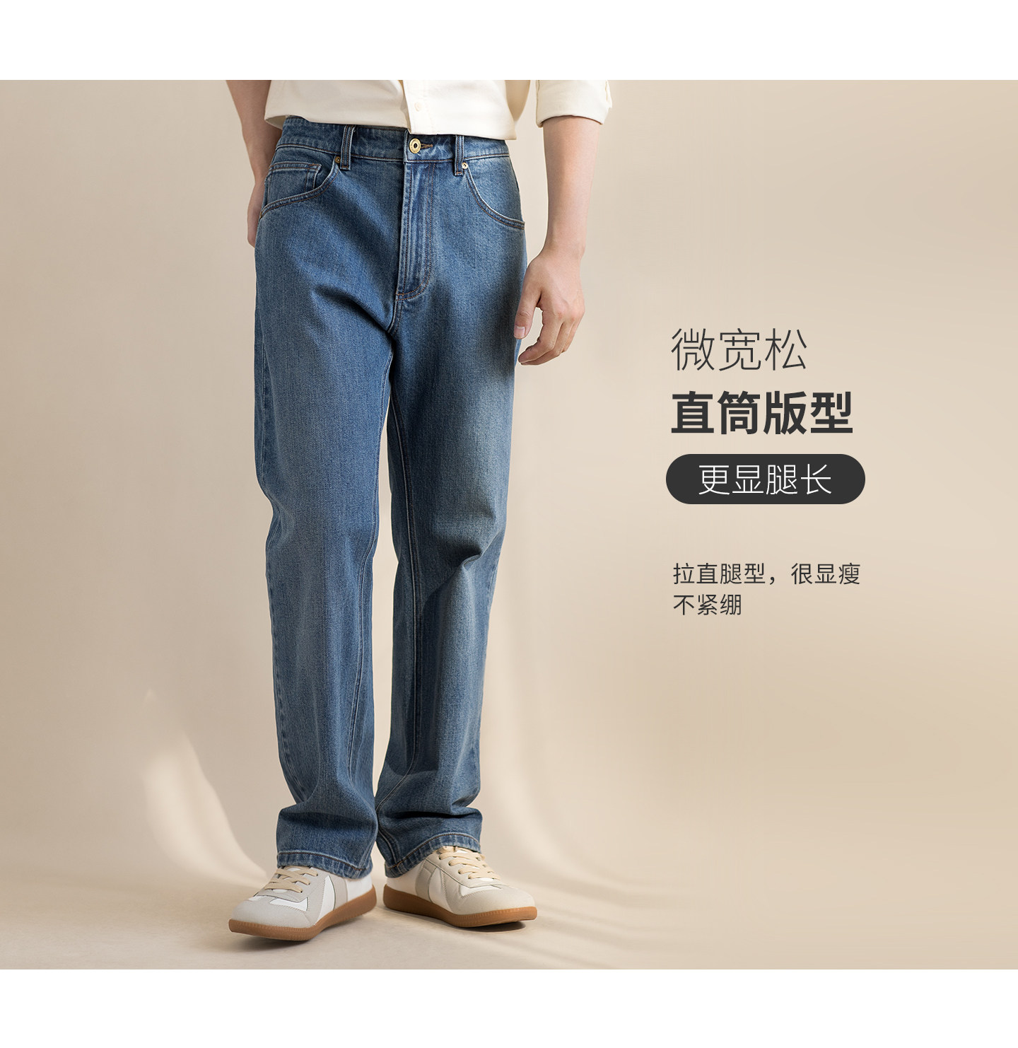 2025秋冬新款水洗微弹棉质厚牛仔裤男宽松直筒长裤休闲复古青少年