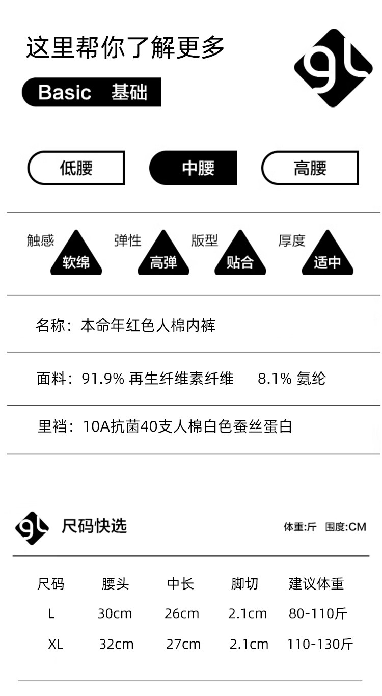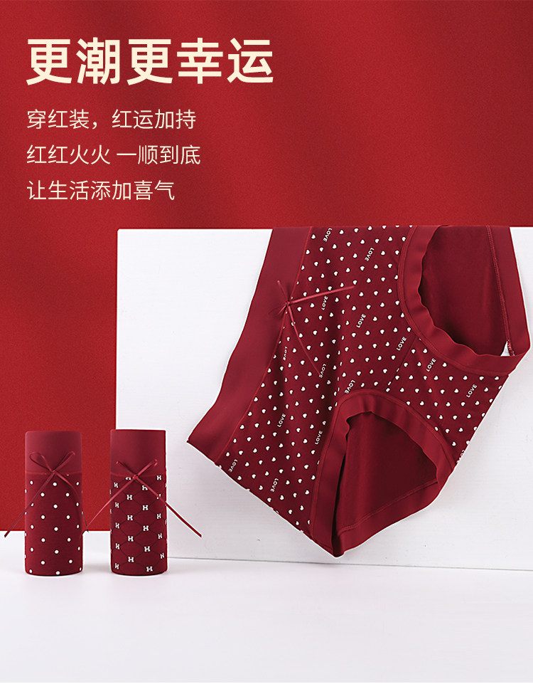 Red Zodiac Year Underwear for Women, Modal Antibacterial Shorts, Mid-Waist Breathable and Comfortable Seamless Briefs for Girls in the Year of the Horse