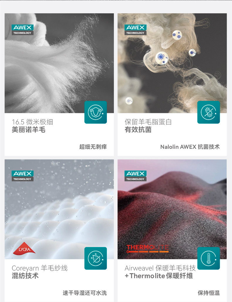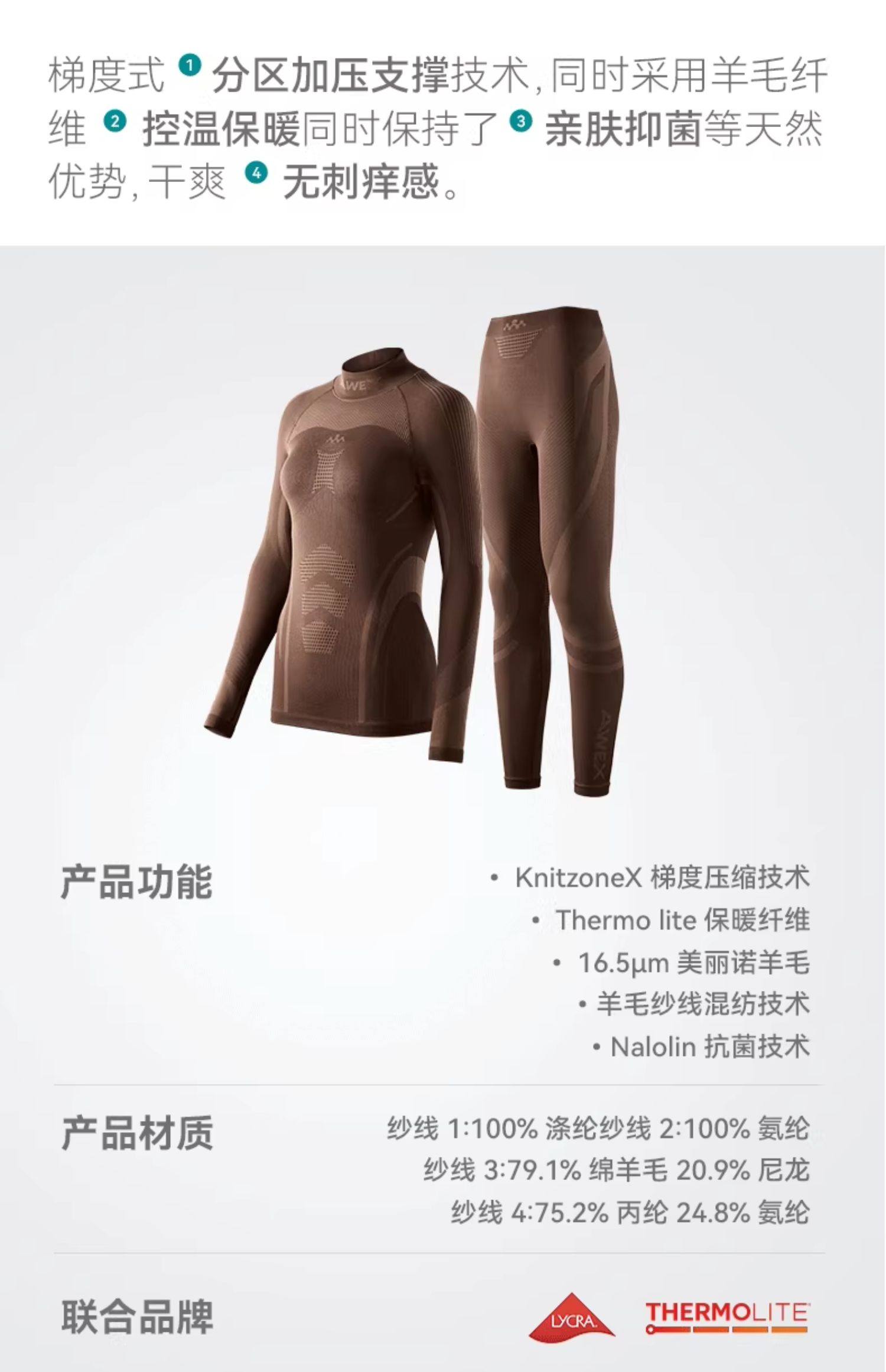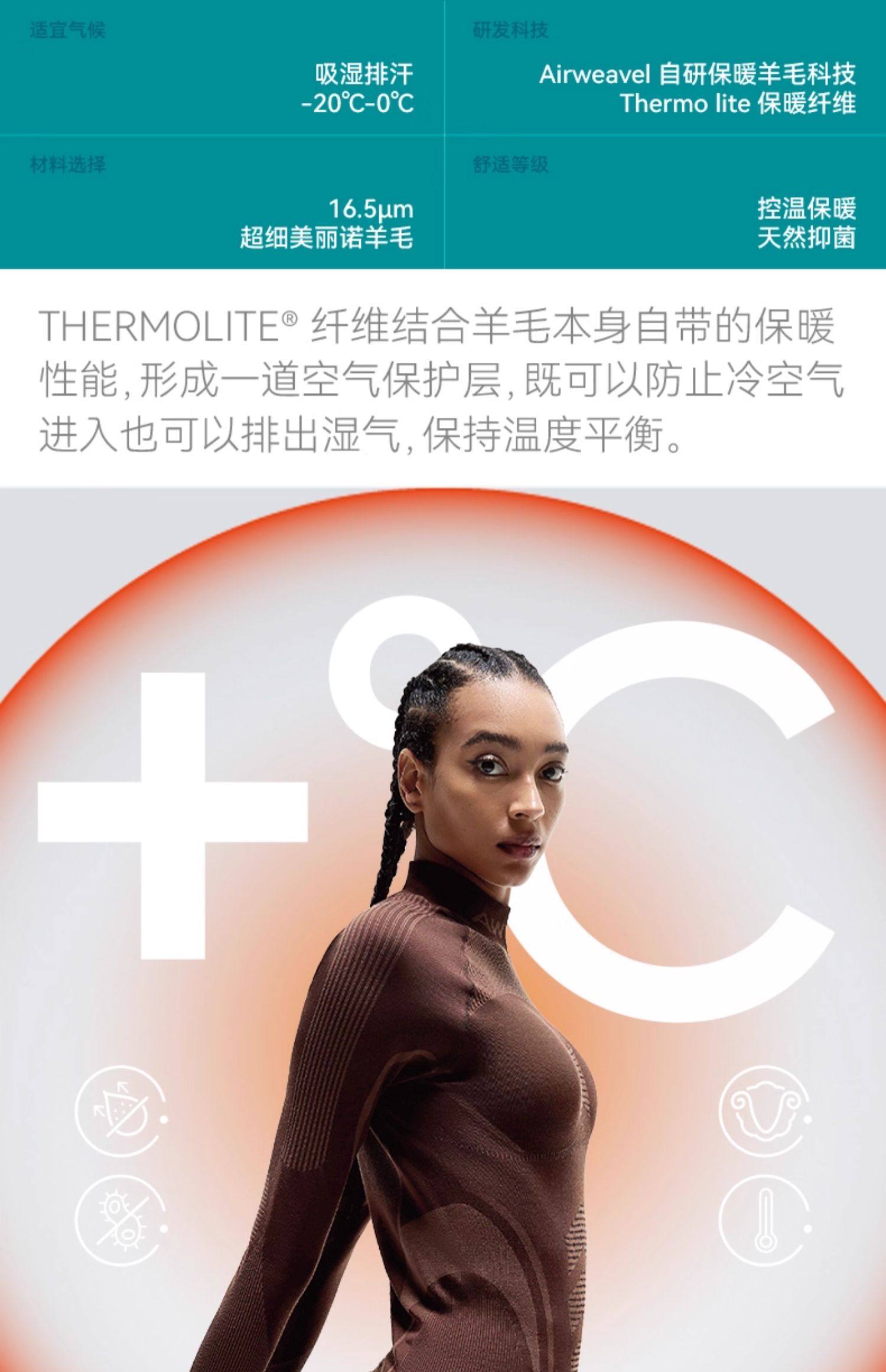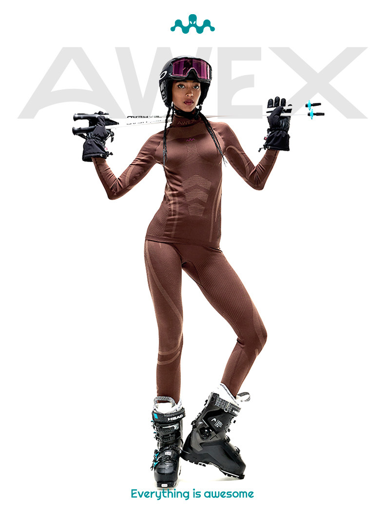 [Nan En & Awex Collaboration] Ultra-Fine Merino Wool Ski Quick-Dry Clothing for Women, Warm and Close-Fitting Layer