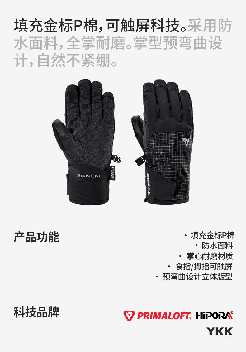 Nanen 25-Year Ski Gloves for Men, Single and Double Board, P Cotton Palm Reinforcement, Professional Five-Finger Waterproof Outdoor Warm Gloves