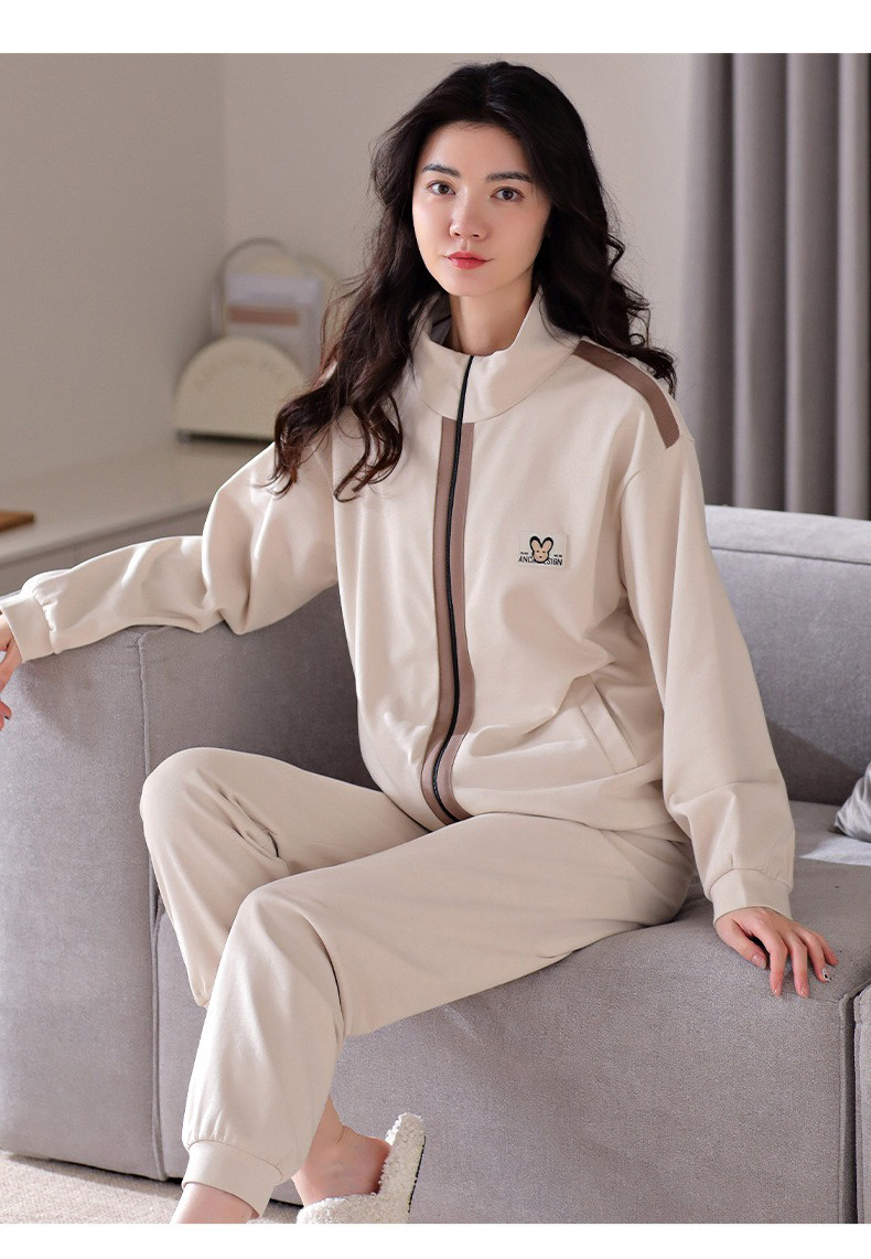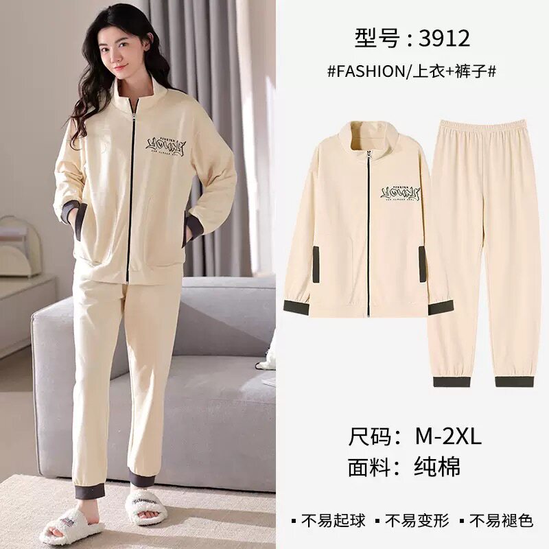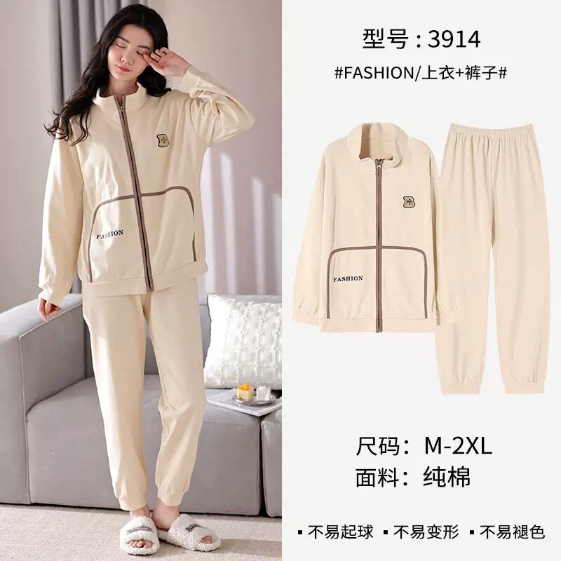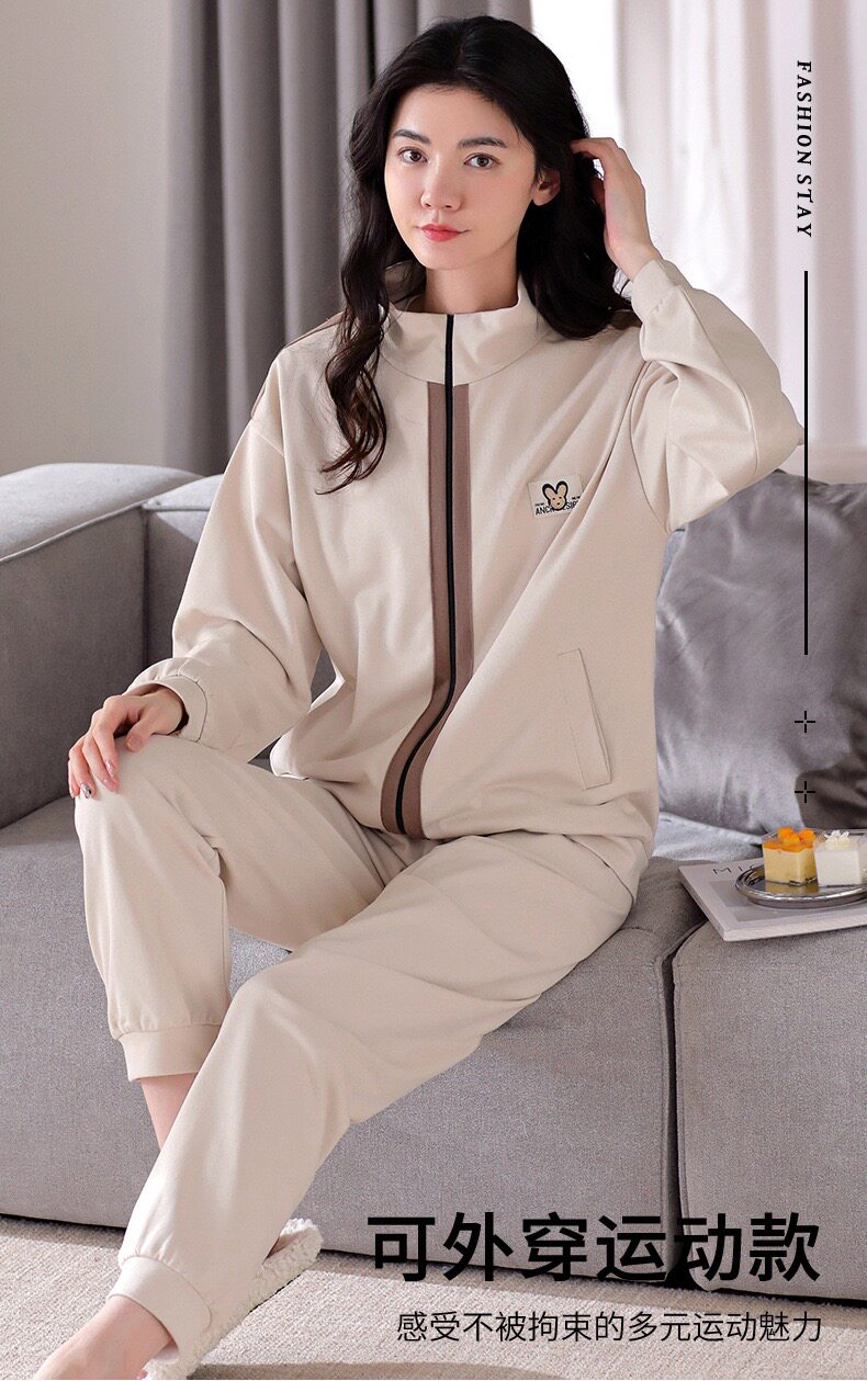New 100% Cotton Autumn and Winter Sweatshirt Women's Sports Suit Spring and Autumn Thickened Zipper Pure Cotton Pajamas Home Wear Jacket