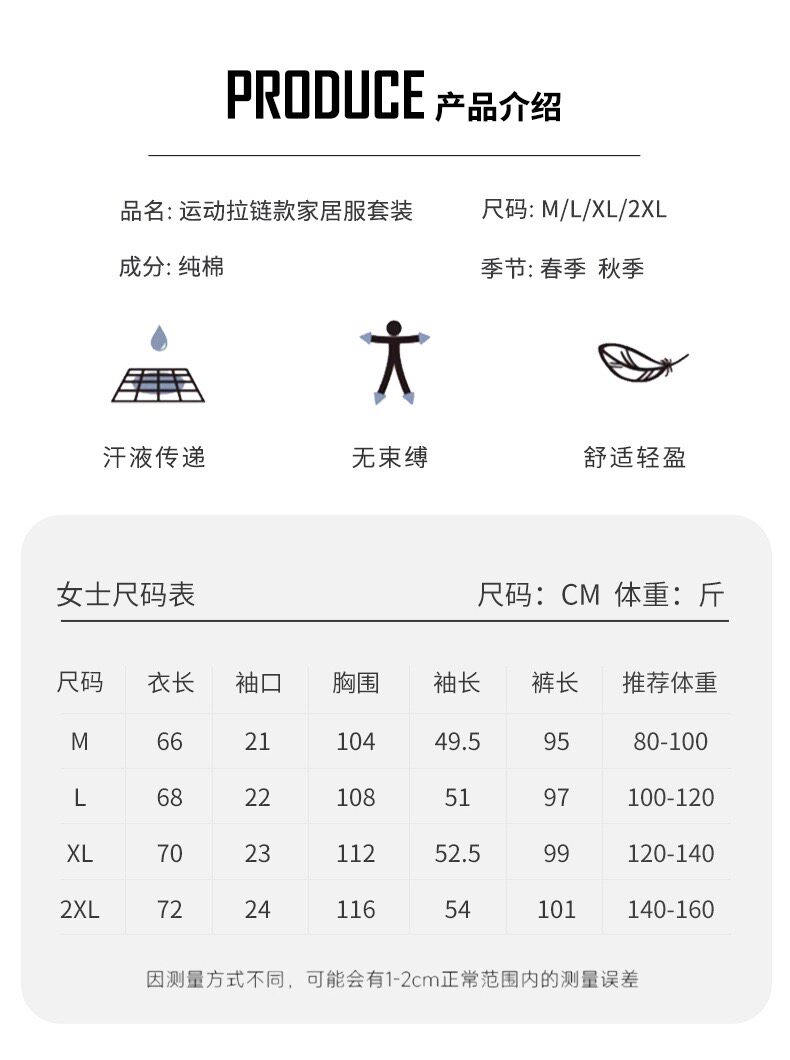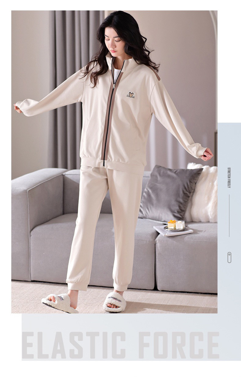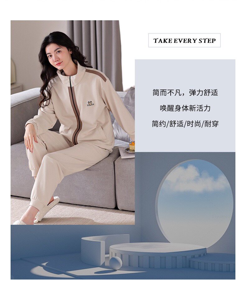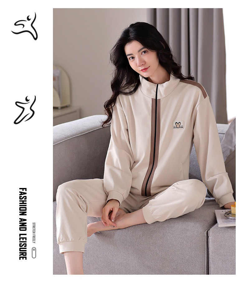 New 100% Cotton Autumn and Winter Sweatshirt Women's Sports Suit Spring and Autumn Thickened Zipper Pure Cotton Pajamas Home Wear Jacket